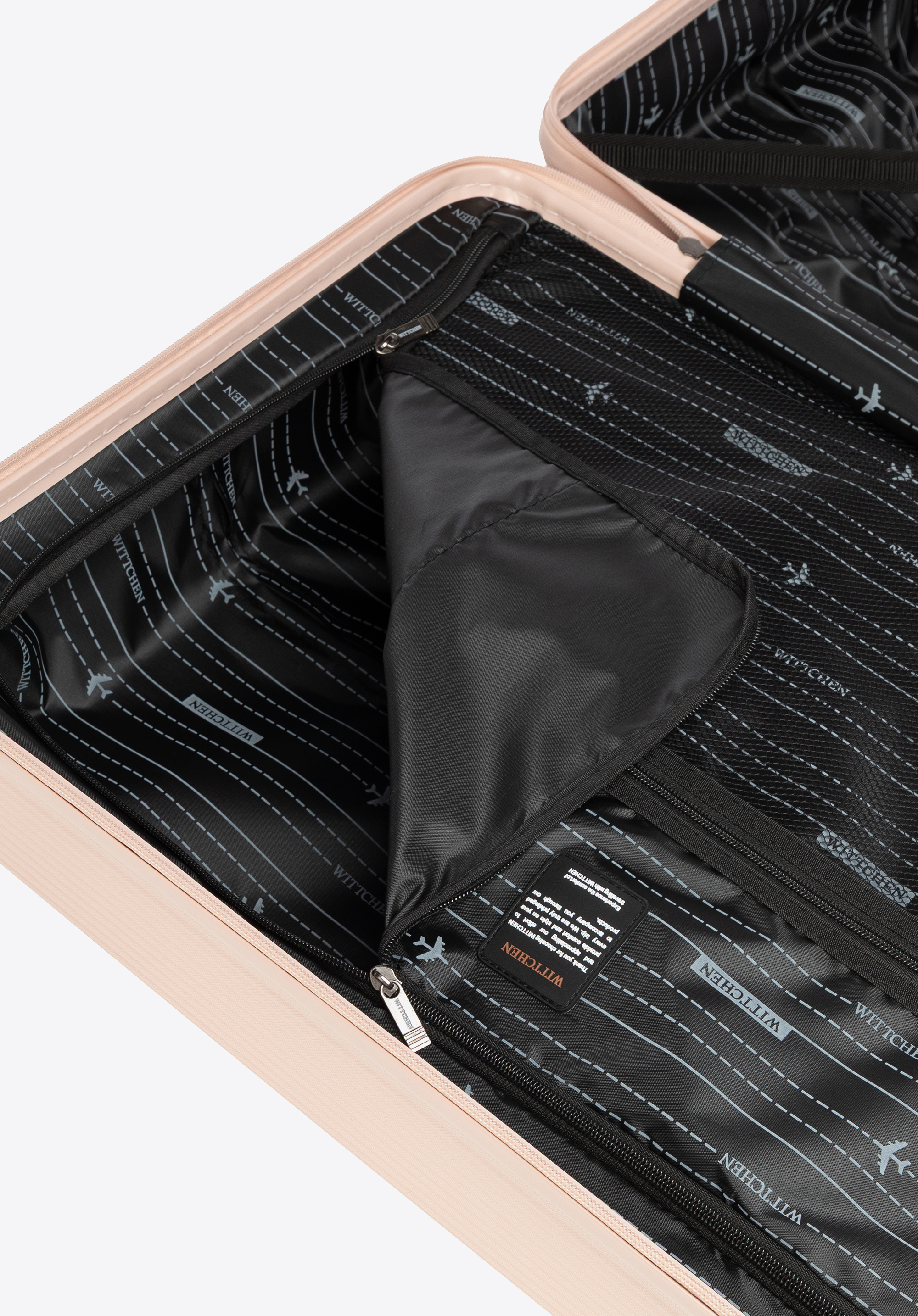 - Stabilitate: 4 piciorușe permit așezarea stabilă a valizei și pe lateral.