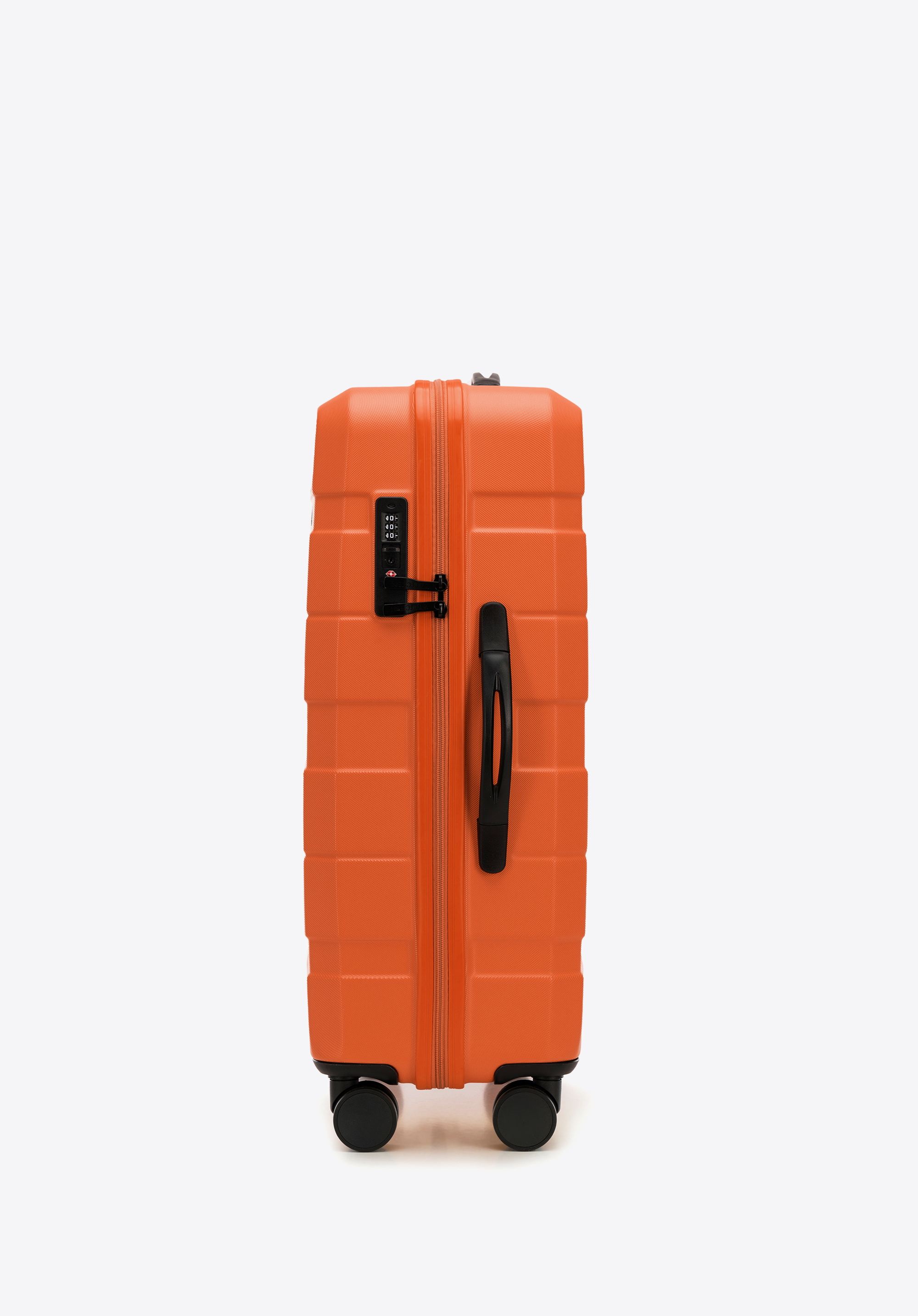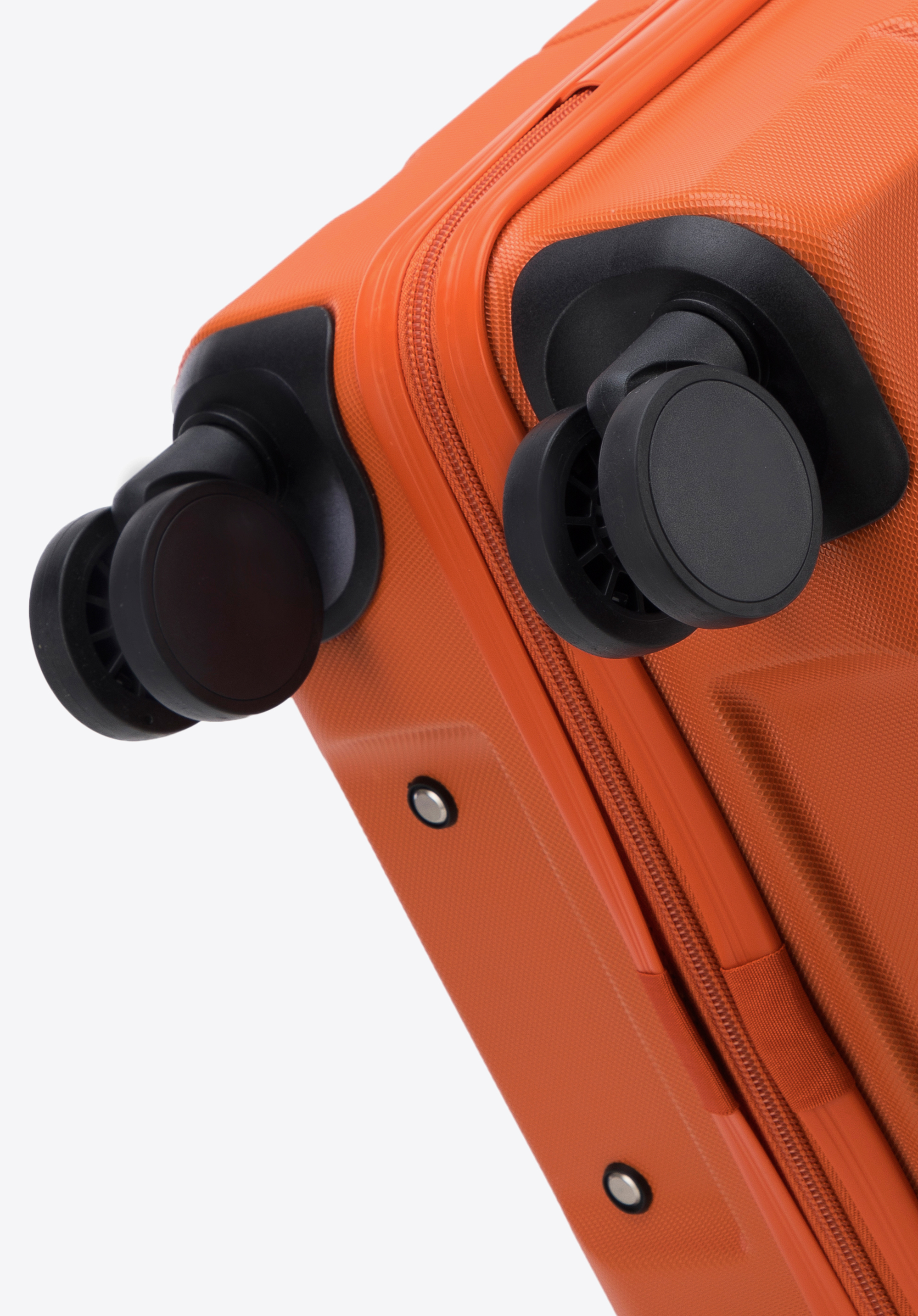 Cu un aspect texturat și o carcasă exterioară din ABS rezistentă la uzură, această valiză va face din călătoria dvs. o experiență elegantă și fără griji. Vine cu un mâner telescopic de blocare cu buton și mâner de ridicare din cauciuc pentru un plus de confort. Acest design modern și atrăgător al bagajelor pe 4 roți prezintă mânere confortabile și sistem de blocare TSA pentru o protecție optimă. Caracterizată de valori de bază precum calitatea și durabilitatea, această husă de dimensiuni medii este însoțitorul ideal de călătorie, indiferent dacă este o pauză scurtă sau o vacanță mai lungă.