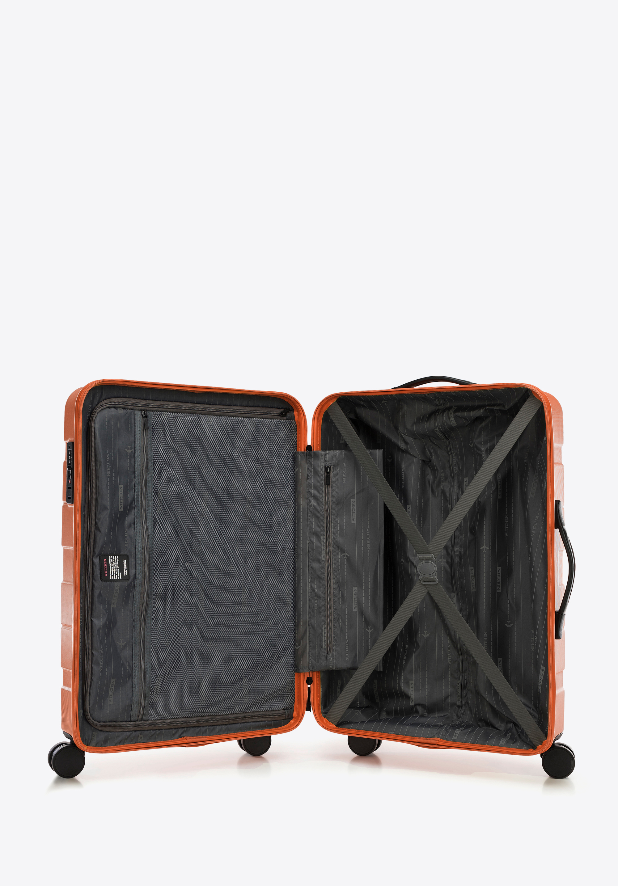 - Sistem de închidere cu cheie TSA care nu numai că previne deschiderea nedorită a bagajelor, ci și permite autorităților să deschidă bagajele fără a distruge încuietoarea;