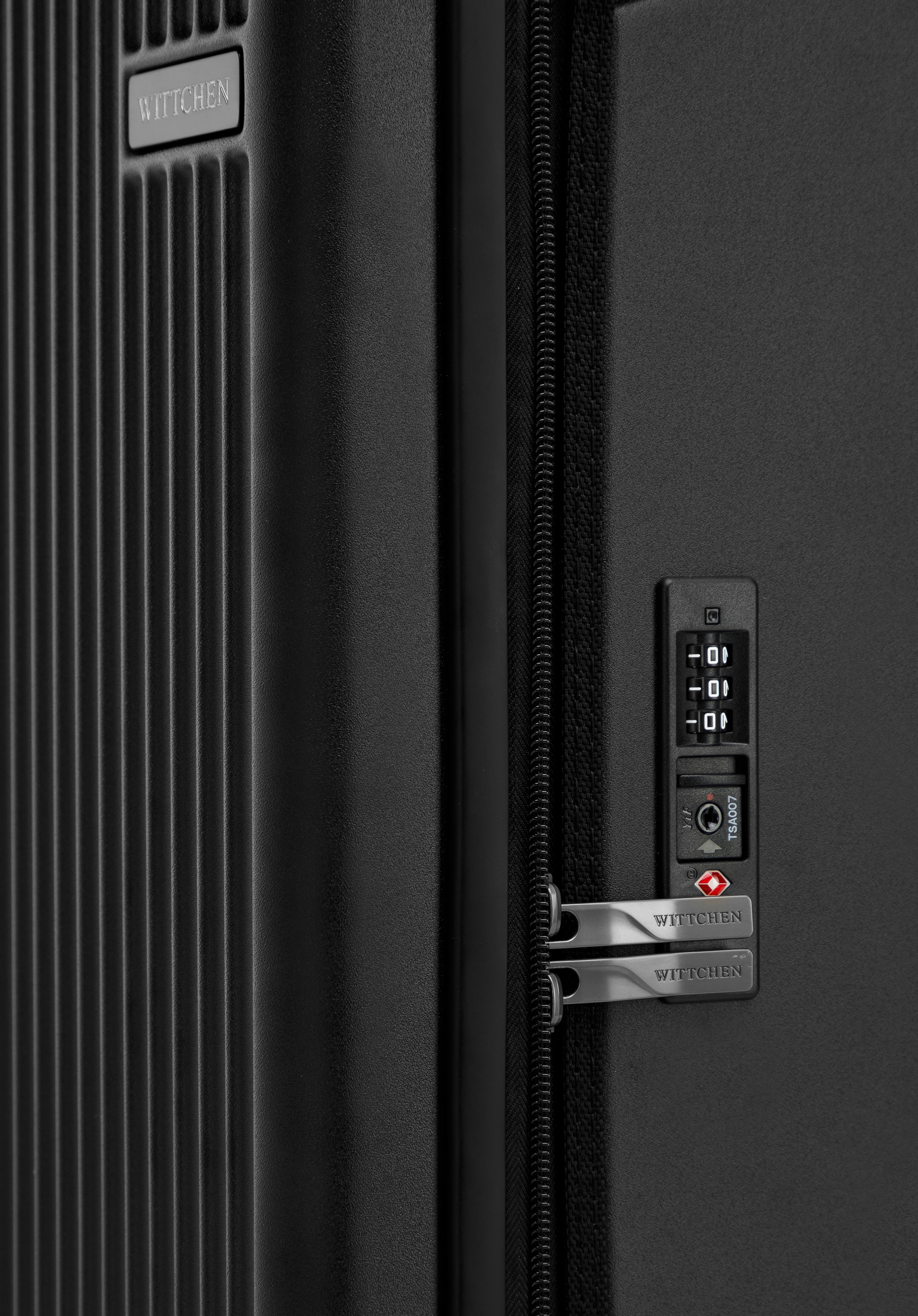 - echipat cu o încuietoare fixă cu combinație TSA pentru călătorii internaționale în siguranță - încuietoarea cu cheie TSA nu numai că împiedică deschiderea nedorită a bagajelor, dar permite și autorităților să deschidă bagajele fără a distruge încuietoarea;