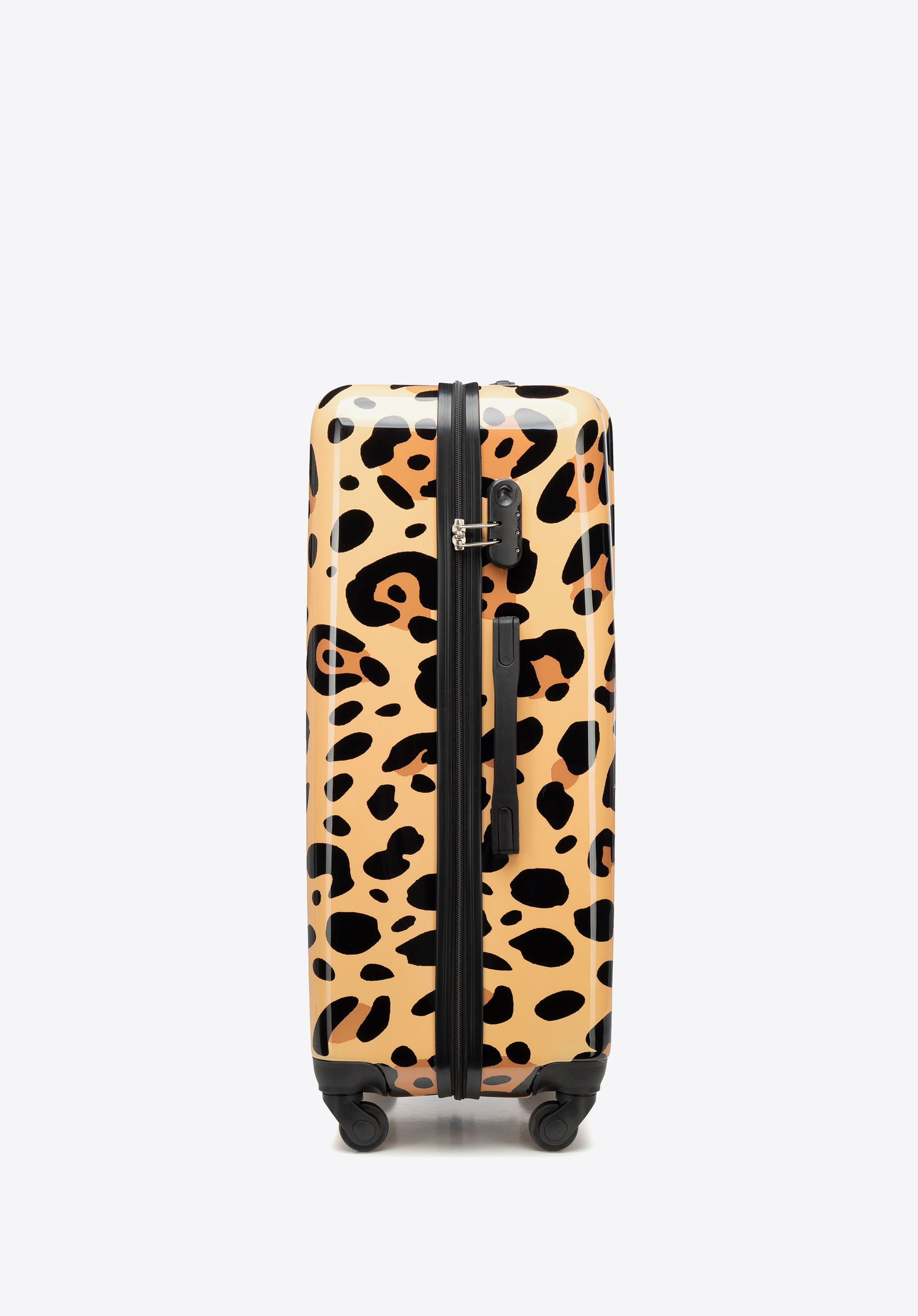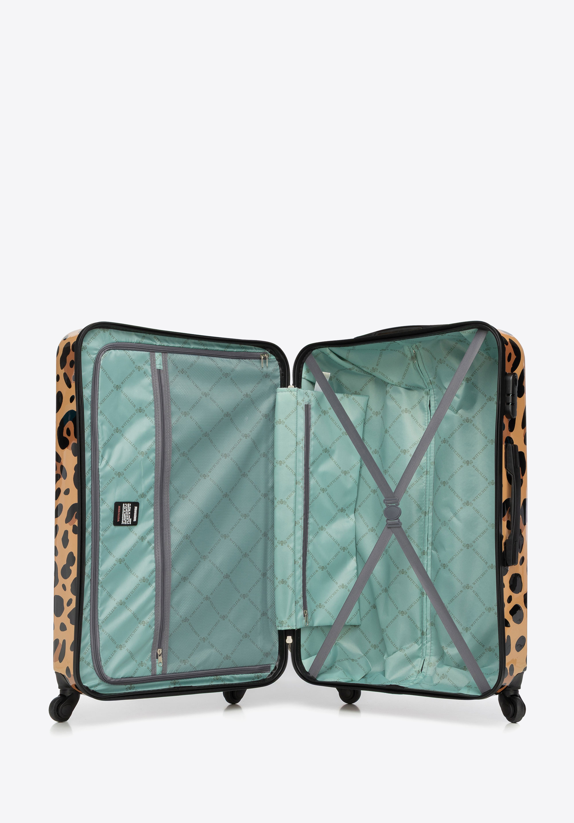 Această valiză mare va atrage multe priviri. Fabricat din material ABS rezistent la uzură, cu acoperire din policarbonat, acest bagaj are un design unic, inspirat de natură. Perfect pentru toti pasionatii de aventuri. Dispune de patru roți pentru rulare lină, un mâner telescopic și un mâner flexibil pentru o ridicare ușoară. În plus, este echipat cu o încuietoare cu combinație pentru o călătorie sigură. Disponibil în diferite nuanțe, această geantă se remarcă în caruselul de bagaje, facilitând ieșirile rapide din aeroport.