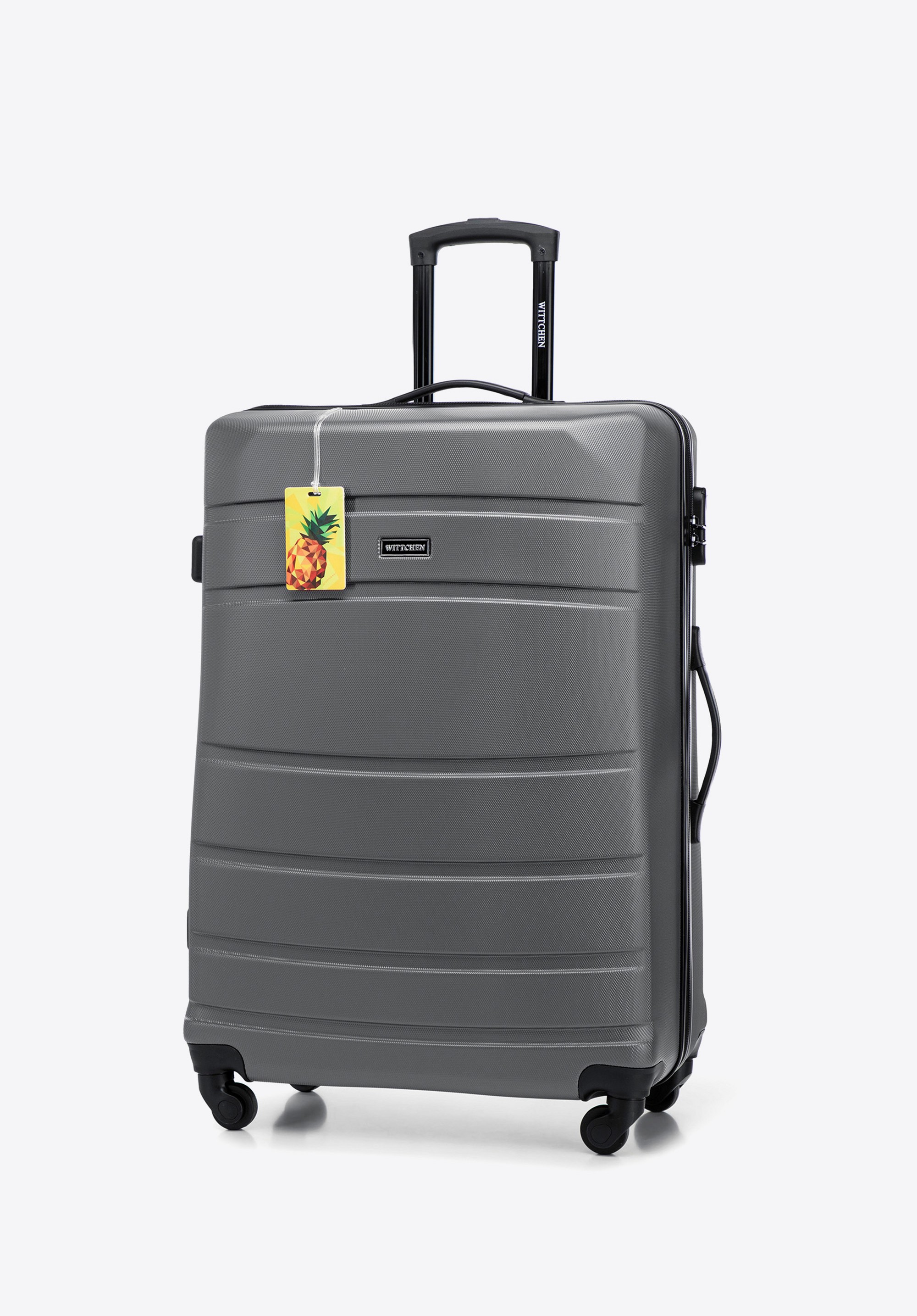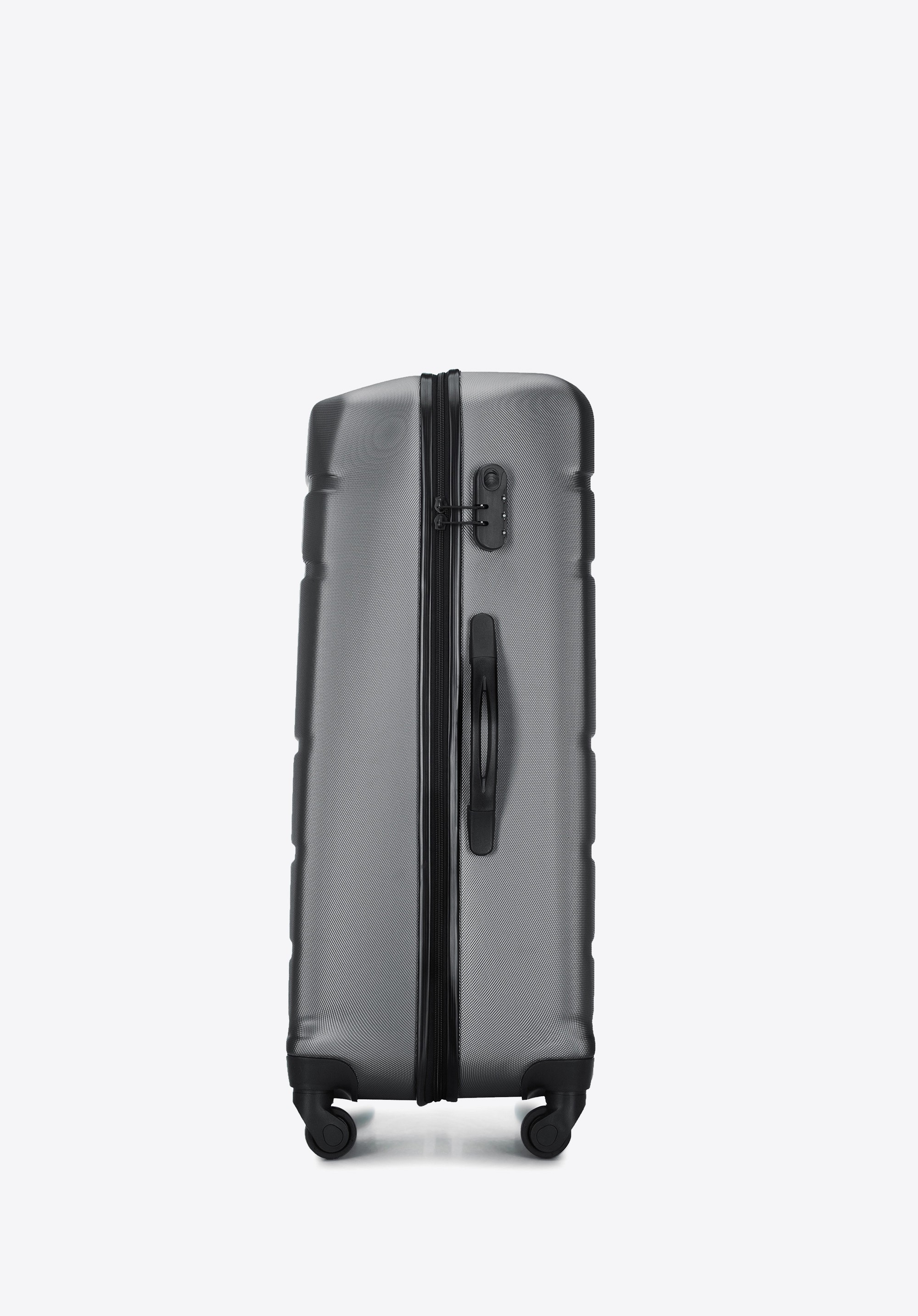 Această valiză mare, realizată din ABS, cu o suprafață texturată și o etichetă de identitate, este setul perfect gata de plecare pentru pasionații de călătorii. Acest design are o încuietoare cu combinație, mâner telescopic retractabil din aluminiu și un mâner de cauciuc pentru o manevrare ușoară. Are relief vertical care adaugă un caracter unic valizei.