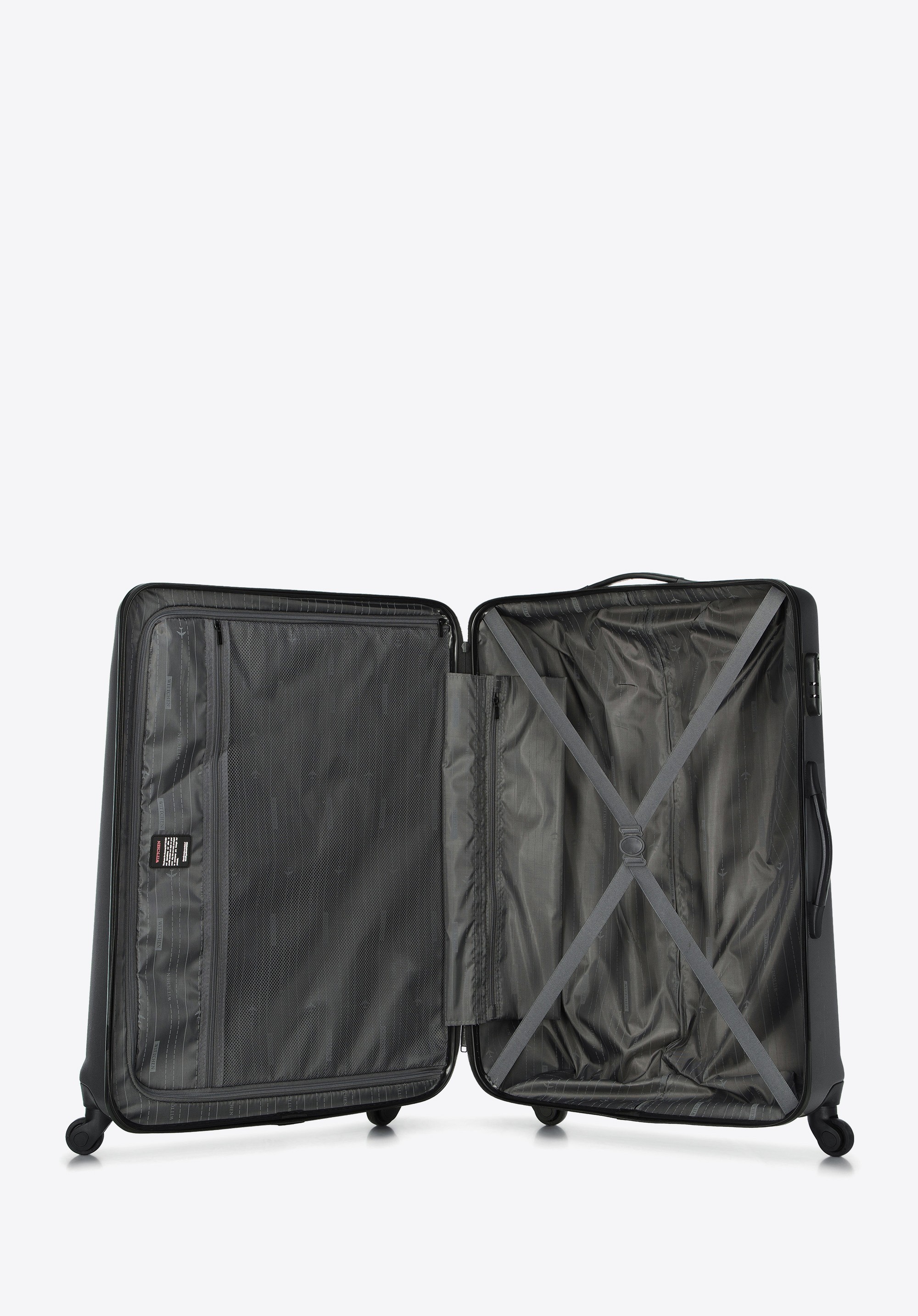 - Interior: Compartiment principal cu bretele elastice pentru fixarea hainelor si un compartiment cu fermoar.