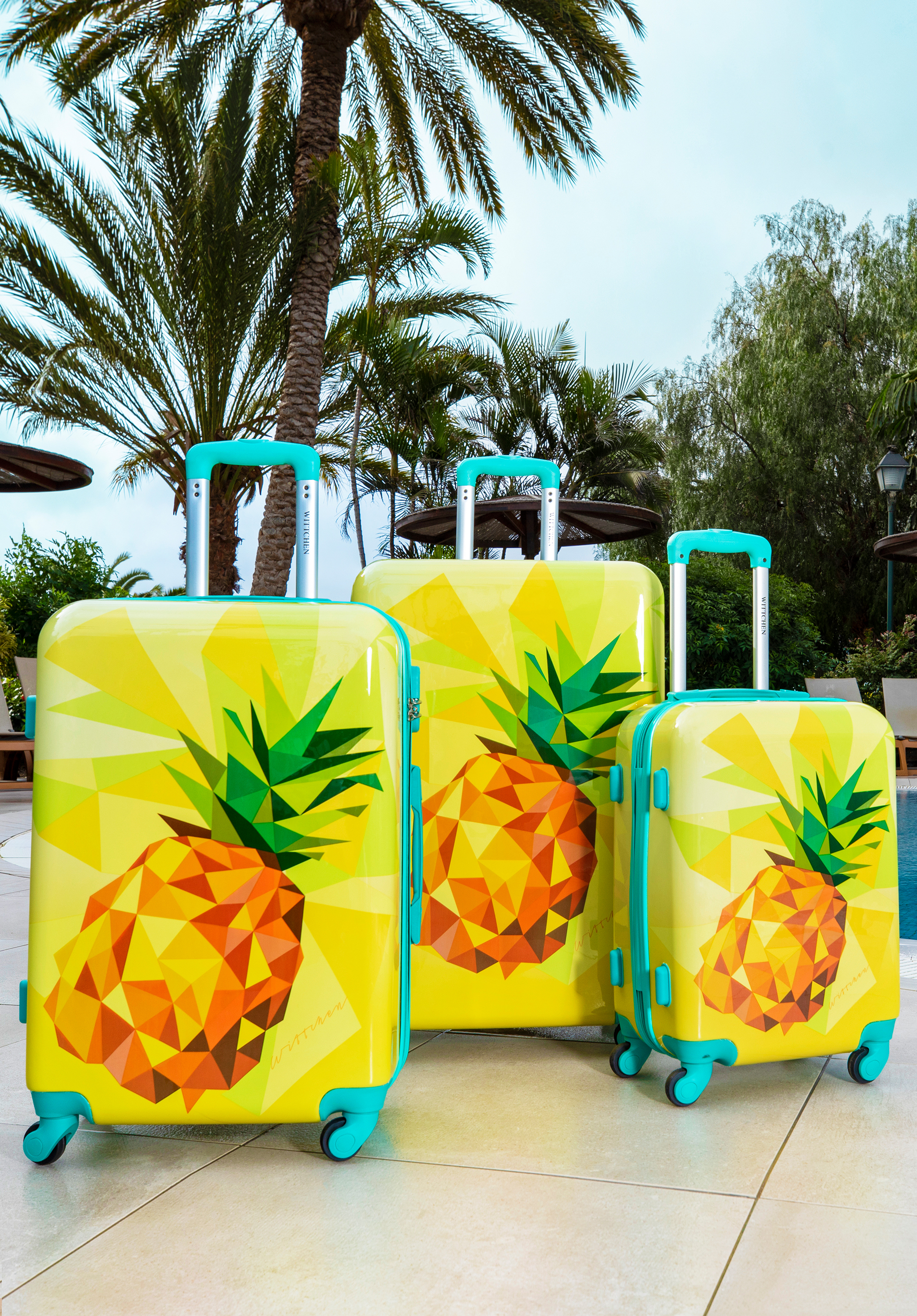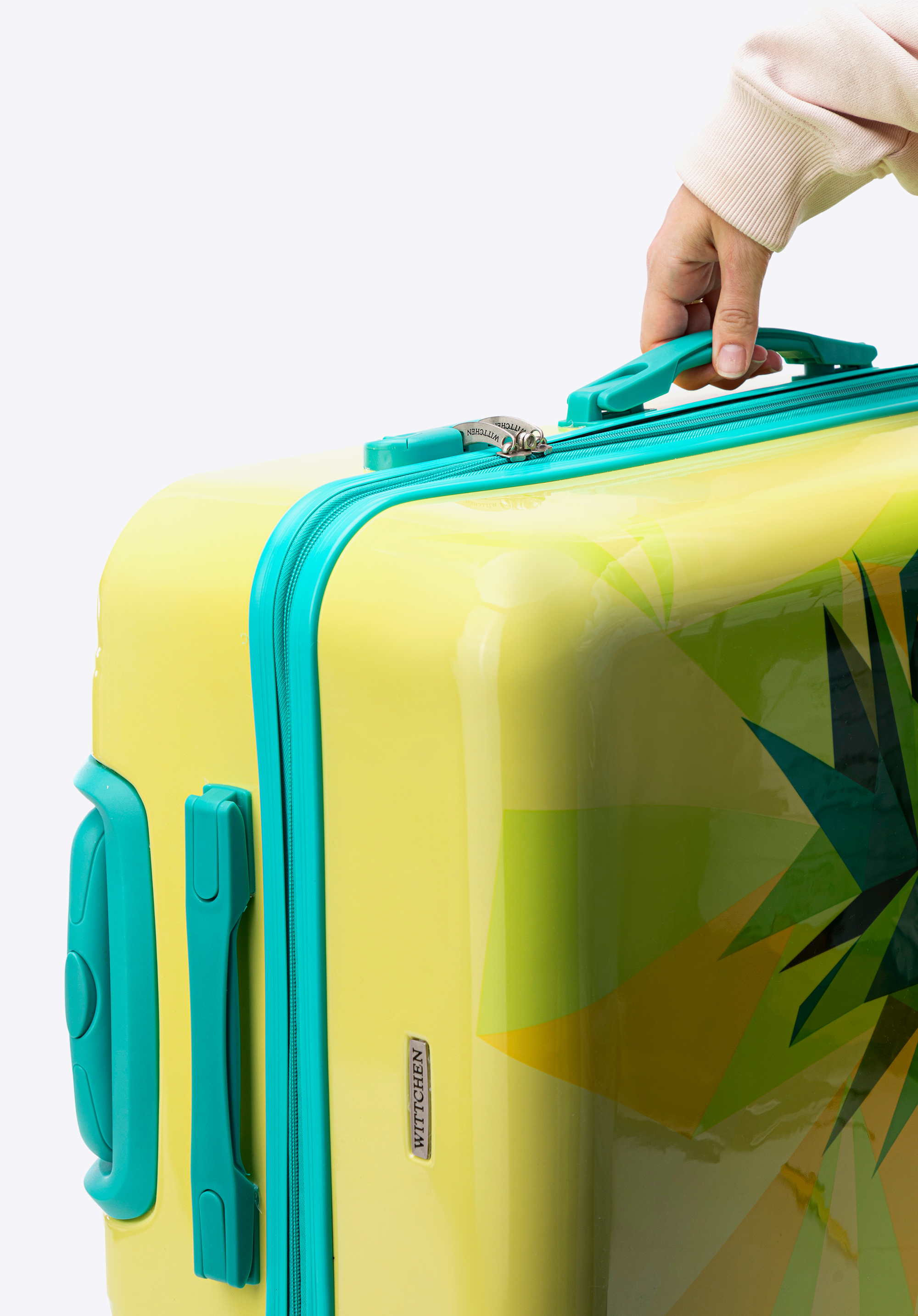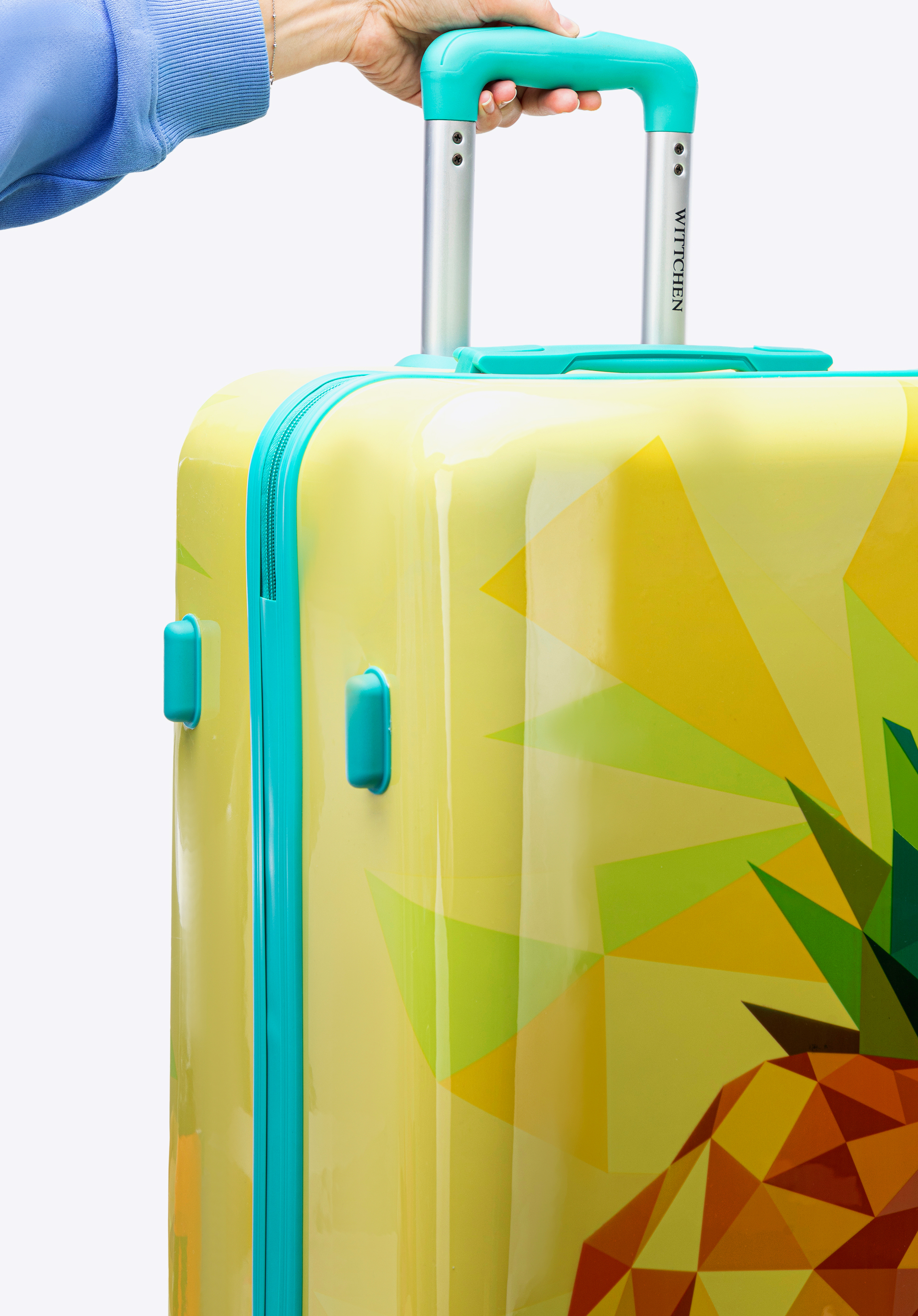 Această valiză mare va atrage multe priviri. Fabricat din material ABS rezistent la uzură, cu acoperire din policarbonat, acest bagaj are un design unic, inspirat de natură. Perfect pentru toti pasionatii de aventuri. Dispune de patru roți pentru rulare lină, un mâner telescopic și un mâner flexibil pentru o ridicare ușoară. În plus, este echipat cu o încuietoare cu combinație pentru o călătorie sigură. Disponibil în diferite nuanțe, această geantă se remarcă în caruselul de bagaje, facilitând ieșirile rapide din aeroport.