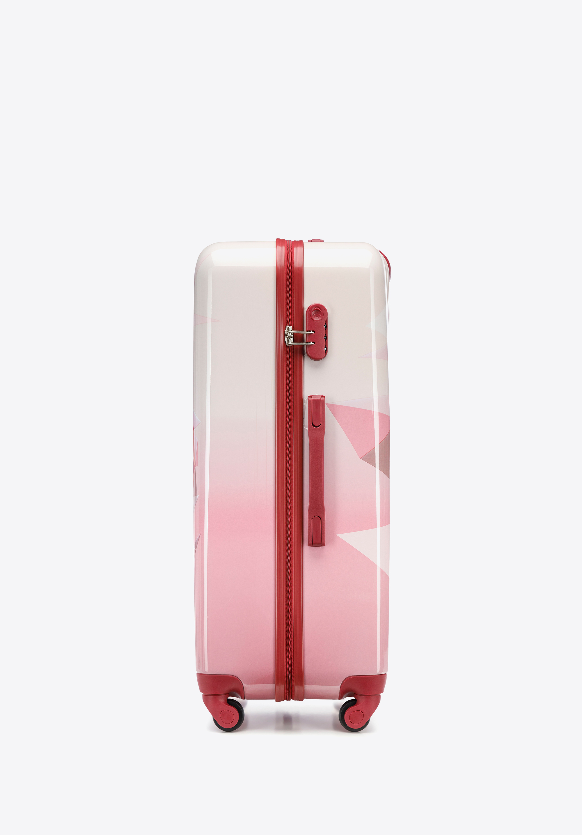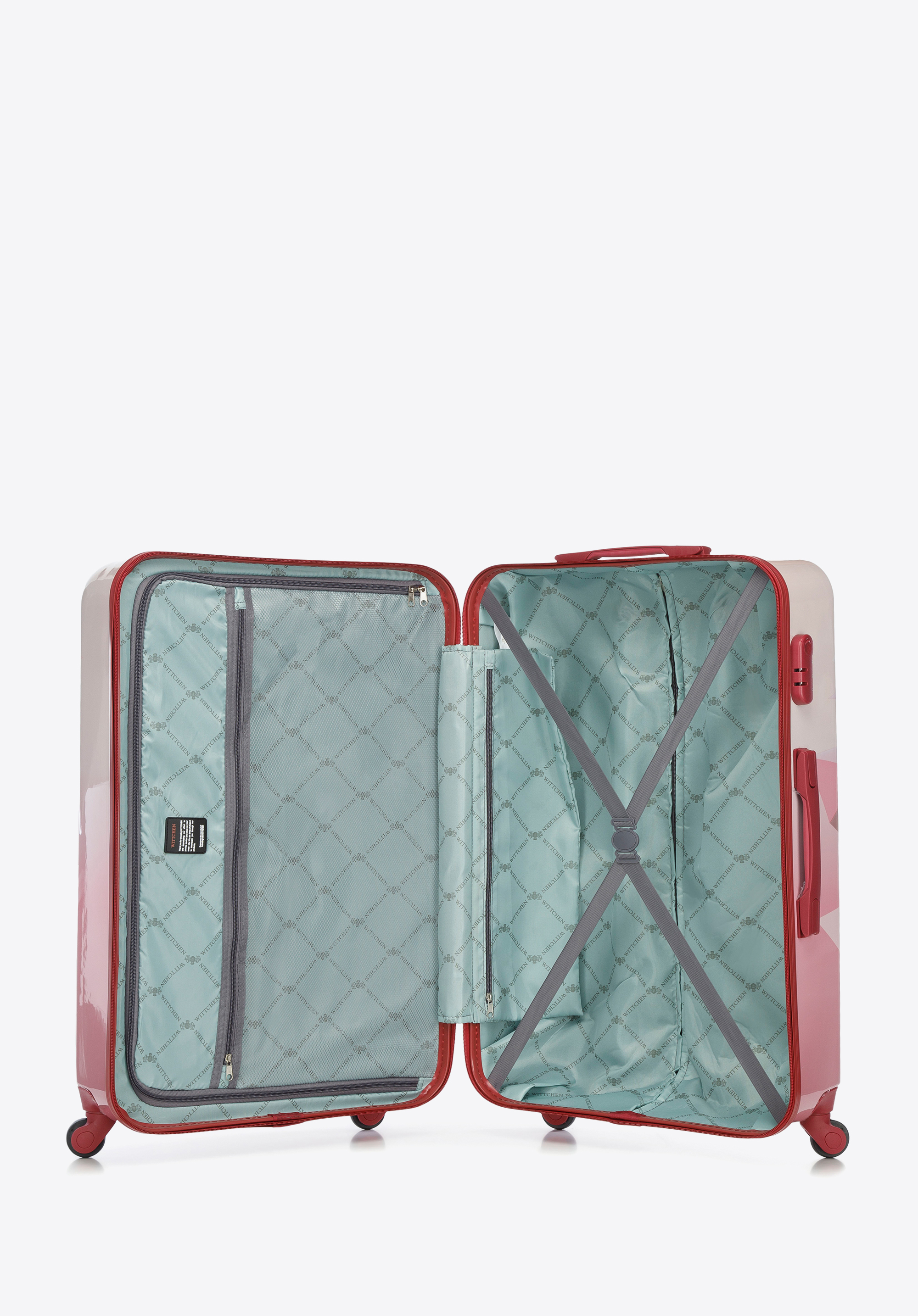 Această valiză mare va atrage multe priviri. Fabricat din material ABS rezistent la uzură, cu acoperire din policarbonat, acest bagaj are un design unic, inspirat de natură. Perfect pentru toti pasionatii de aventuri. Dispune de patru roți pentru rulare lină, un mâner telescopic și un mâner flexibil pentru o ridicare ușoară. În plus, este echipat cu o încuietoare cu combinație pentru o călătorie sigură. Disponibil în diferite nuanțe, această geantă se remarcă în caruselul de bagaje, facilitând ieșirile rapide din aeroport.