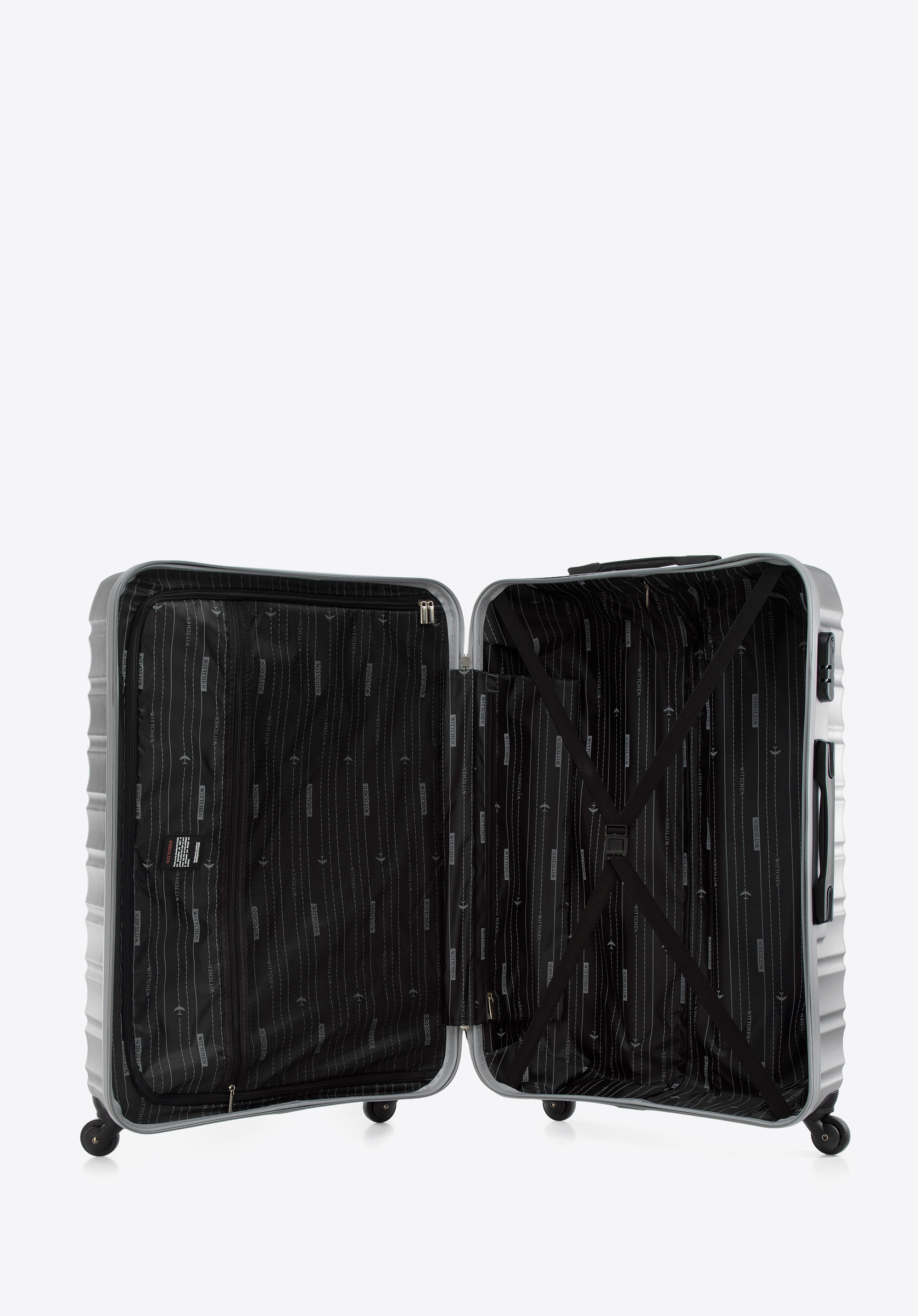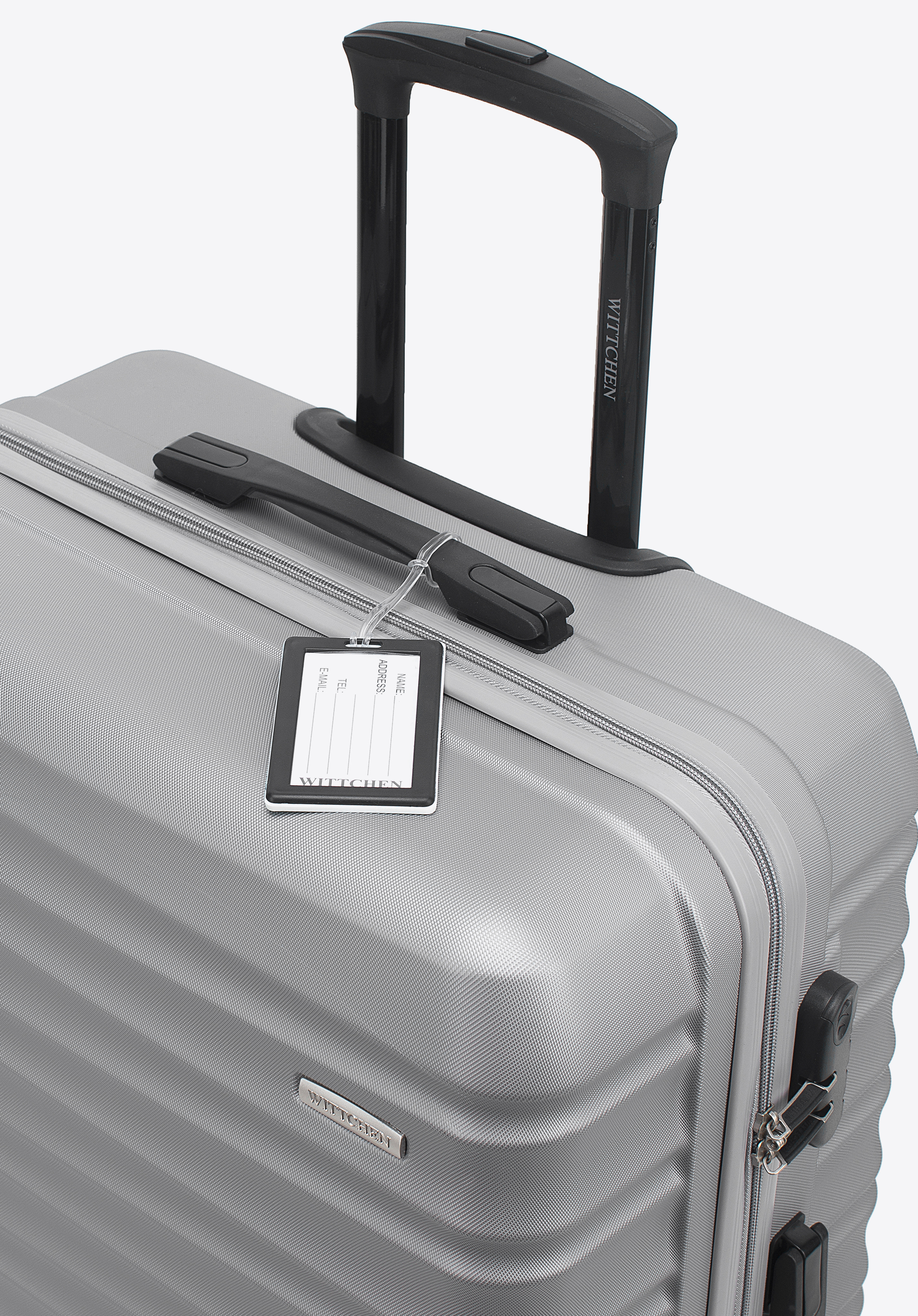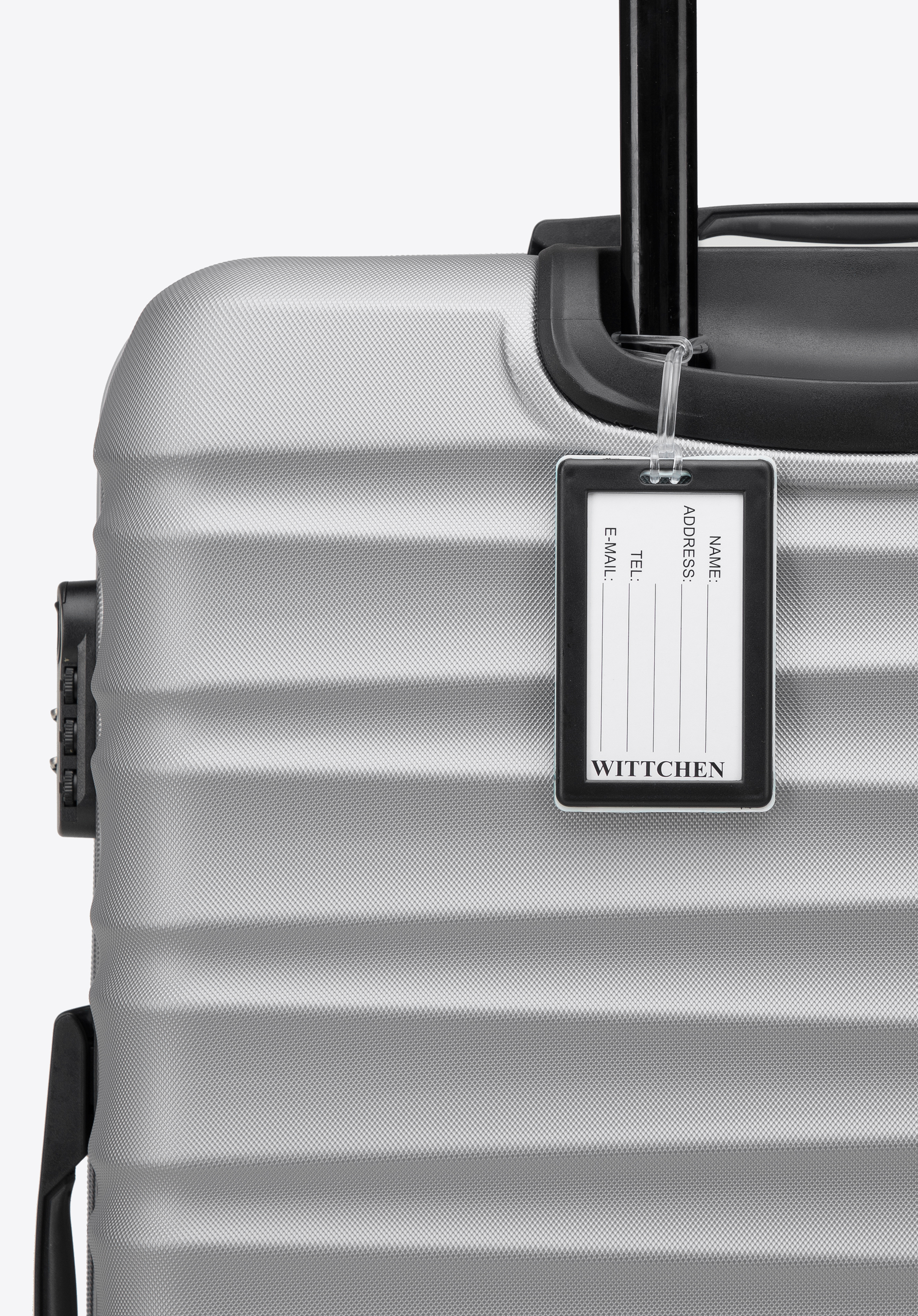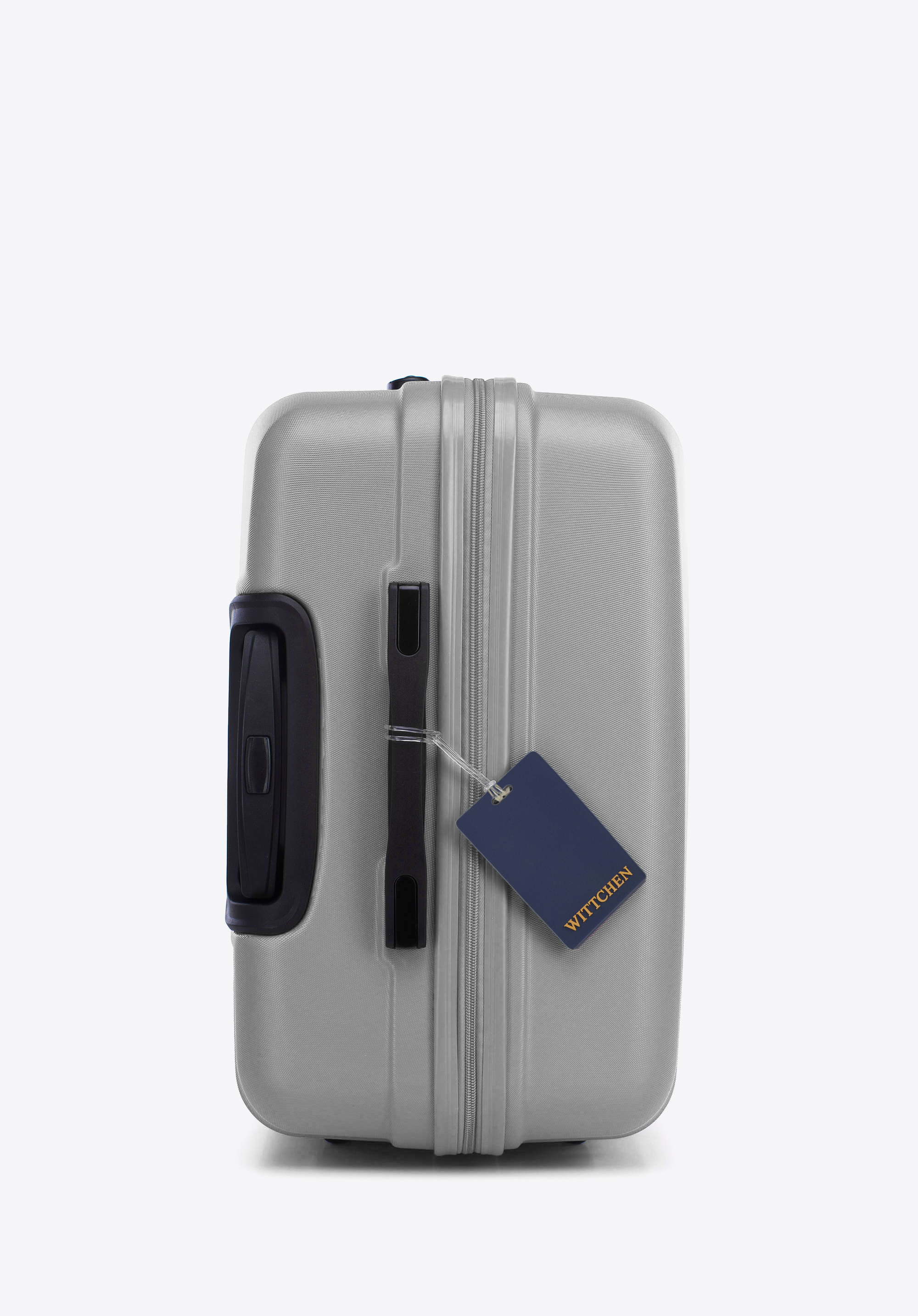 Valiză mare din ABS și etichetă de bagaj gri