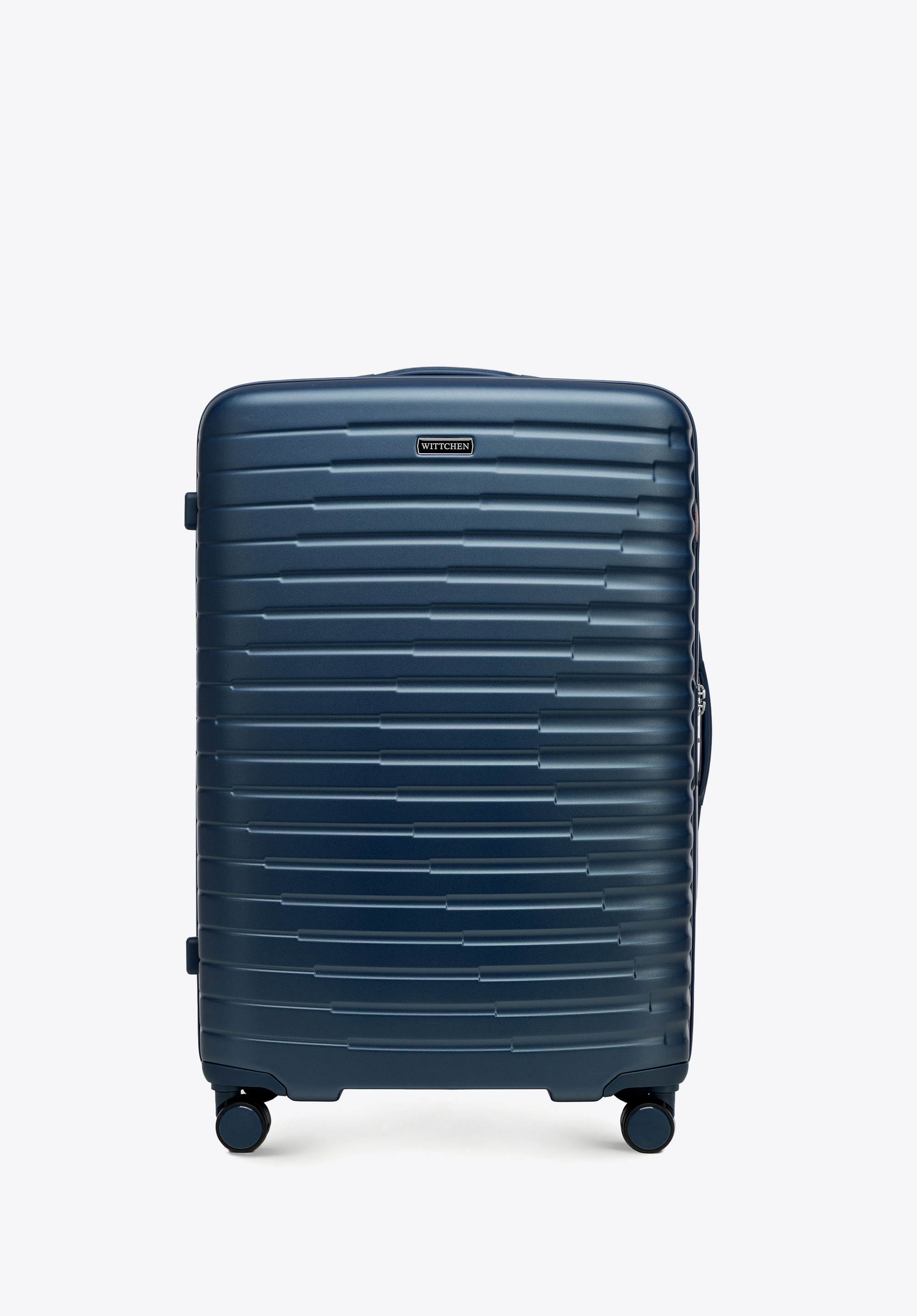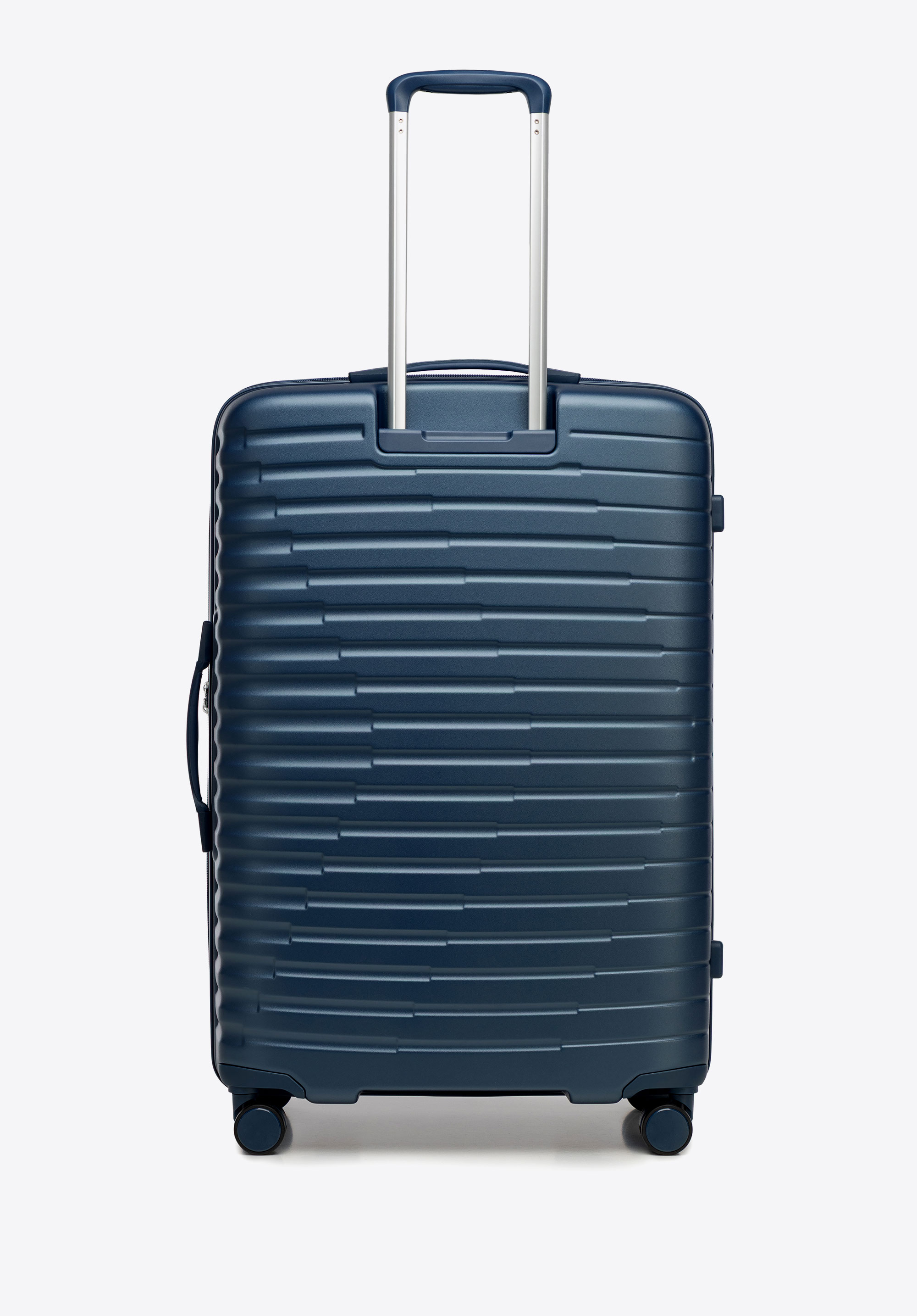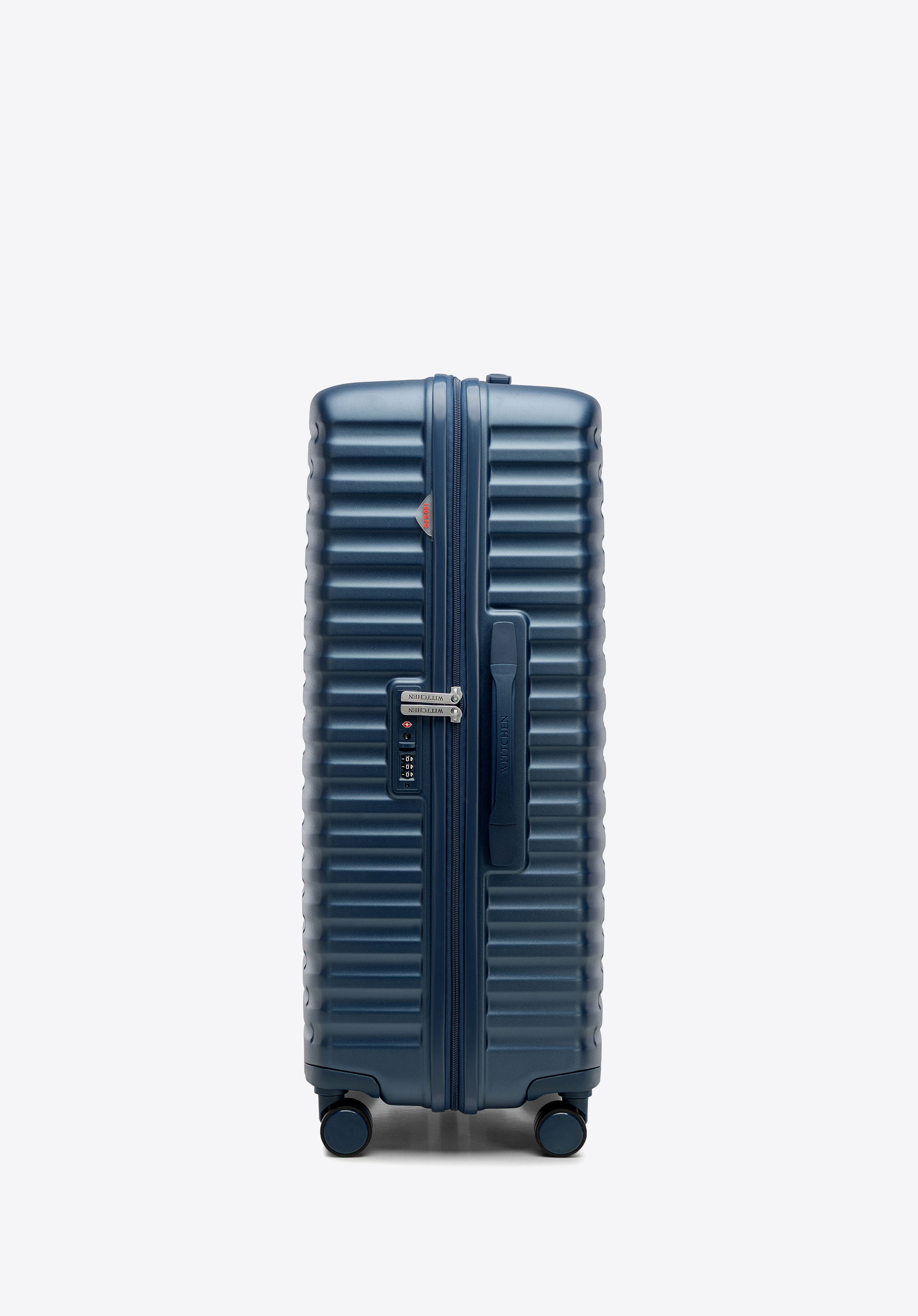 Valiză mare din policarbonat cu caneluri orizontale albastru-marin