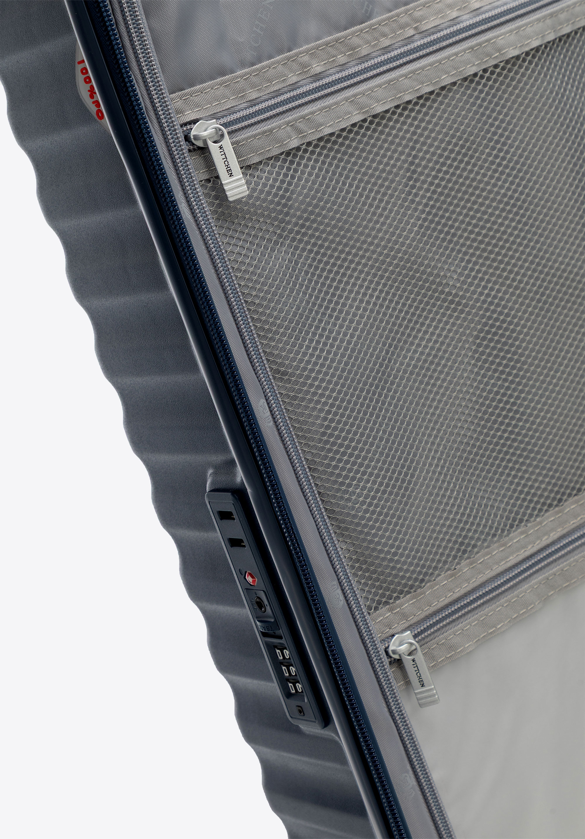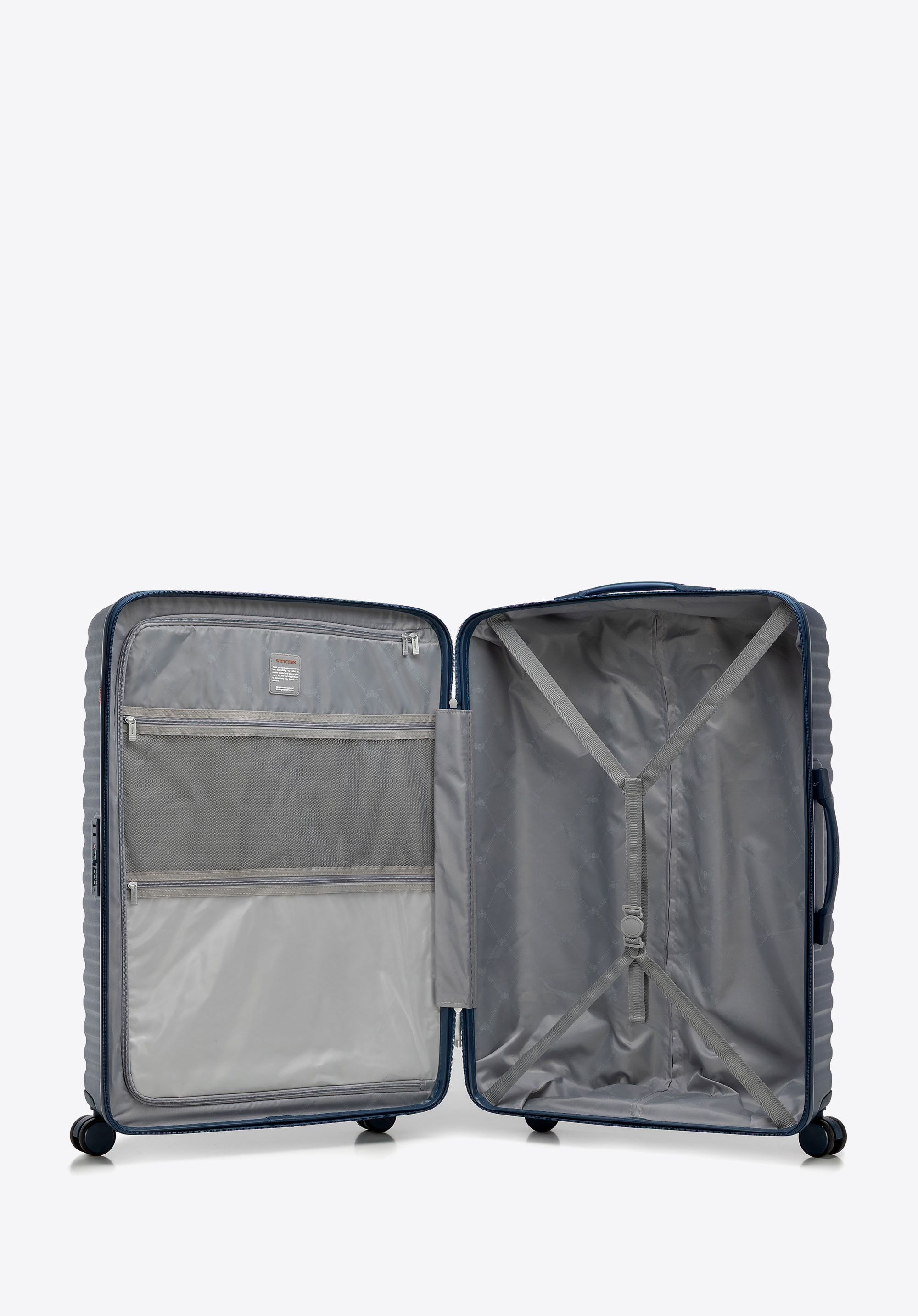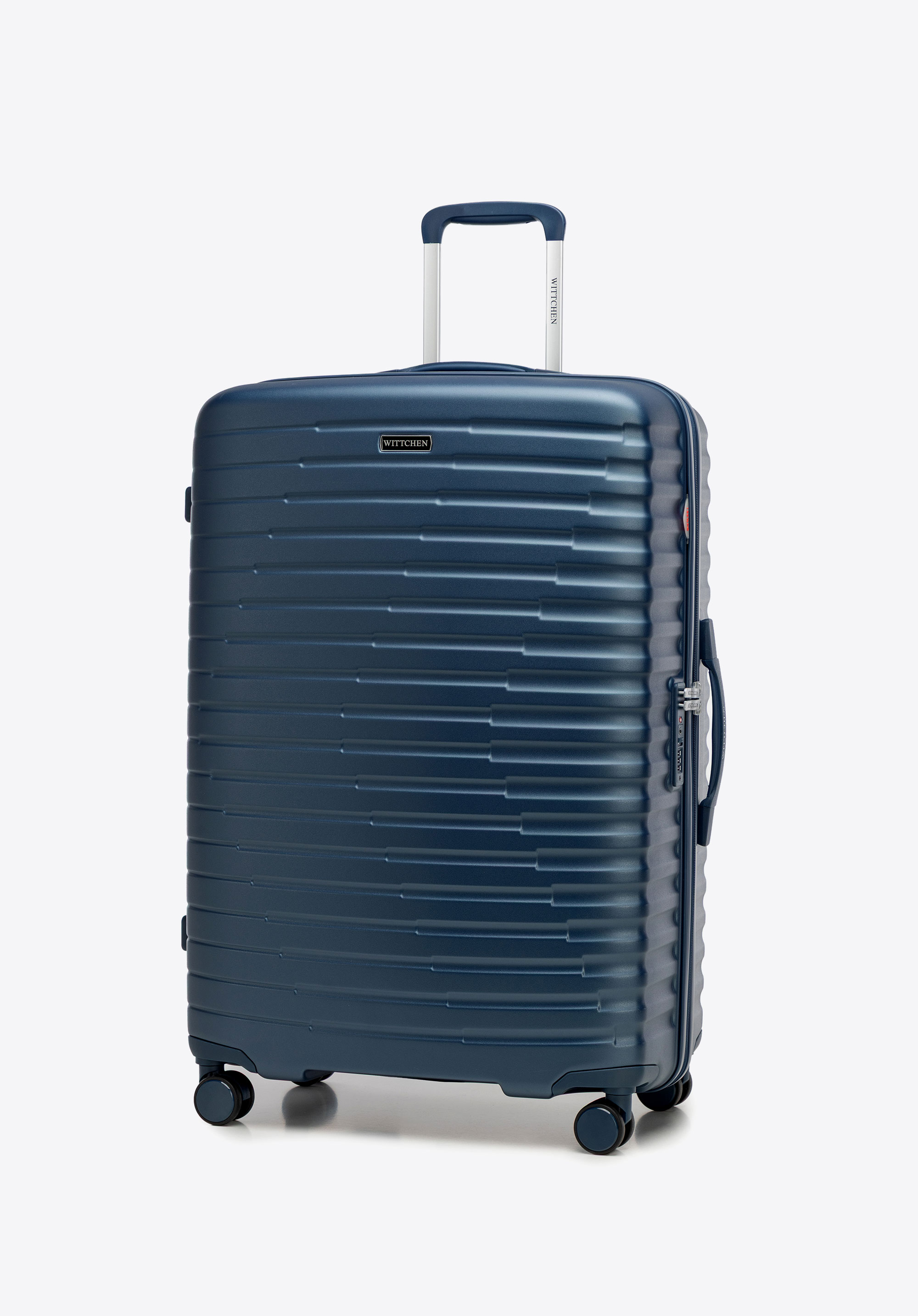 Valiză mare din policarbonat cu caneluri orizontale albastru-marin