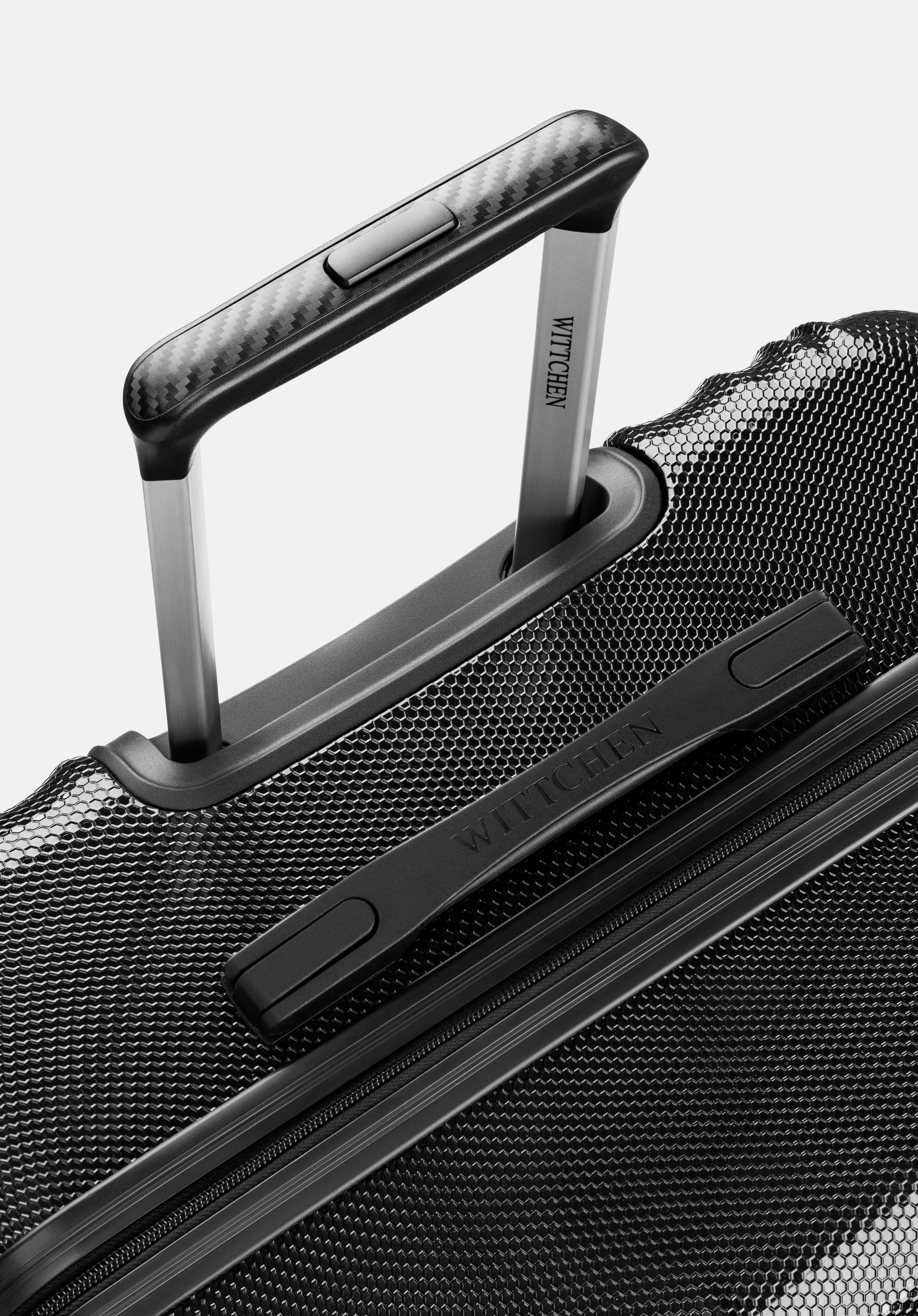 Confort de utilizare: Două mânere, cauciucate pe interior, fac bagajul ușor de transportat, iar picioarele din plastic asigură stabilitatea.