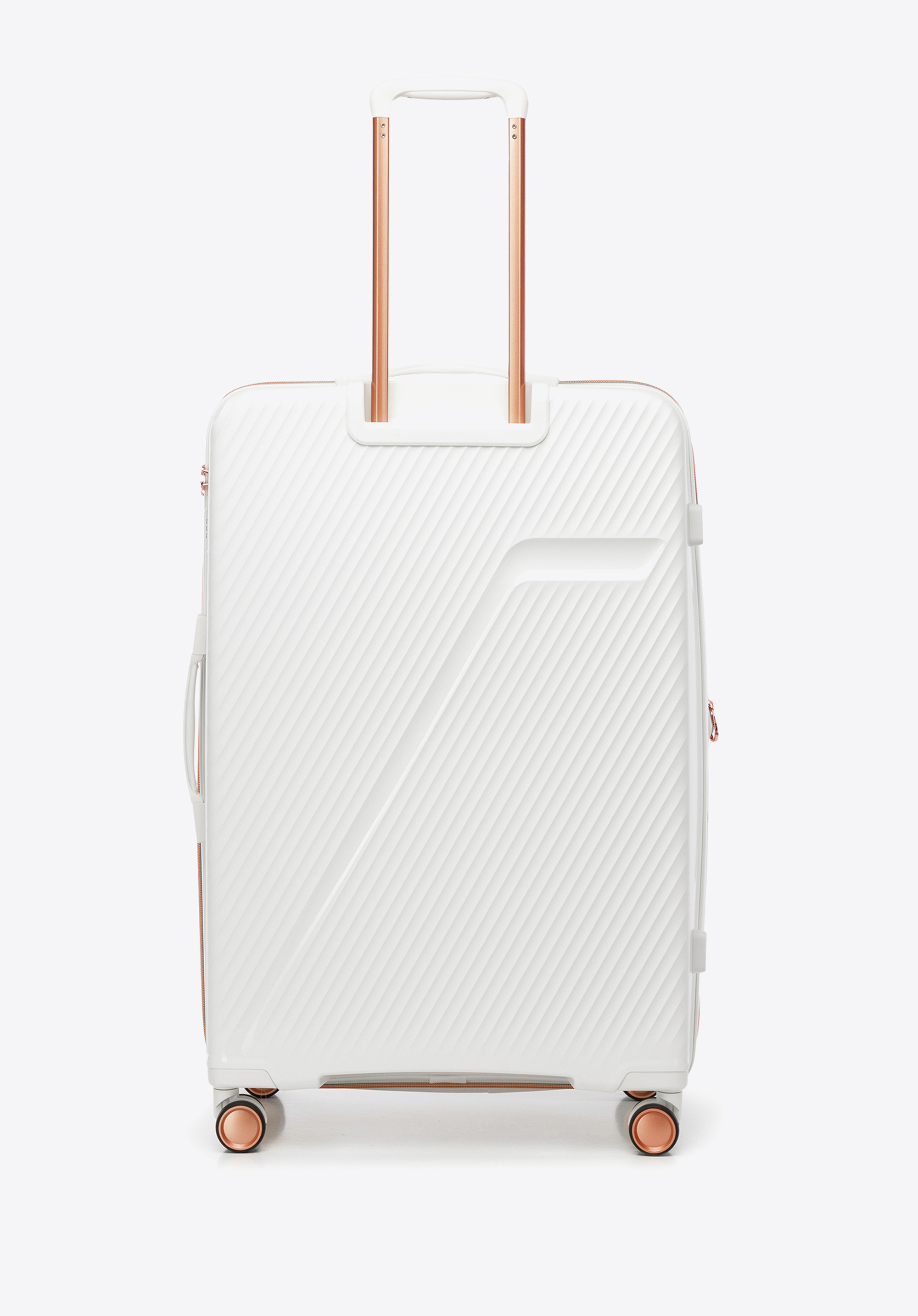 Cauți o valiză care să poată face față cerințelor călătoriilor mai lungi, făcând în același timp o impresie elegantă la aeroport sau în holul hotelului? Acest model WITTCHEN mare din colecția WIN LINE combină perfect funcționalitatea, durabilitatea și designul modern. Fabricată din polipropilenă , are o construcție ușoară, dar robustă și un model distinctiv cu dungi diagonale, cu un logo subtil și elegant. Când ai nevoie de spațiu suplimentar, folosește pur și simplu funcția extensibilă pentru a câștiga încă 4 cm de spațiu de ambalare pentru suvenirurile tale de călătorie.