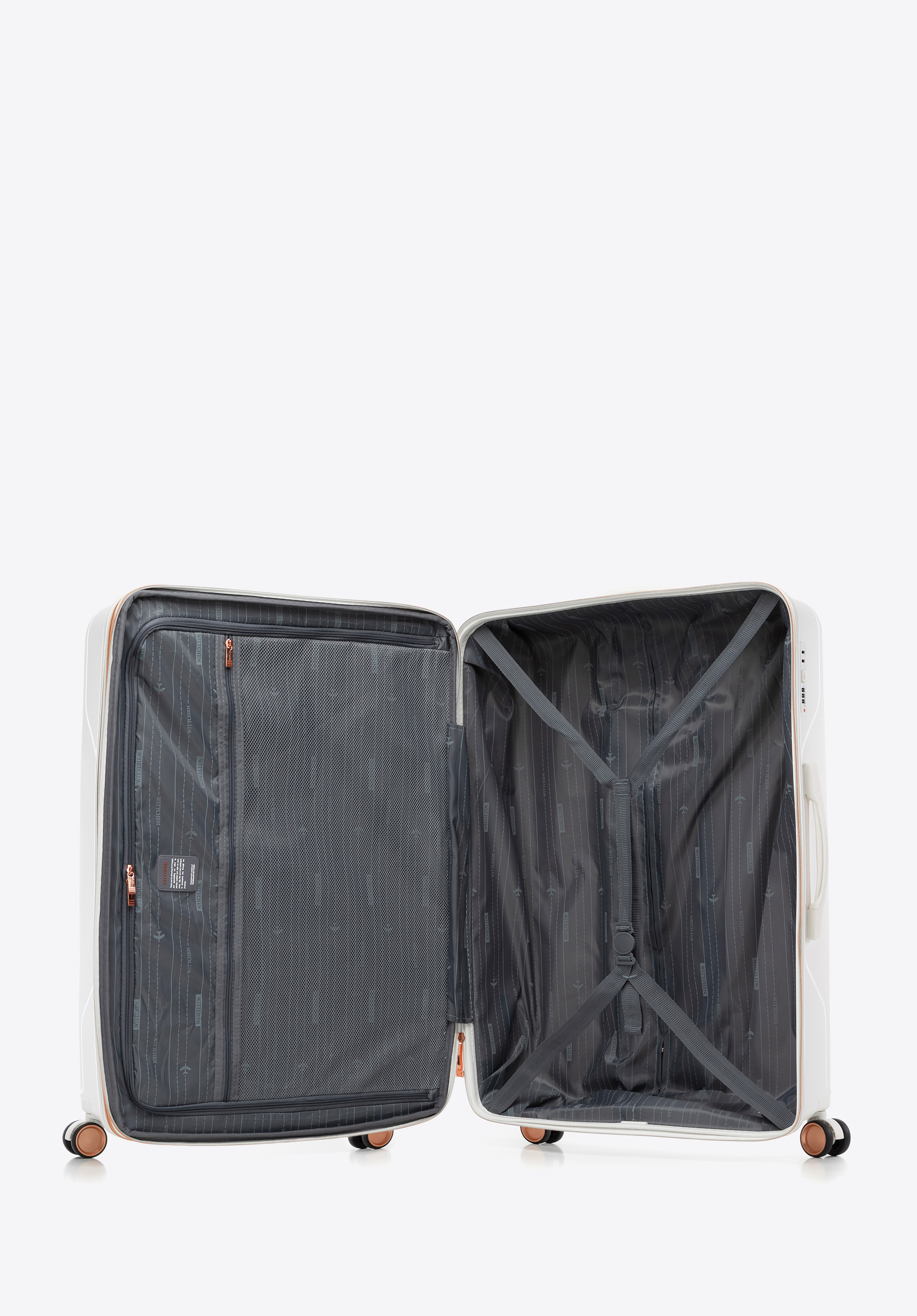 - Material: Polipropilenă ușoară și flexibilă – protejează eficient bagajele de lovituri și deteriorări.