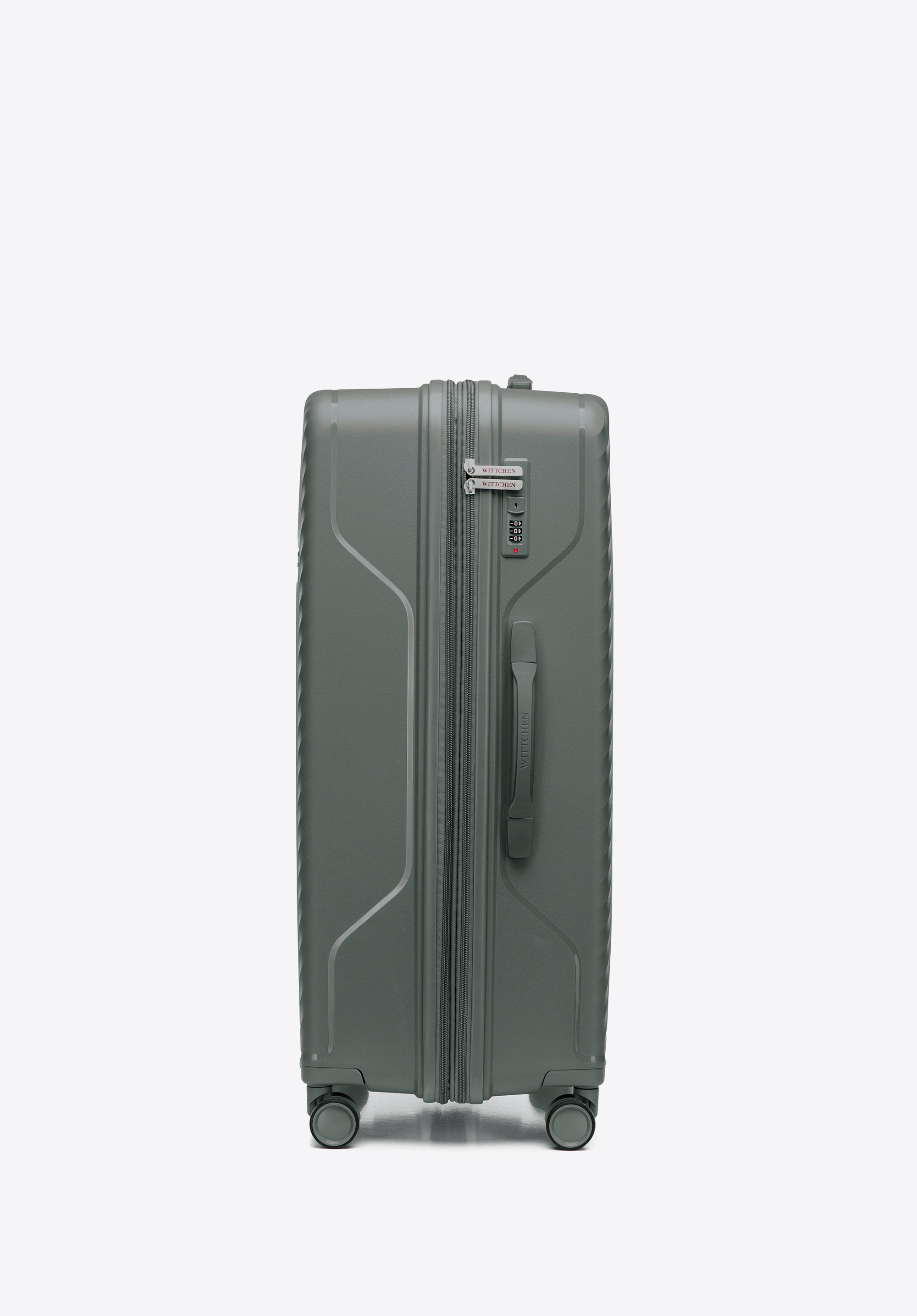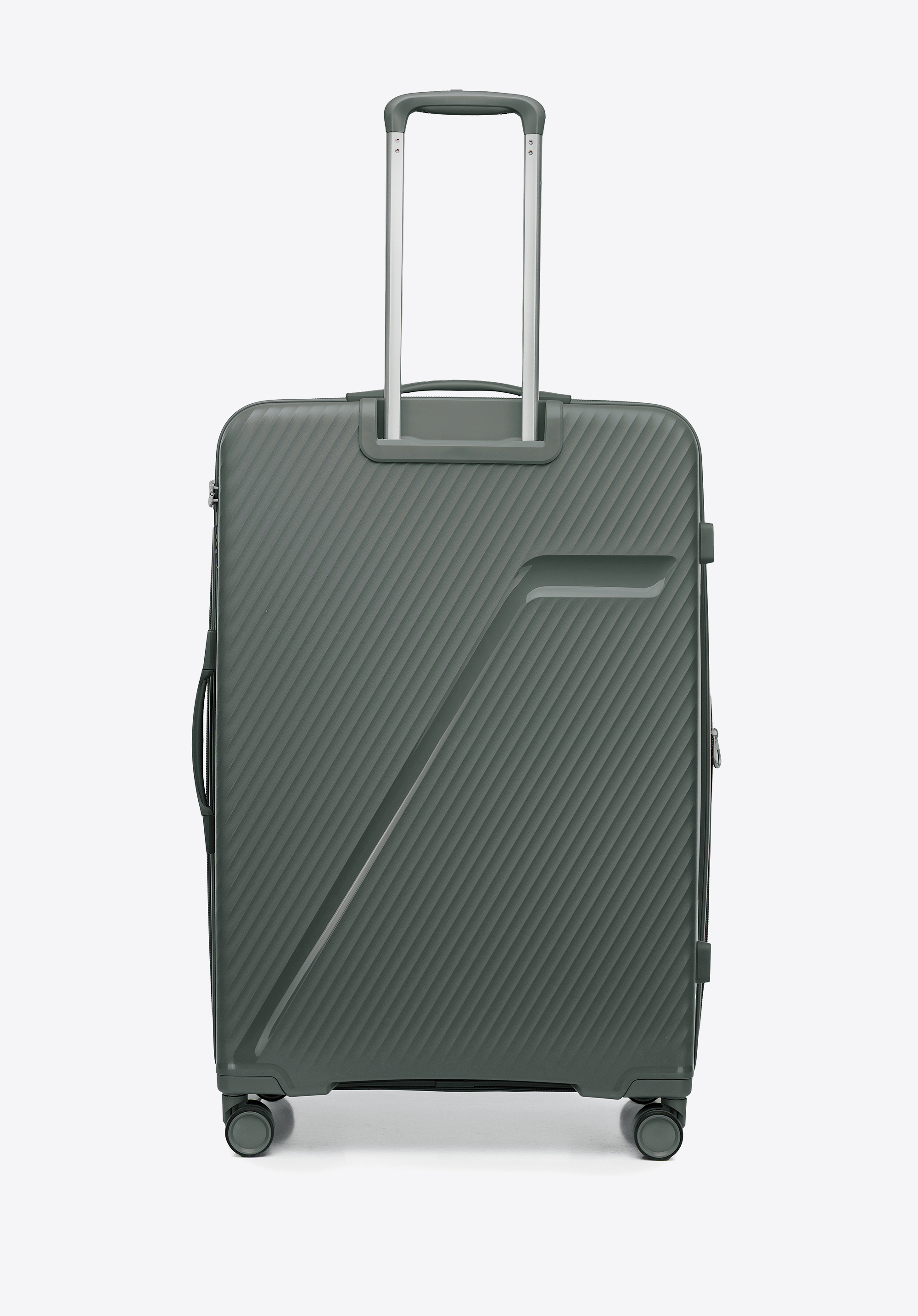 Cauți o valiză care să poată face față cerințelor călătoriilor mai lungi, făcând în același timp o impresie elegantă la aeroport sau în holul hotelului? Acest model WITTCHEN mare din colecția WIN LINE combină perfect funcționalitatea, durabilitatea și designul modern. Fabricată din polipropilenă , are o construcție ușoară, dar robustă și un model distinctiv cu dungi diagonale, cu un logo subtil și elegant. Când ai nevoie de spațiu suplimentar, folosește pur și simplu funcția extensibilă pentru a câștiga încă 4 cm de spațiu de ambalare pentru suvenirurile tale de călătorie.