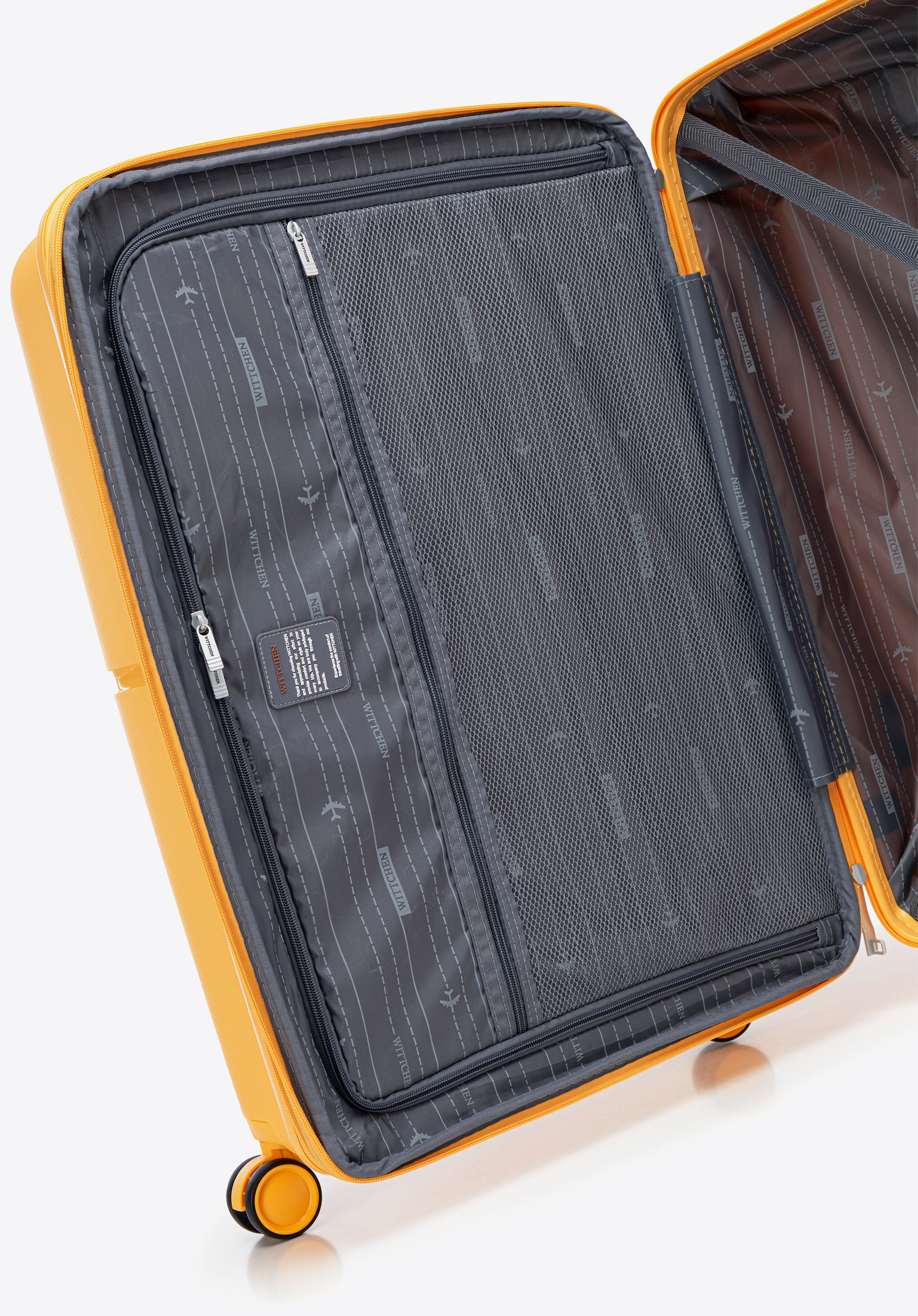 - Stabilitate: Patru știfturi laterale oferă o bază stabilă atunci când valiza este așezată pe o parte.