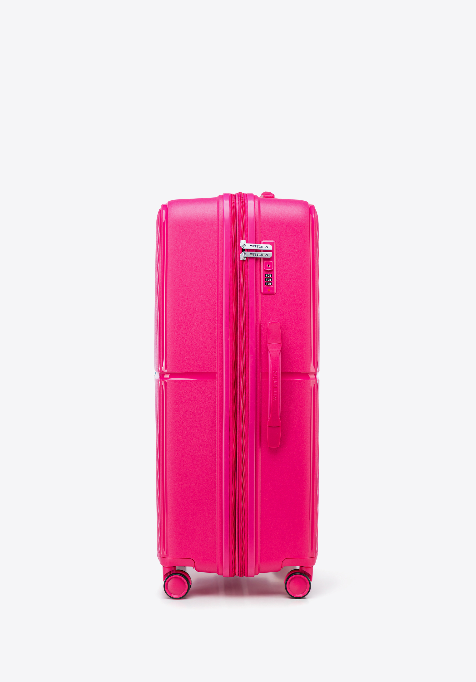 - Stabilitate: Patru știfturi laterale oferă o bază stabilă atunci când valiza este așezată pe o parte.