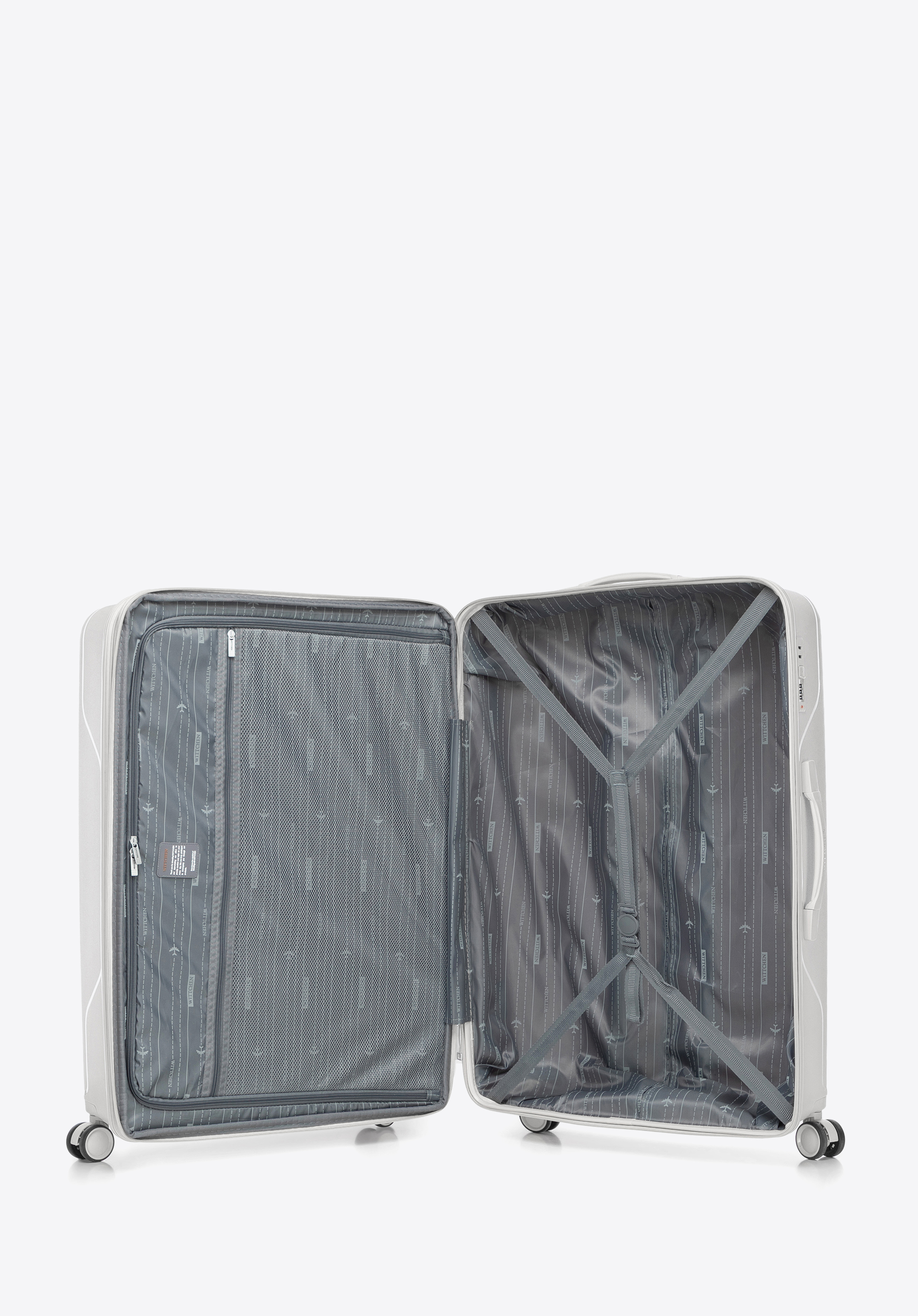 - Material: Polipropilenă ușoară și flexibilă – protejează eficient bagajele de lovituri și deteriorări.