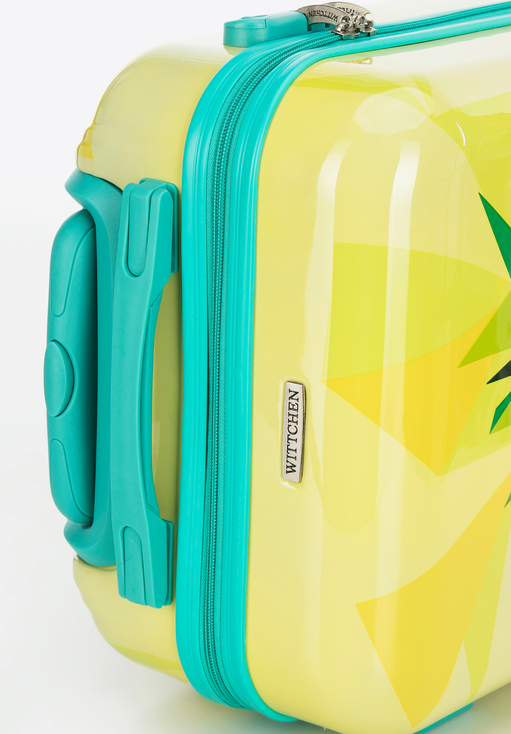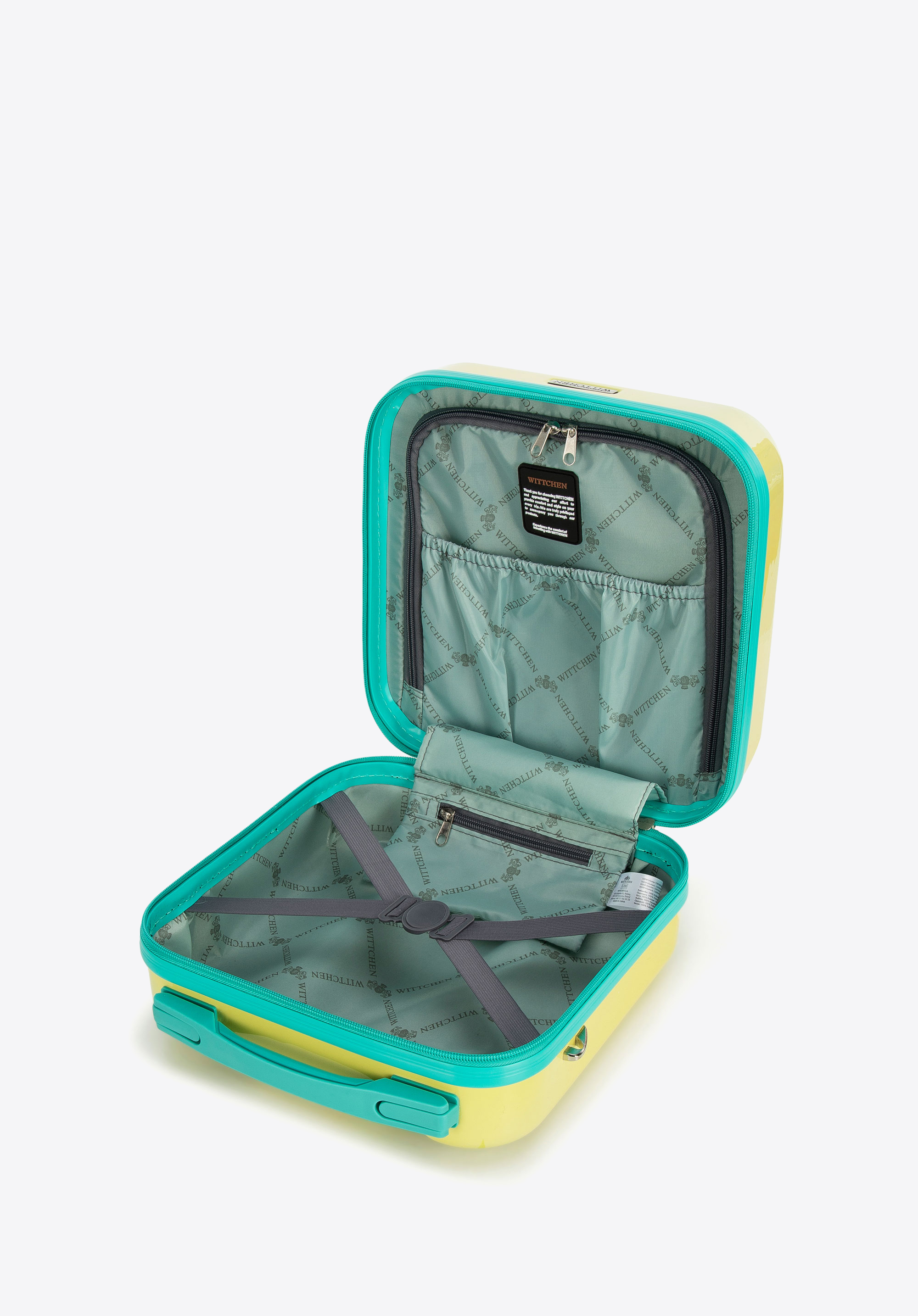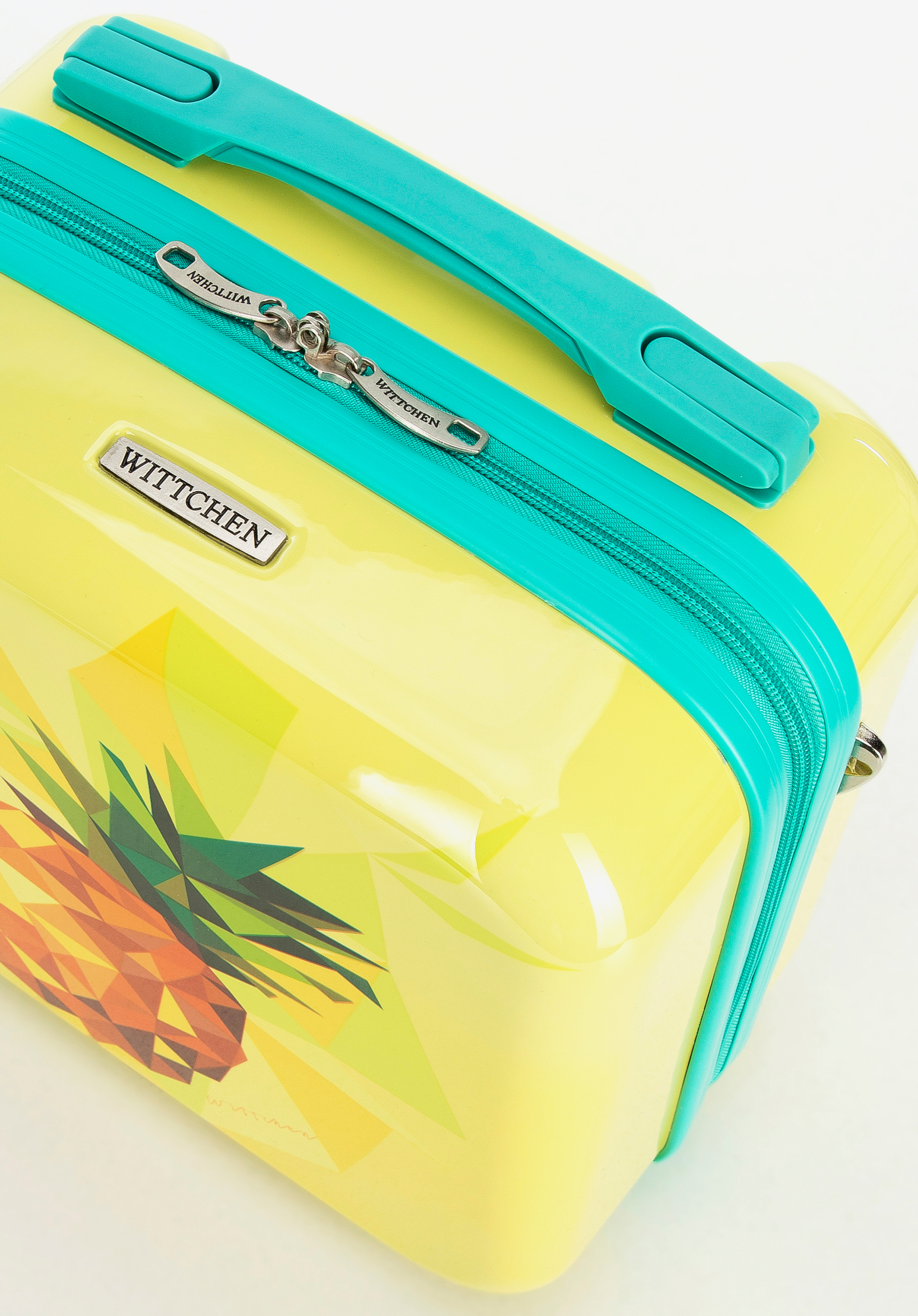 Atât valiza, cât și trusa de cosmetice sunt acoperite cu o folie protectoare transparentă, care poate fi îndepărtată.