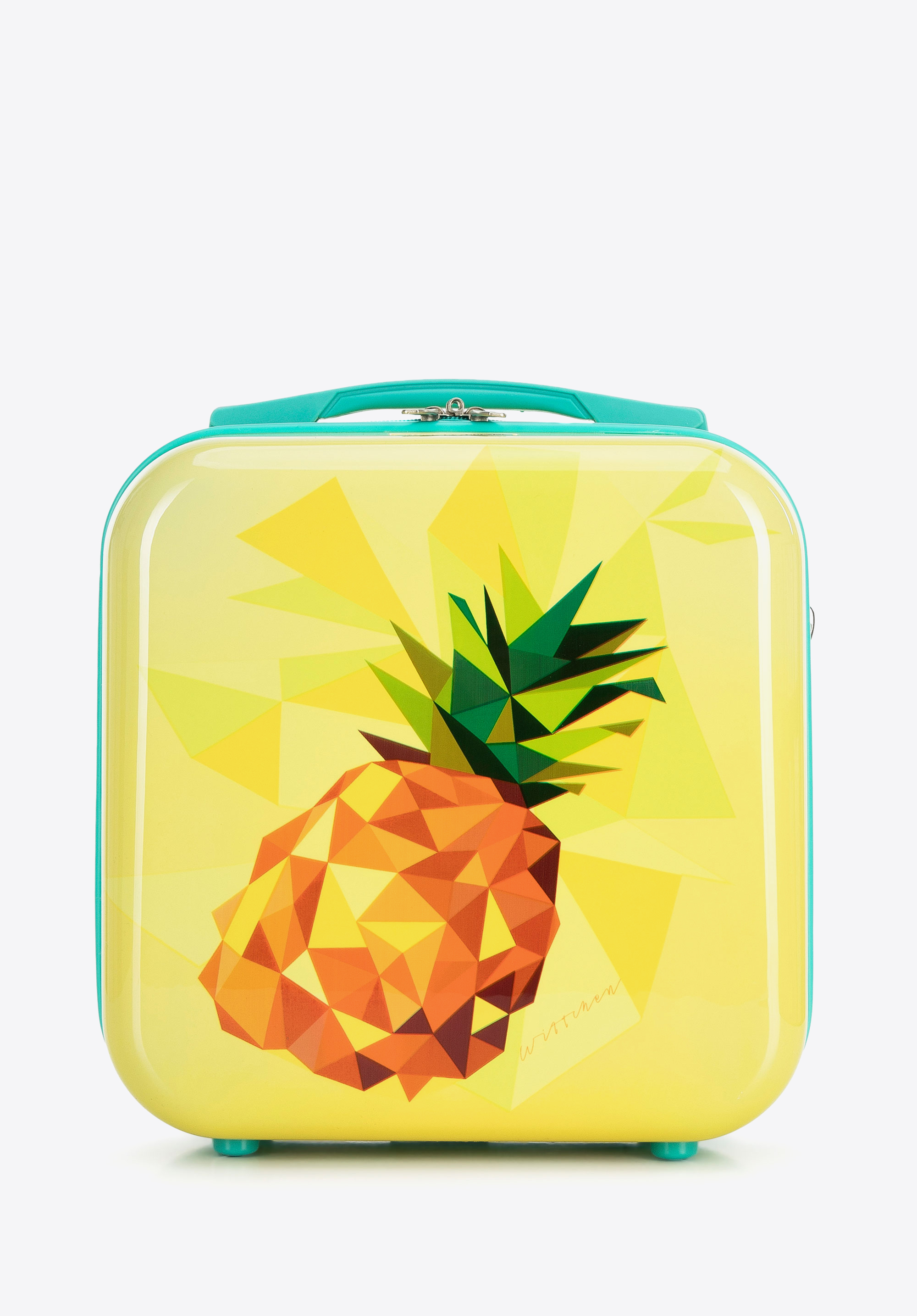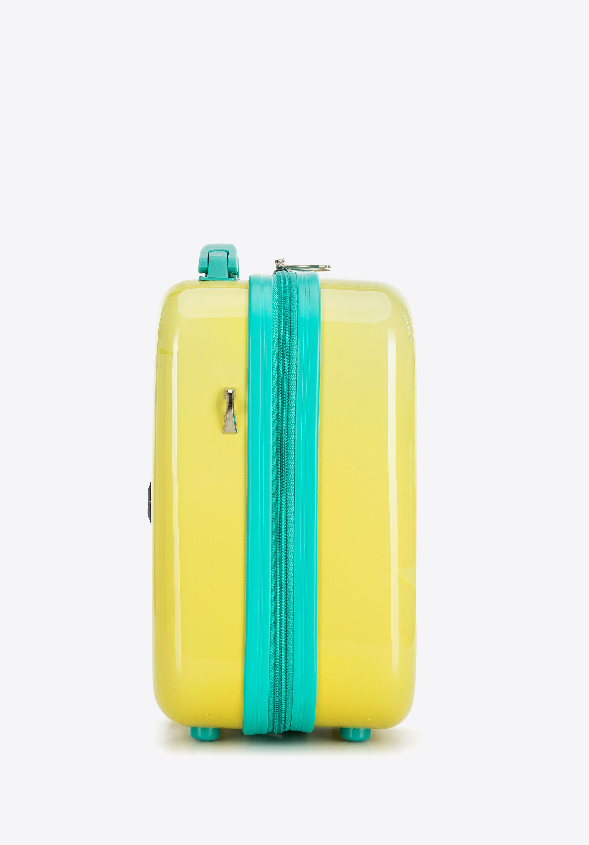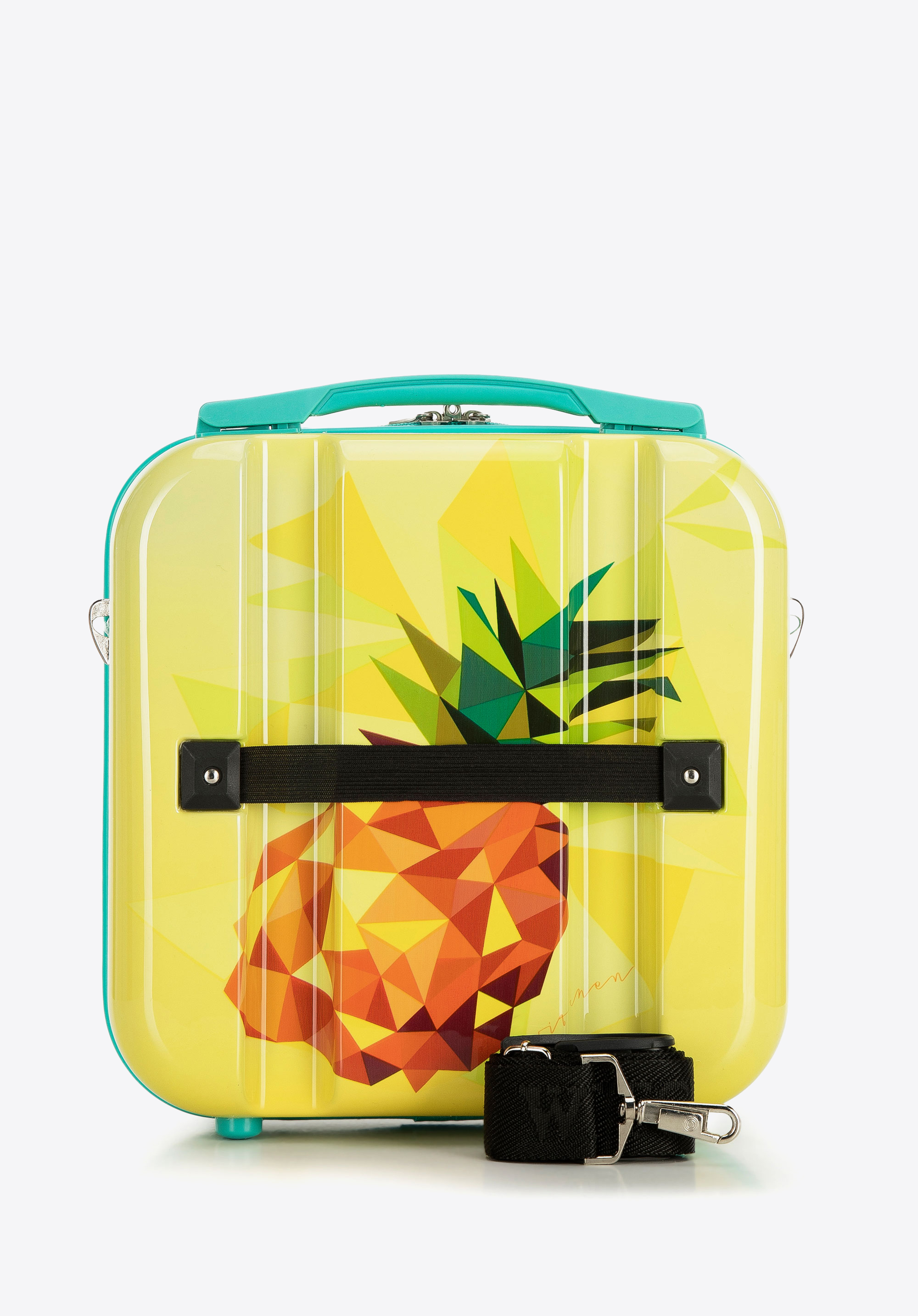 Atât valiza, cât și trusa de cosmetice sunt acoperite cu o folie protectoare transparentă, care poate fi îndepărtată.