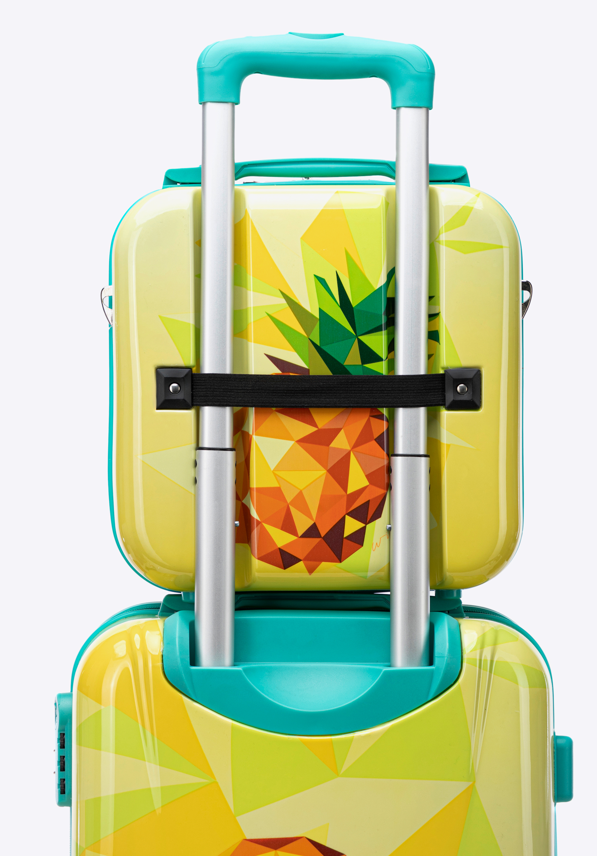 - Trusă cosmetică: Prezintă un mâner de transport, o curea de umăr detașabilă și reglabilă și o curea elastică pentru atașarea la mânerul valizei.
