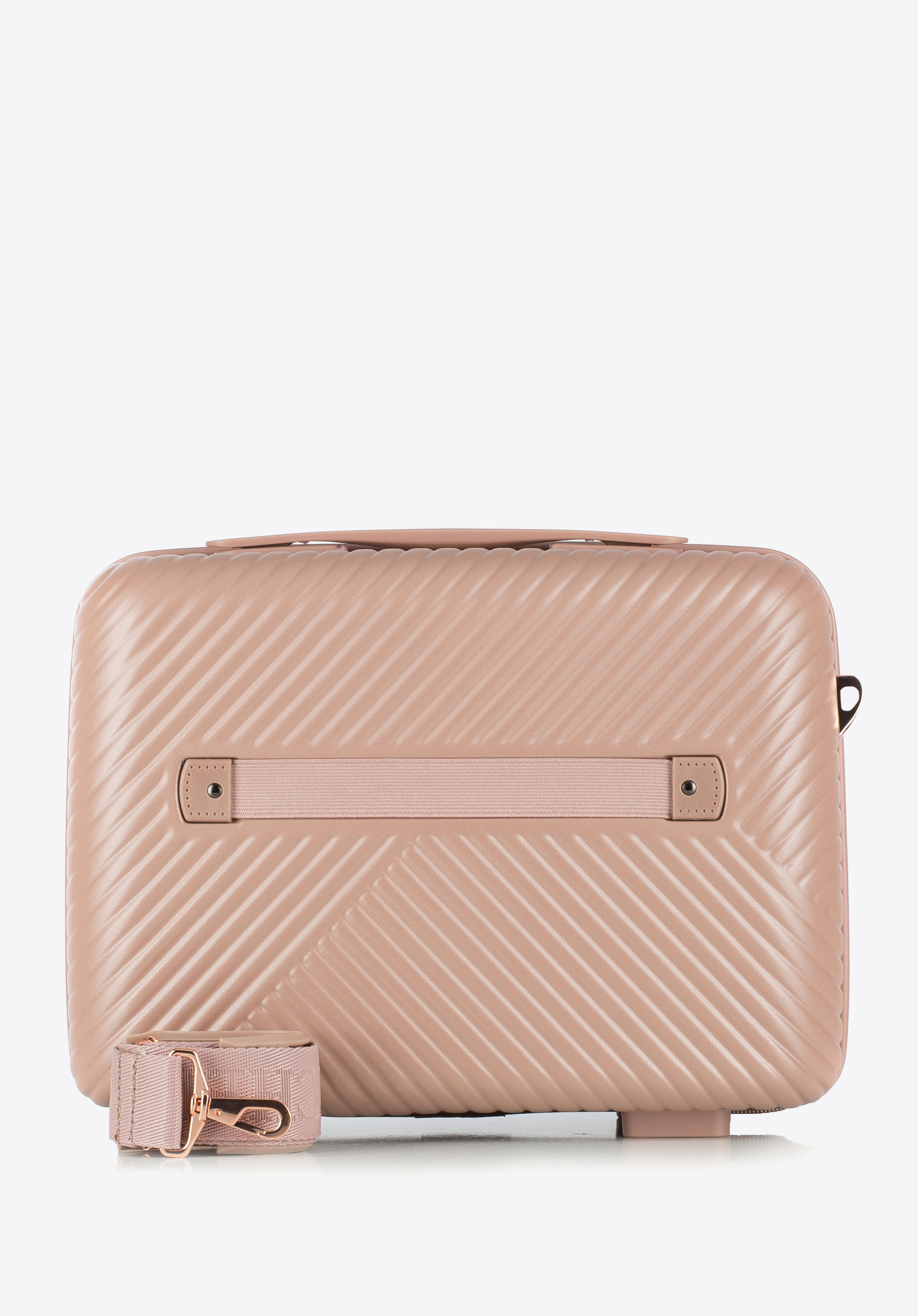 Un set elegant care va face fiecare călătorie confortabilă și stilată!. Valiza mare asortată cu o trusă cosmetică asortată din colecția GL Style, sunt fabricate din policarbonat rezistent, cu finisaj mat, combinând ușurința cu o rezistență ridicată la deteriorare. Reliefurile geometrice și accesoriile strălucitoare din aur roz le conferă un caracter modern, creând un duo elegant și la modă, perfect pentru călătorii mai lungi.