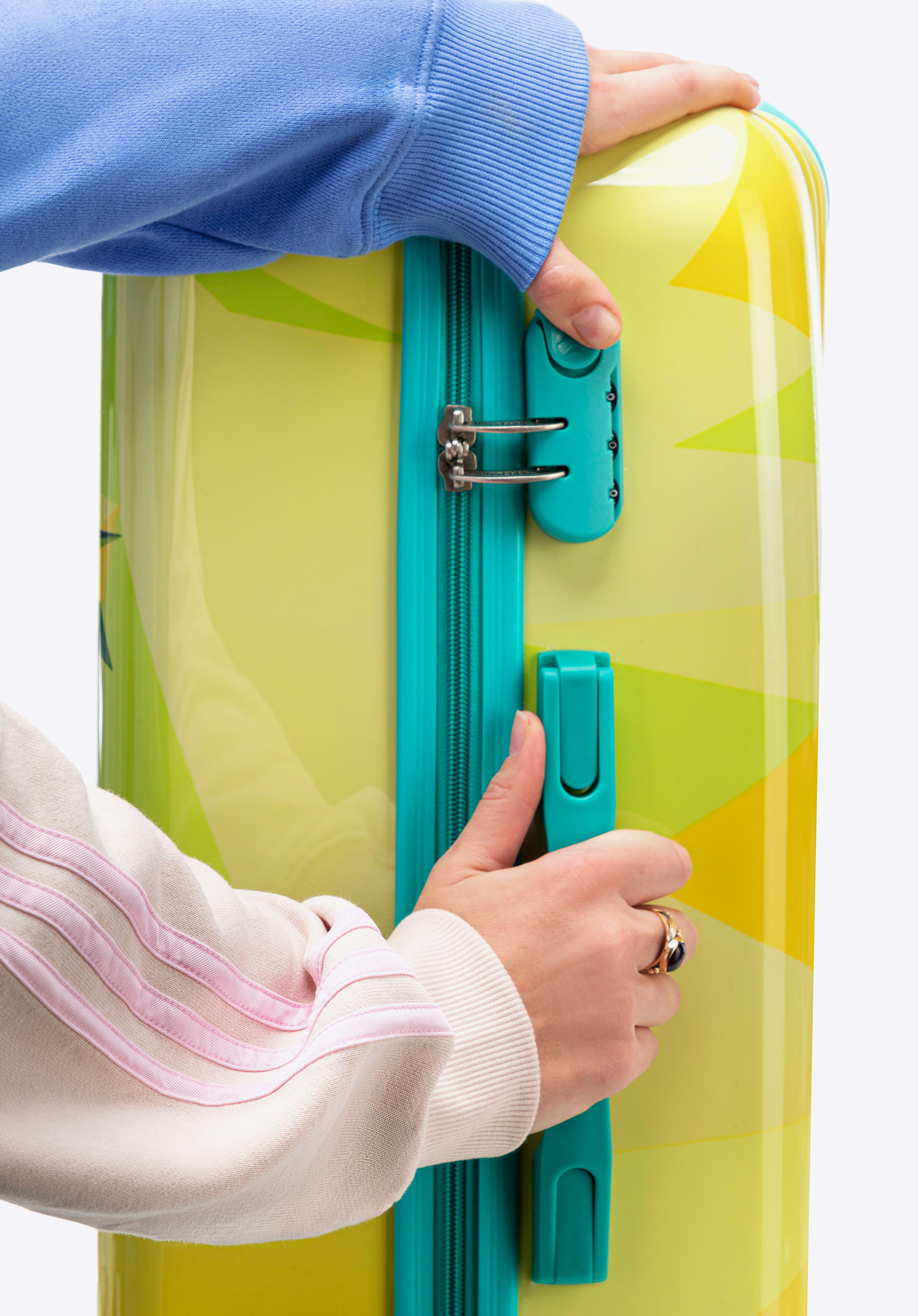 Valizele sunt acoperite suplimentar cu o folie protectoare transparentă care poate fi îndepărtată.