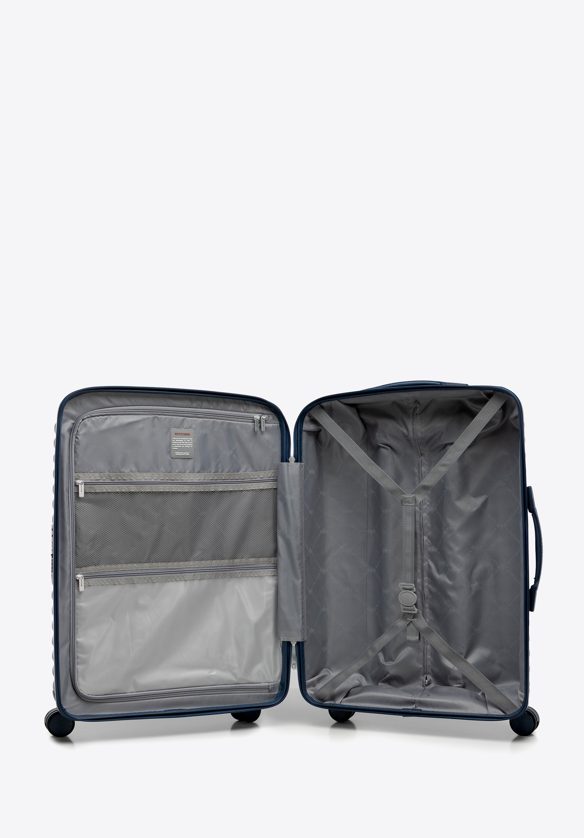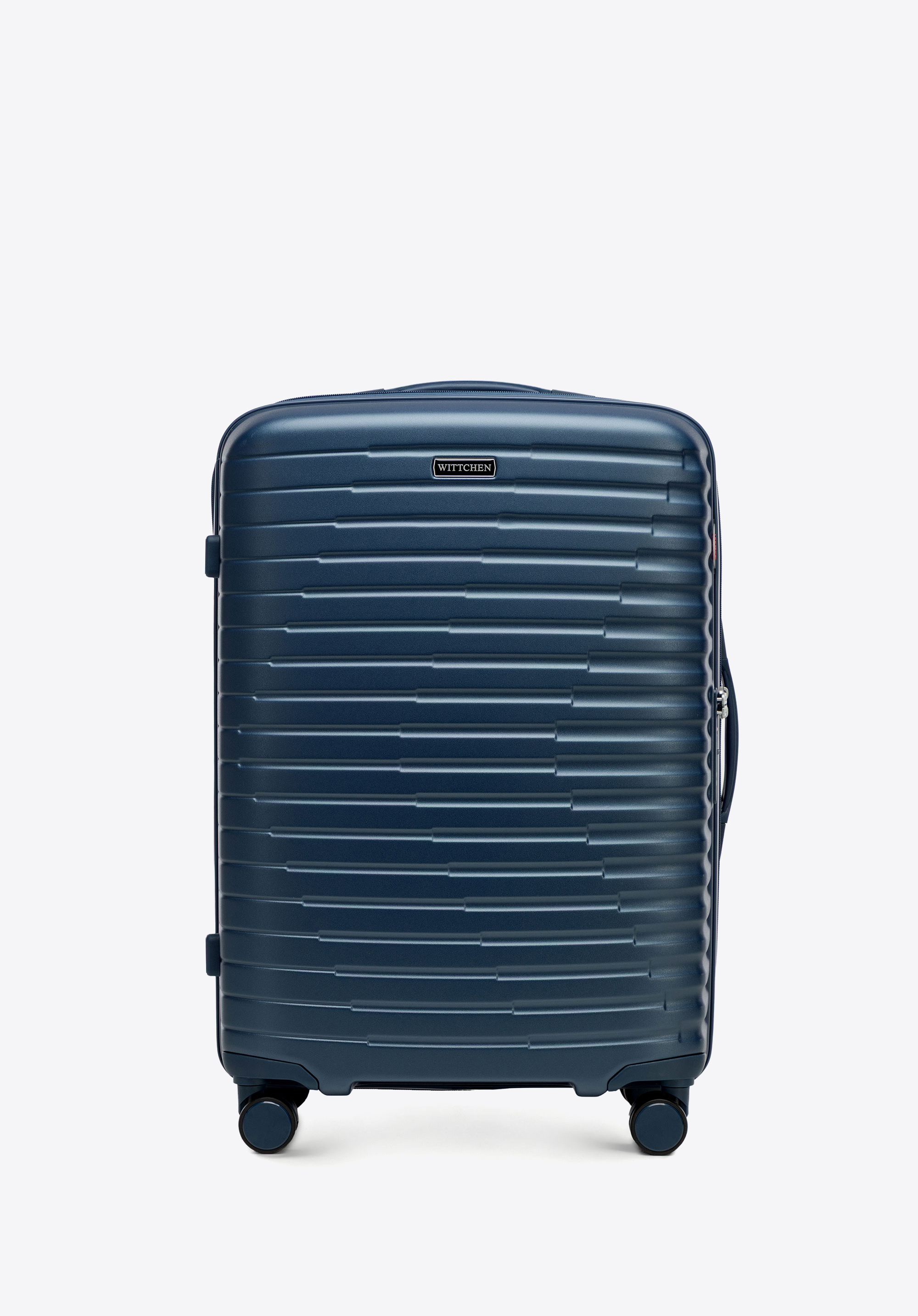 Valiză medie din policarbonat cu caneluri orizontale albastru-marin