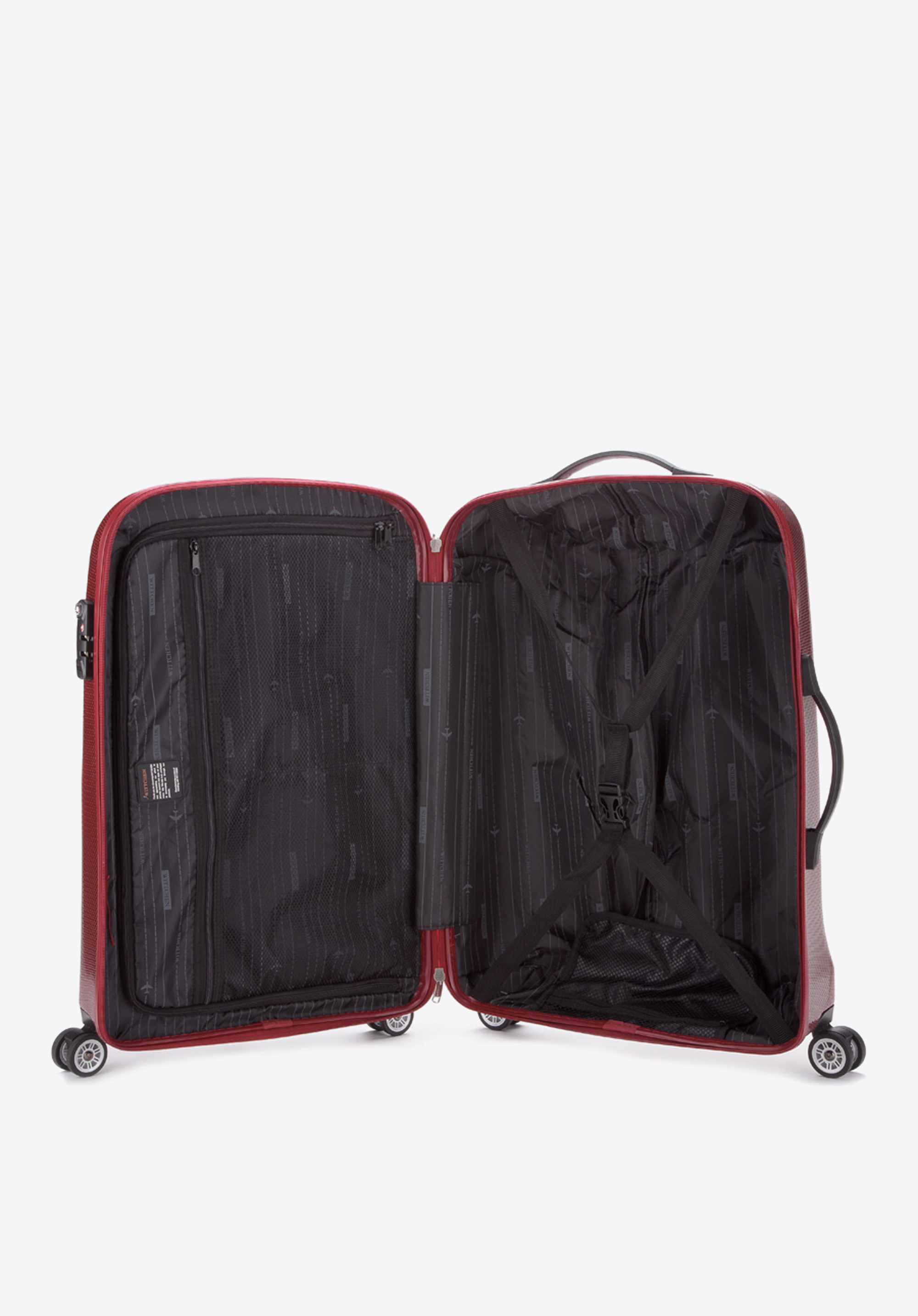 Troler realizat din material foarte rezistent - policarbonat În plus, este acoperit cu un strat special care crește rezistența la zgârieturi.Textura caracteristică și manopera de cea mai înaltă calitate garantează satisfacție la utilizare pentru mulți ani.