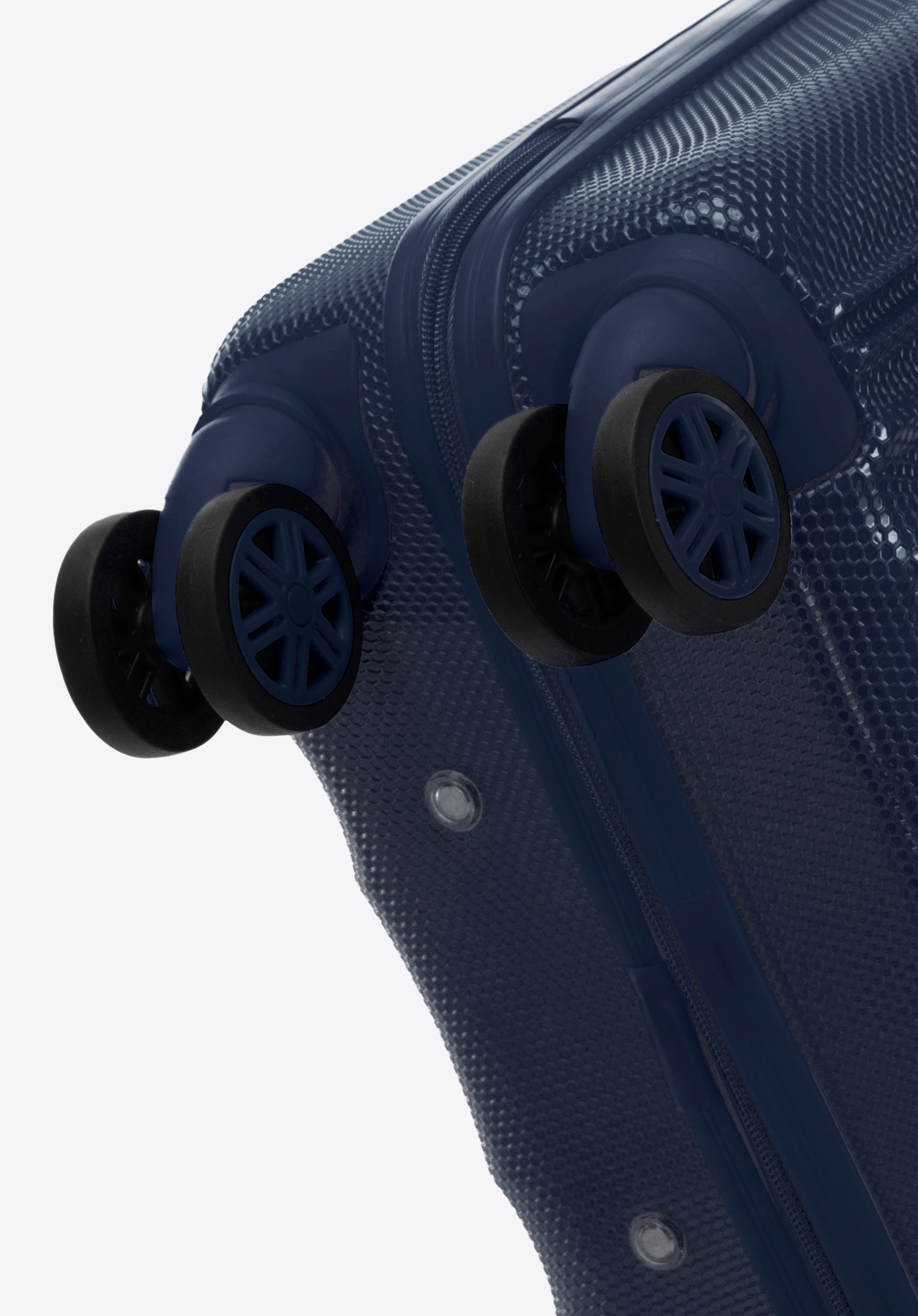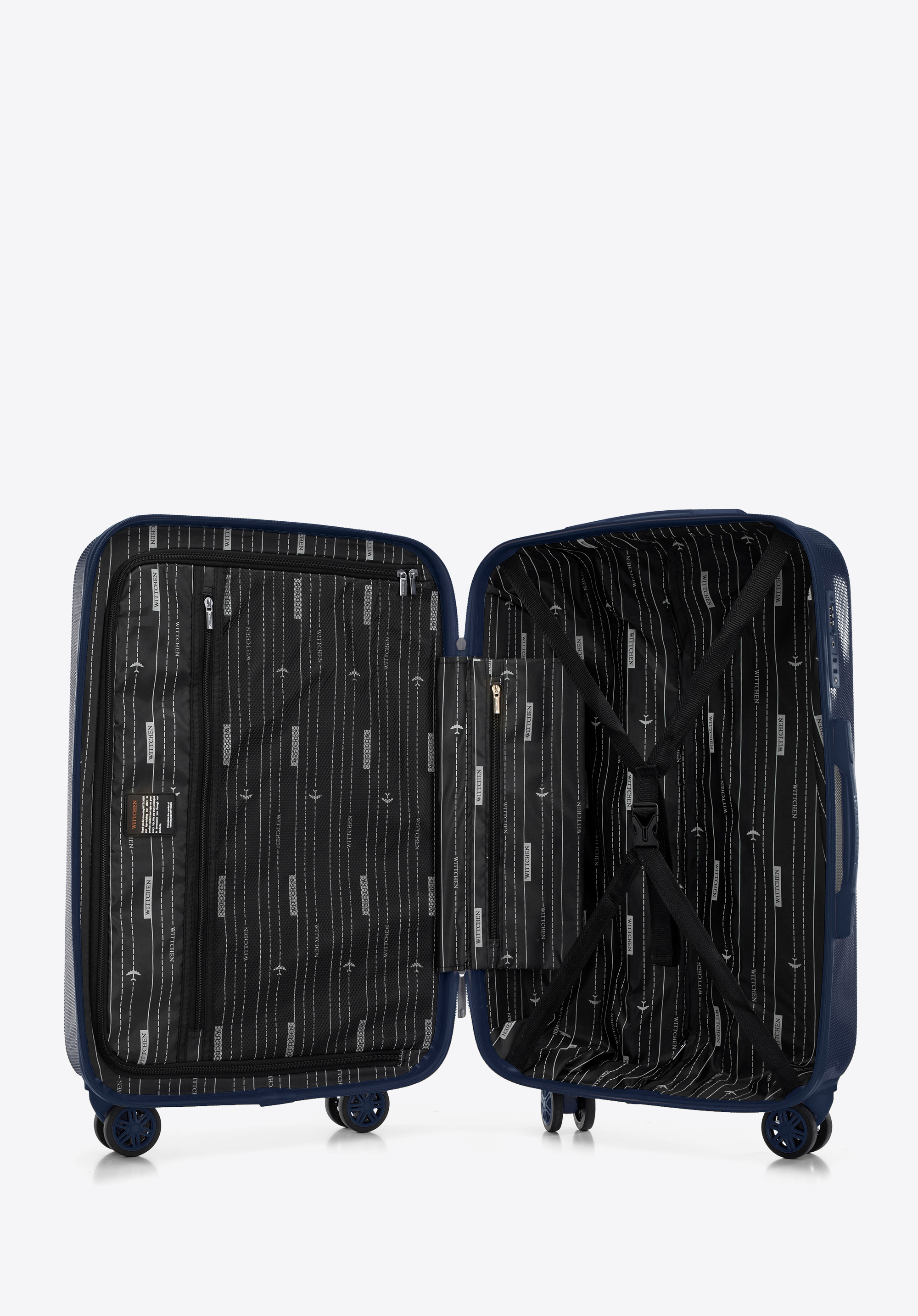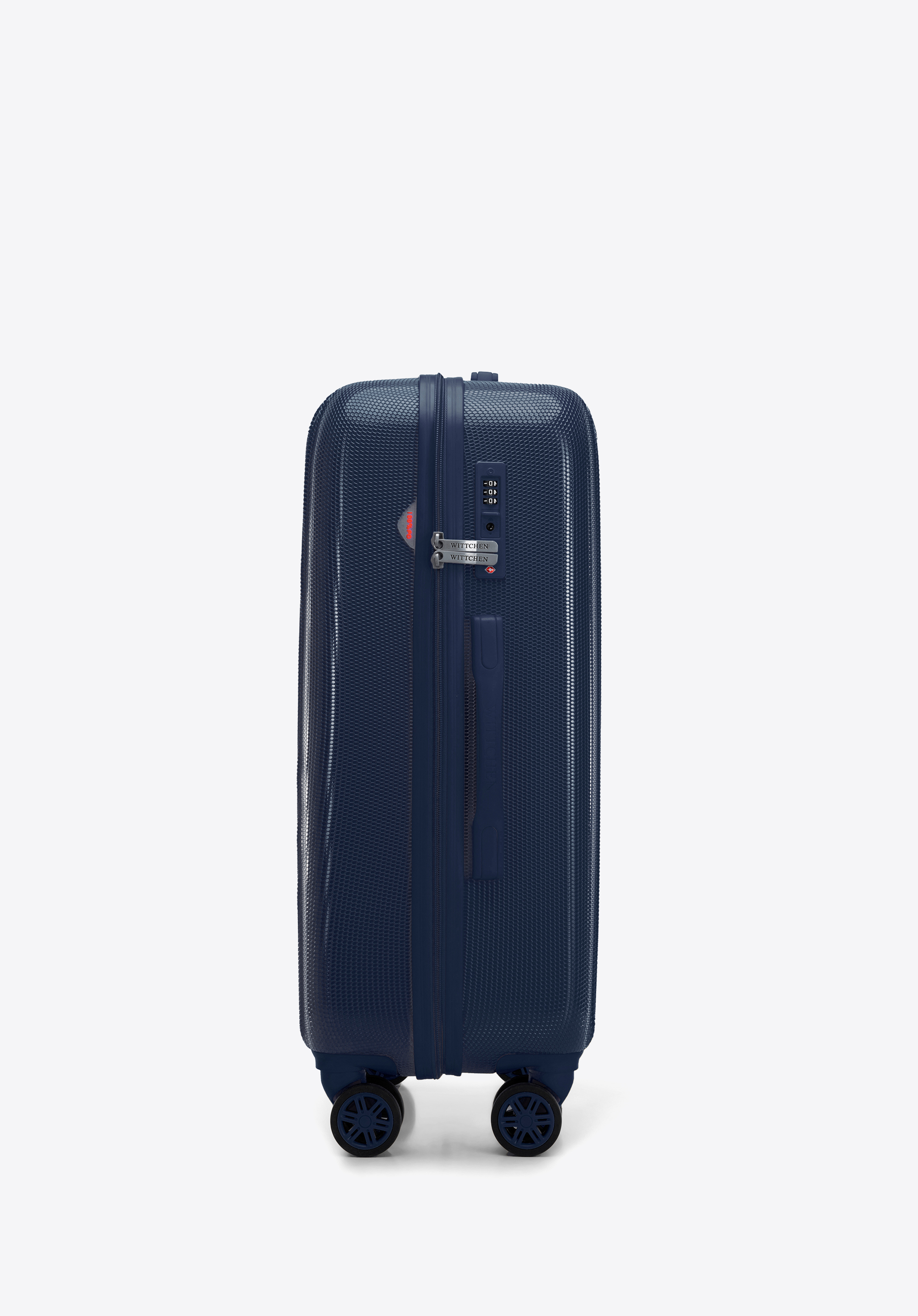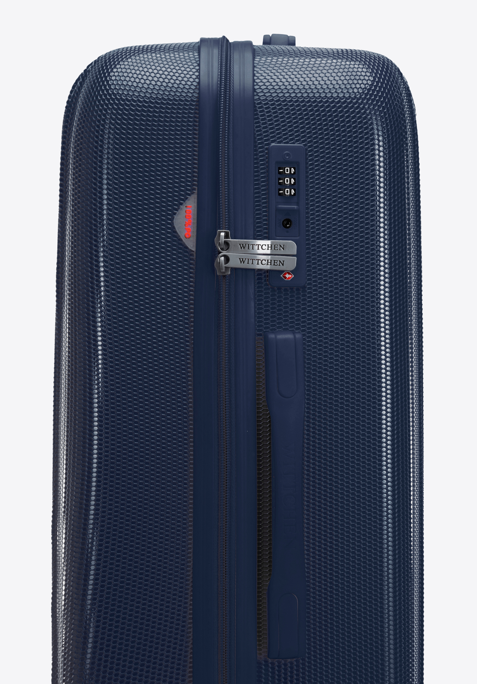 - Estetică: Cu reliefurile și textura verticală, valiza va ieși în evidență. În plus, am asortat cureaua cu fermoar cu carcasa în fiecare culoare a valizei, creând o unitate fără cusur.