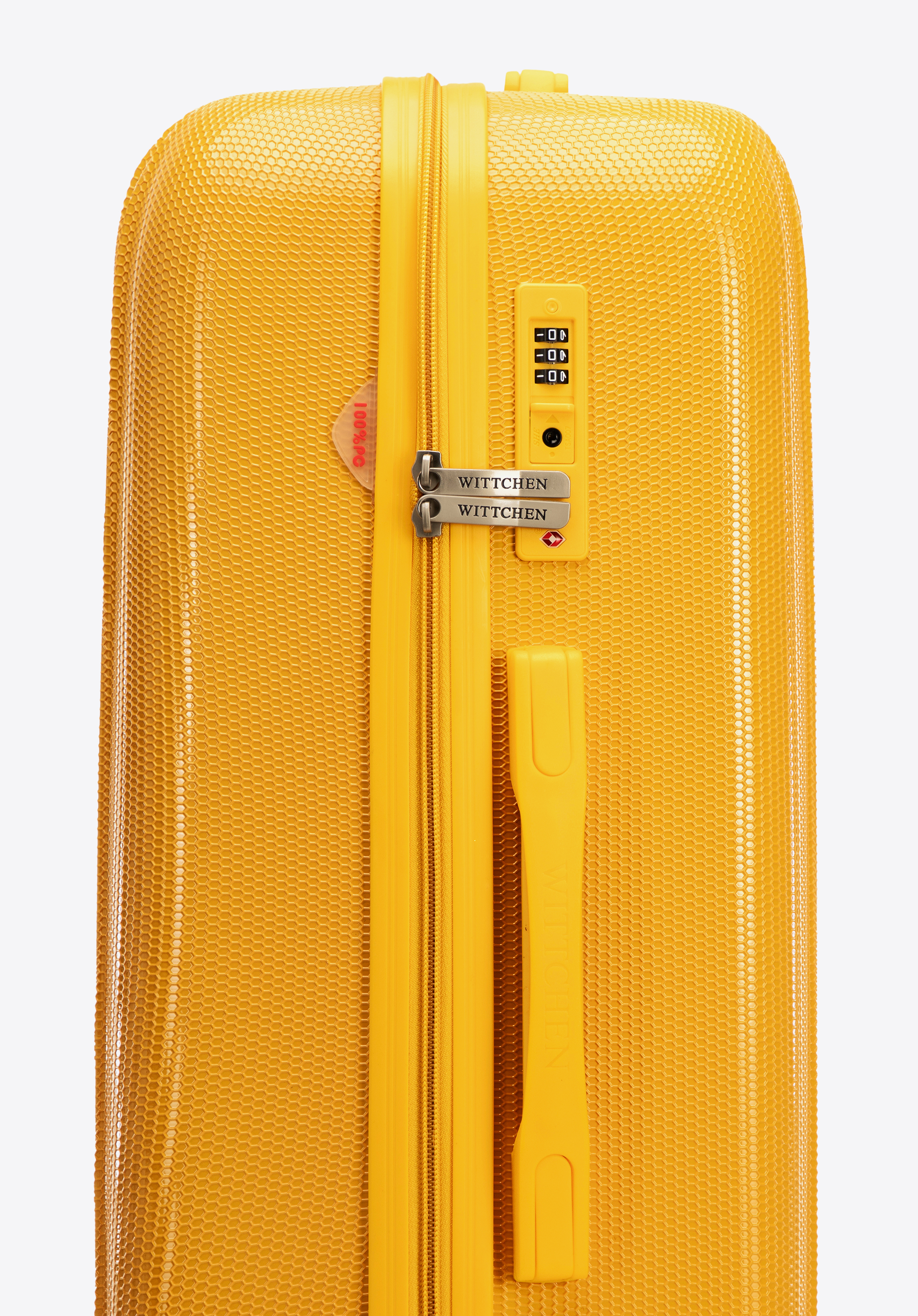 - Estetică: Cu reliefurile și textura verticală, valiza va ieși în evidență. În plus, am asortat cureaua cu fermoar cu carcasa în fiecare culoare a valizei, creând o unitate fără cusur.