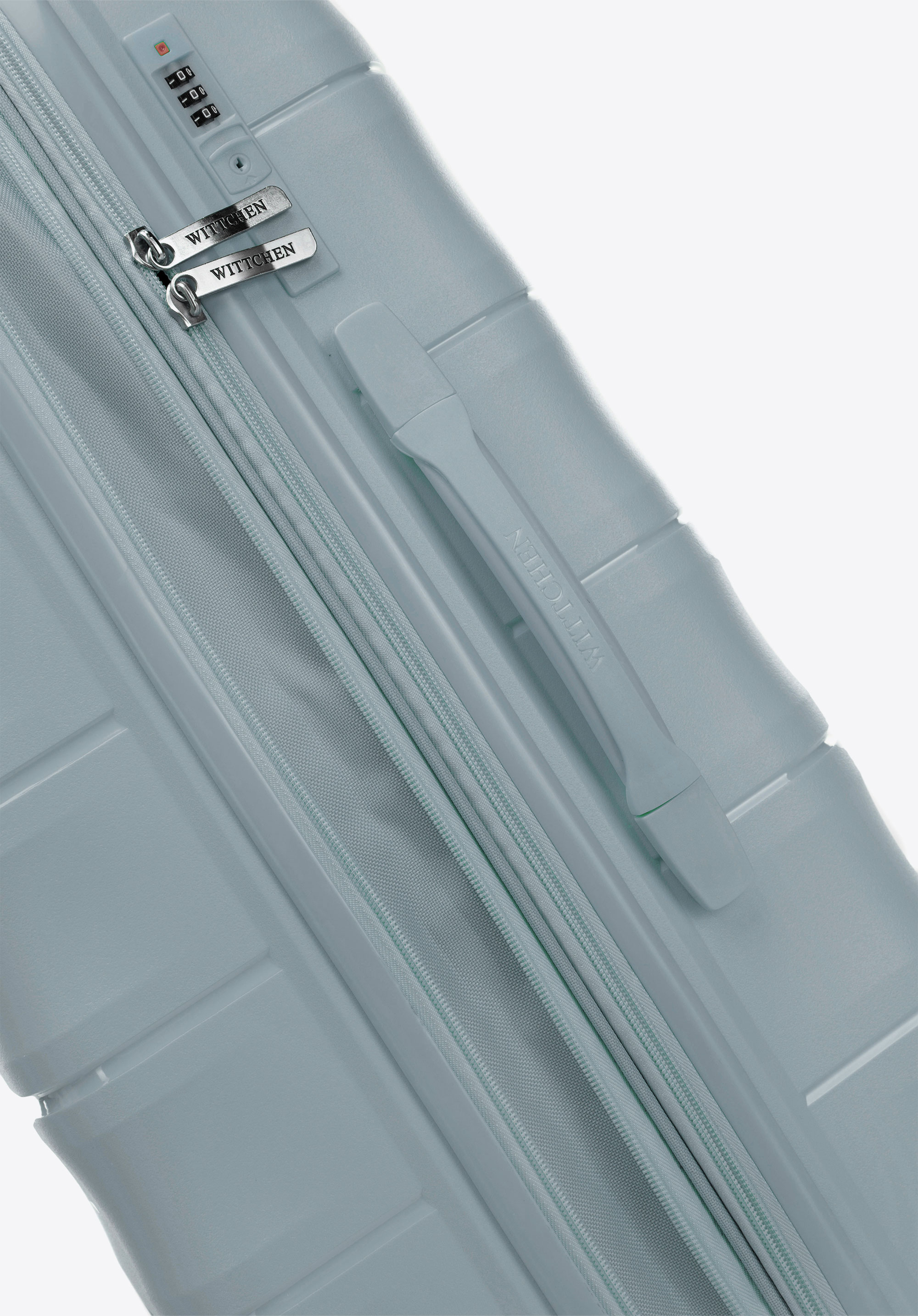 - Material: valiza este fabricată din polipropilenă , care este foarte durabilă și rezistentă la deteriorare.