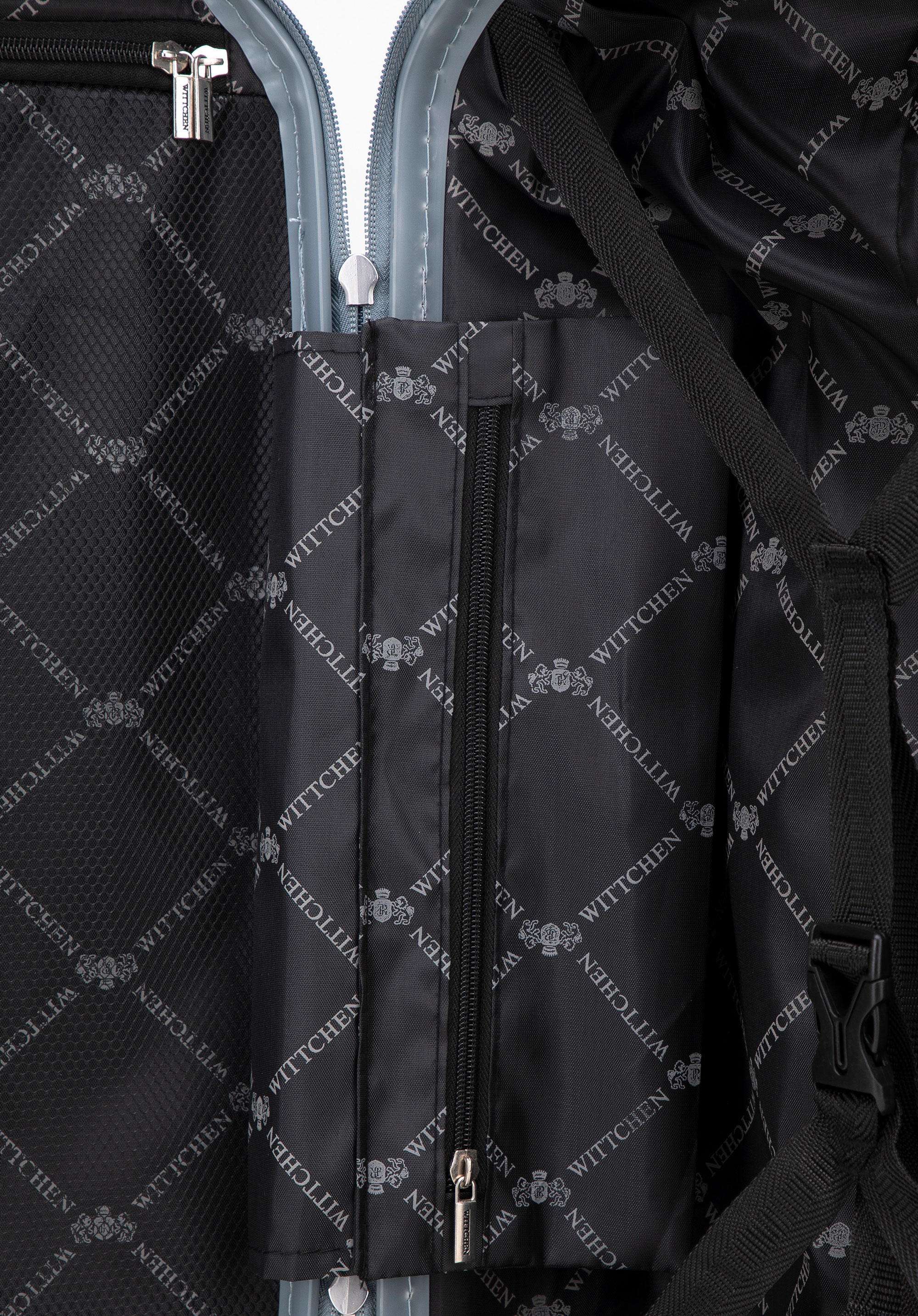 - Interior: Valisa este impartita in doua compartimente . Unul cu fermoar, celălalt asigurat cu bretele reglabile.