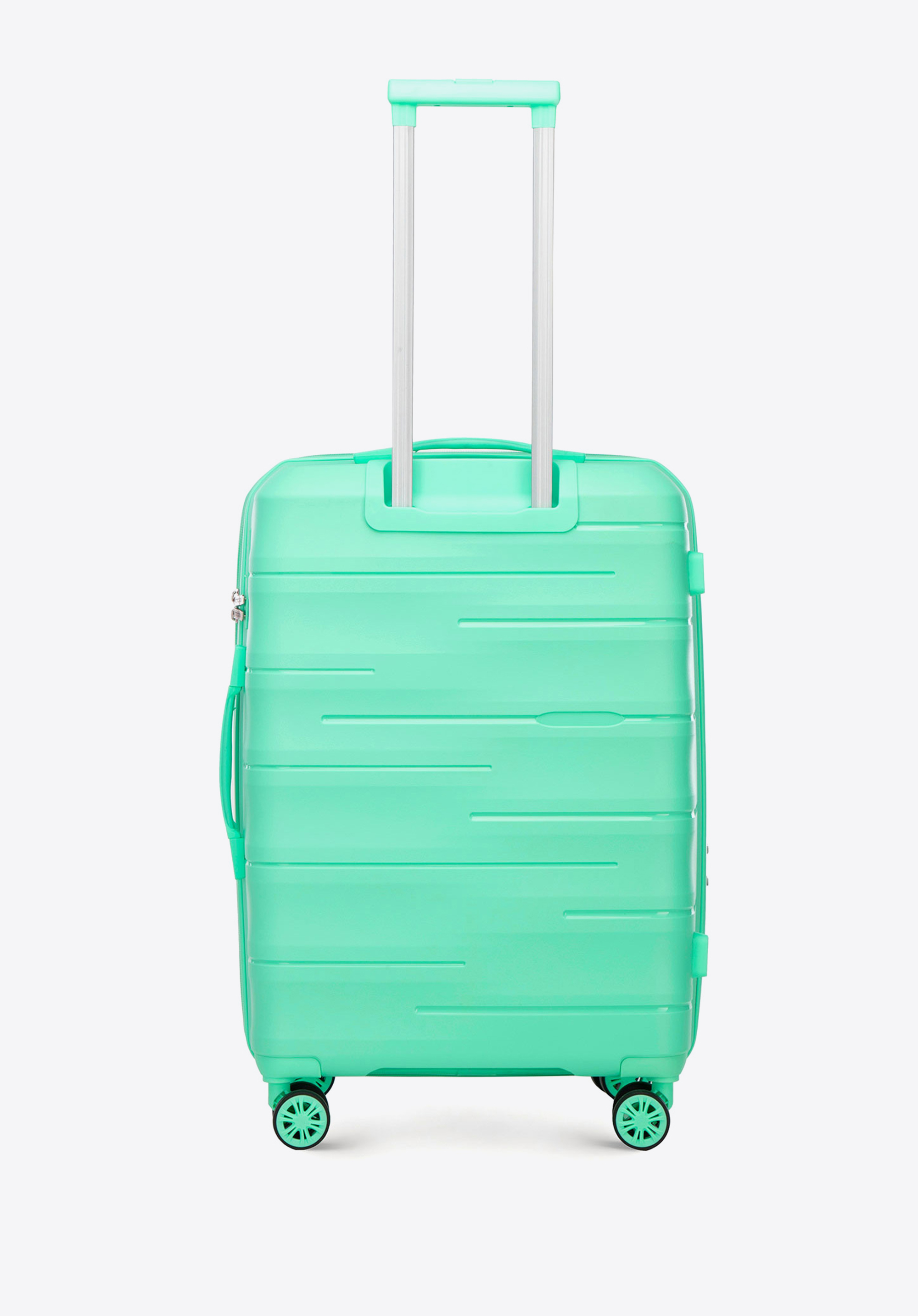 - Material: valiza este fabricată din polipropilenă , care este foarte durabilă și rezistentă la deteriorare.