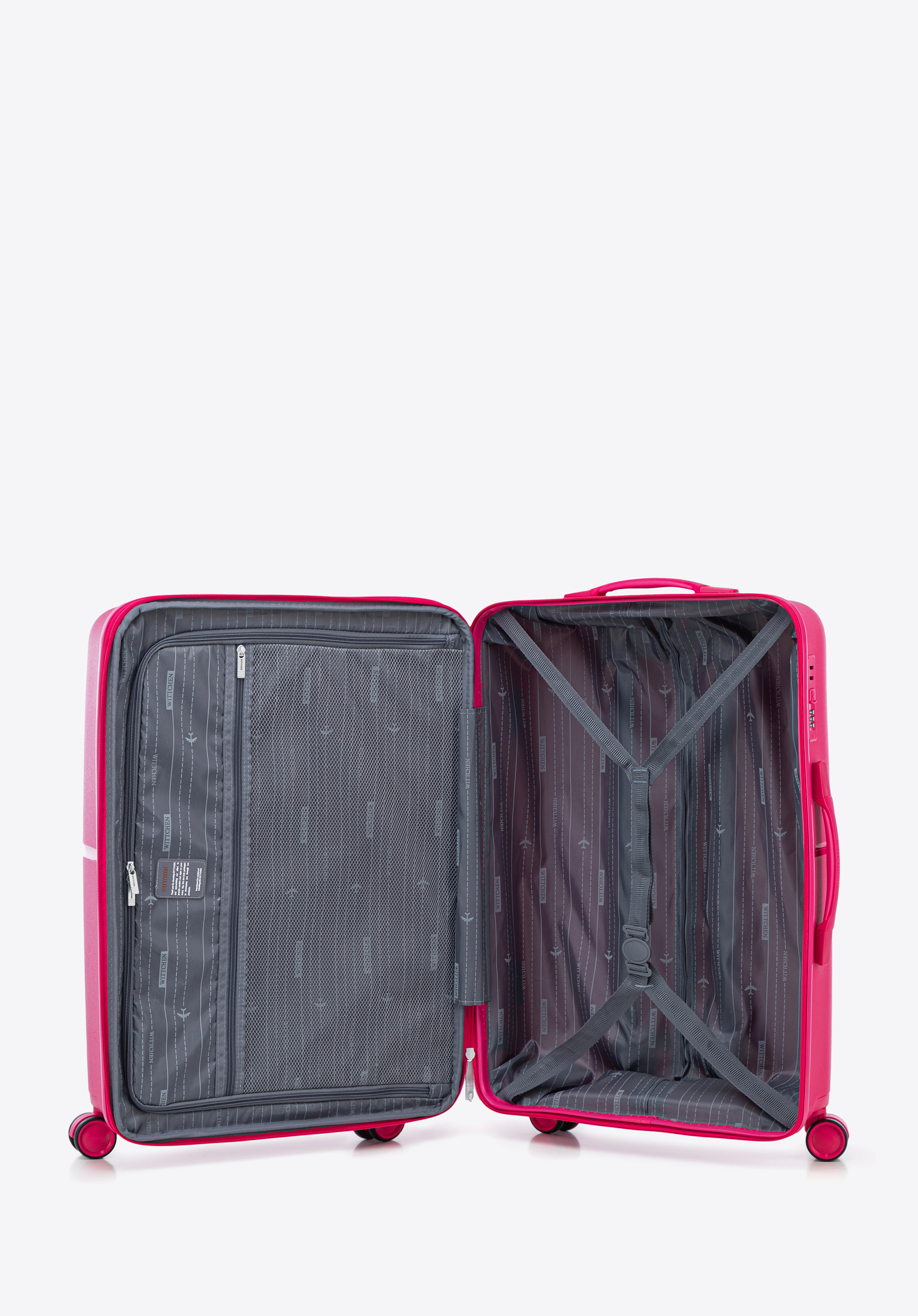 Această valiză medie din colecția Circle Line este alegerea perfectă pentru cei care au nevoie de mai mult spațiu fără a compromite designul modern sau durabilitatea. Fabricată din polipropilenă flexibilă și rezistentă la șocuri, se comportă excelent în deplasare. Construcția sa ușoară și detaliile elegante o fac un companion de călătorie practic și elegant.