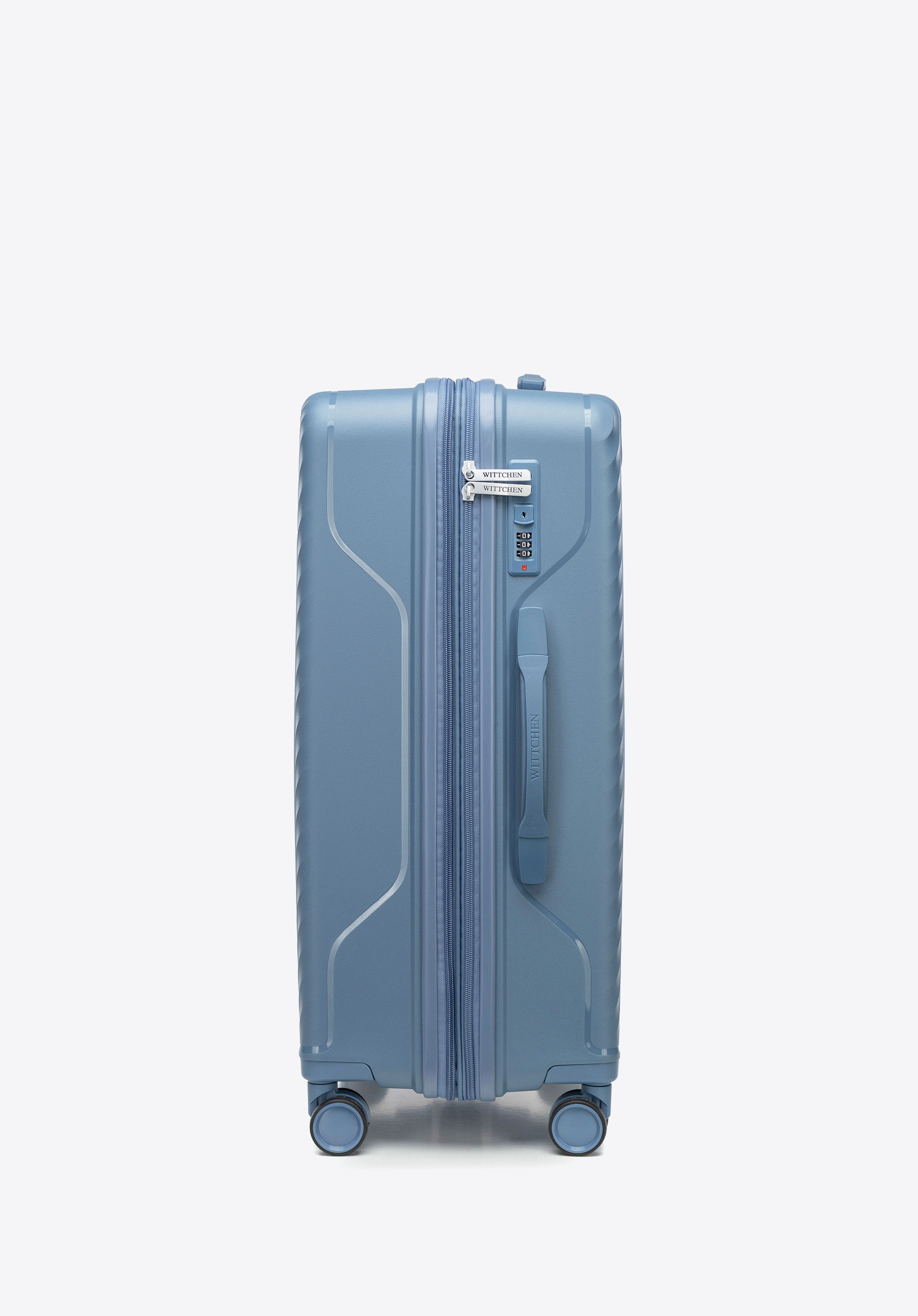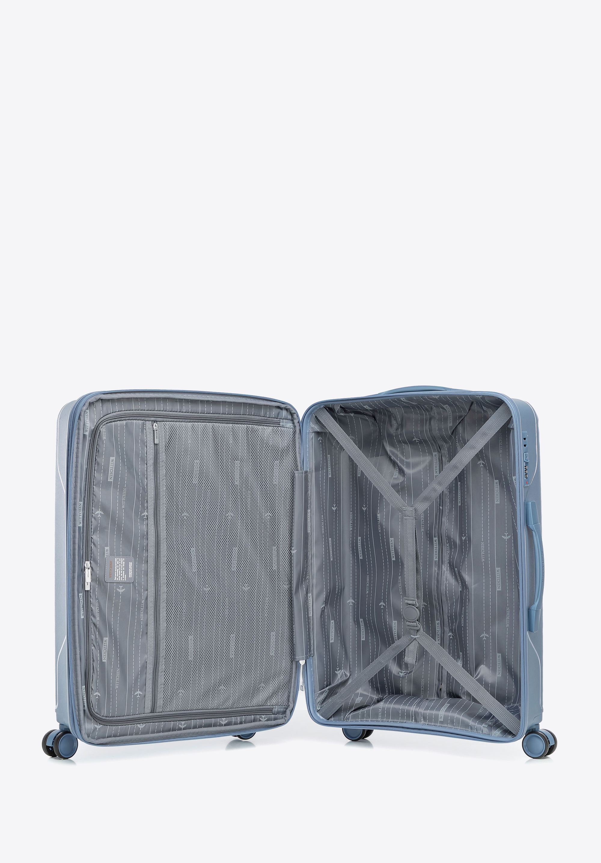 Valiză medie din polipropilenă cu model diagonal Culoare: albastru