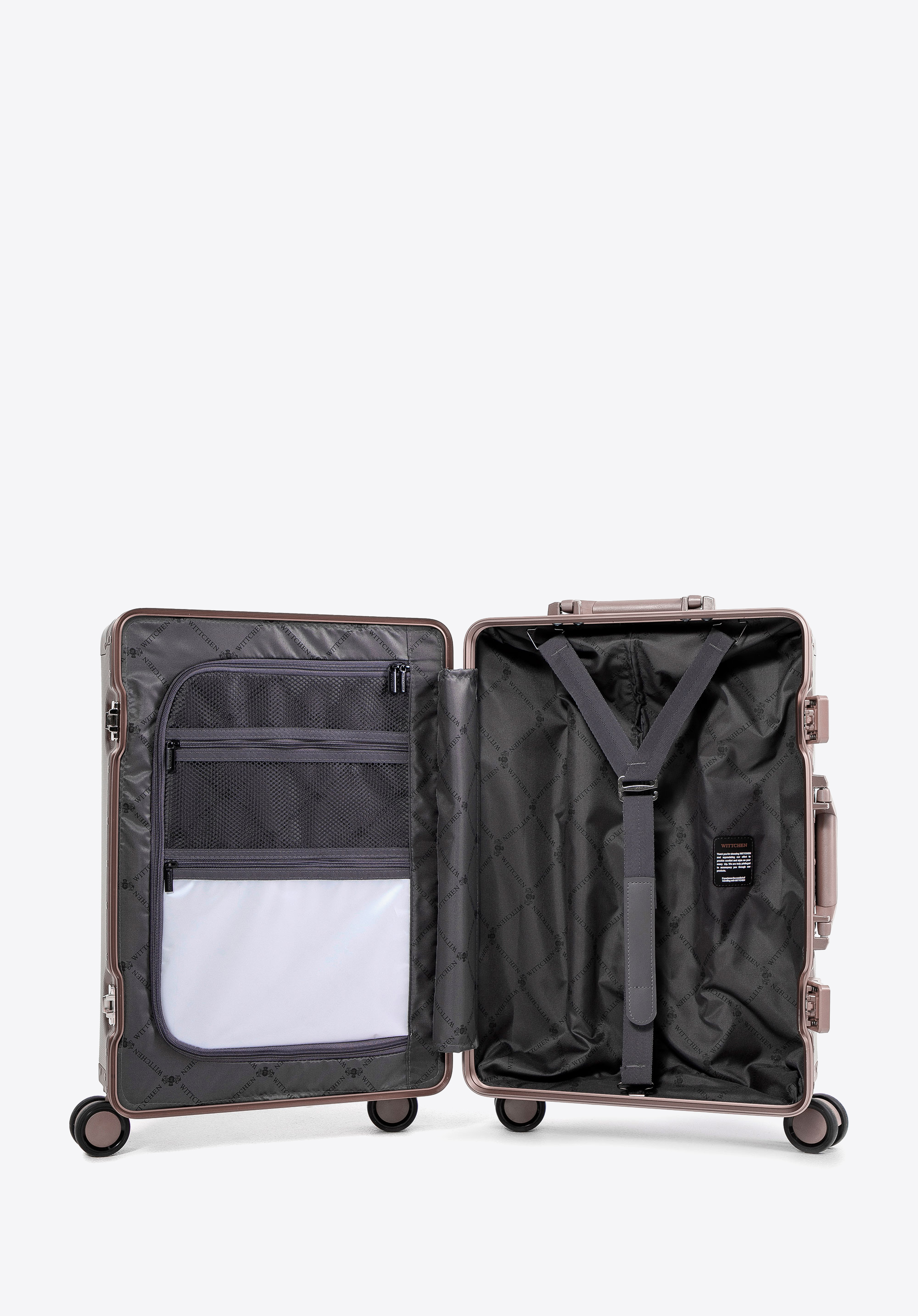 Descoperiți valiza mică exclusivistă WITTCHEN , realizată din aluminiu 100% . Întăriturile de colț vă protejează bunurile fără efort, în timp ce construcția robustă asigură o protecție excelentă a bagajelor. Patru roți duble și un mâner telescopic din aluminiu asigură manevrabilitate fără efort și o experiență de călătorie elegantă. Alegeți o valiză care îmbină eleganța cu funcționalitatea – perfectă pentru orice călătorie.