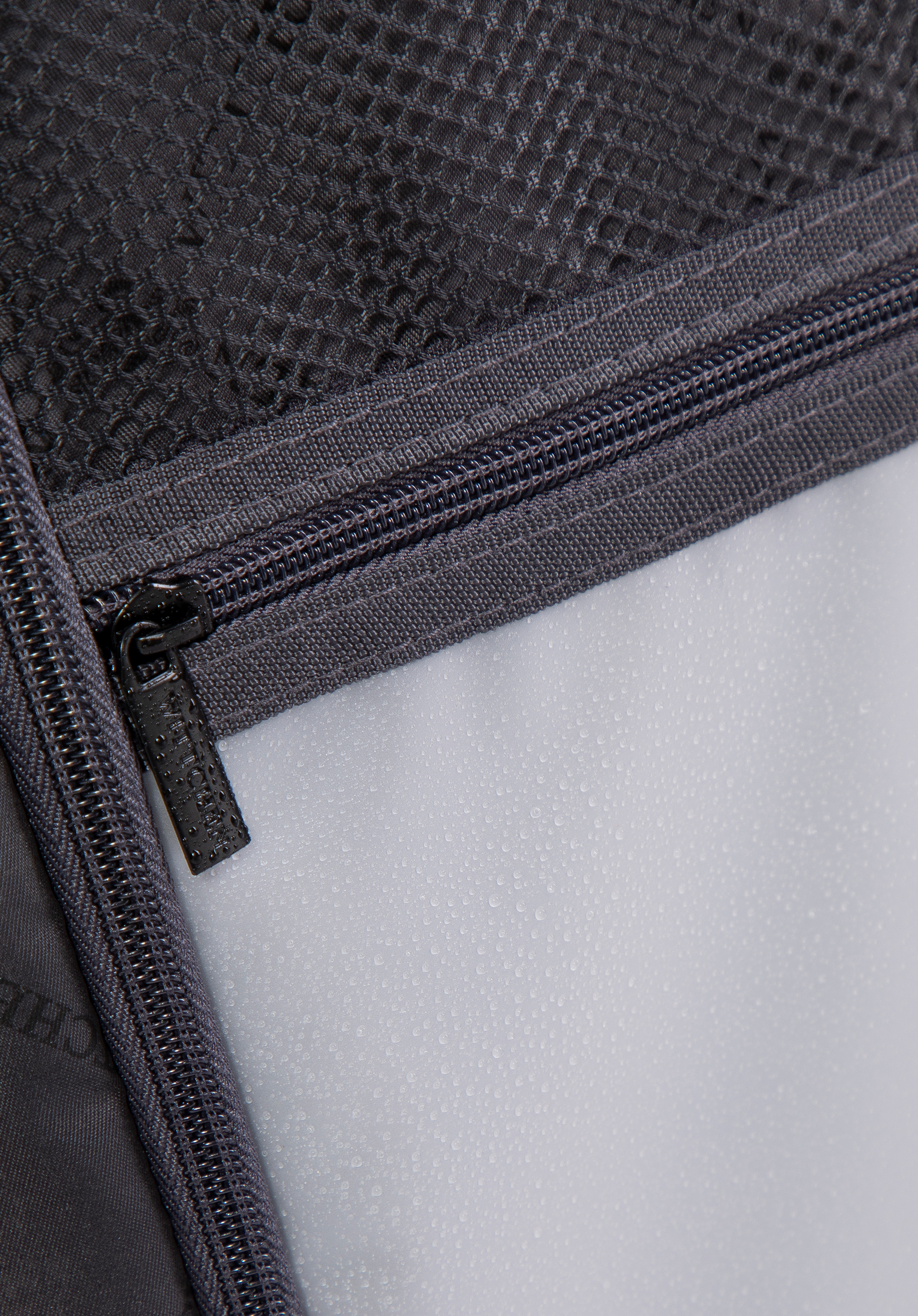 - Interior practic: Un compartiment cu fermoar cu un buzunar din plasă și un buzunar PVC impermeabil pentru lichide. Celălalt compartiment are curele reglabile pentru a păstra hainele în siguranță.