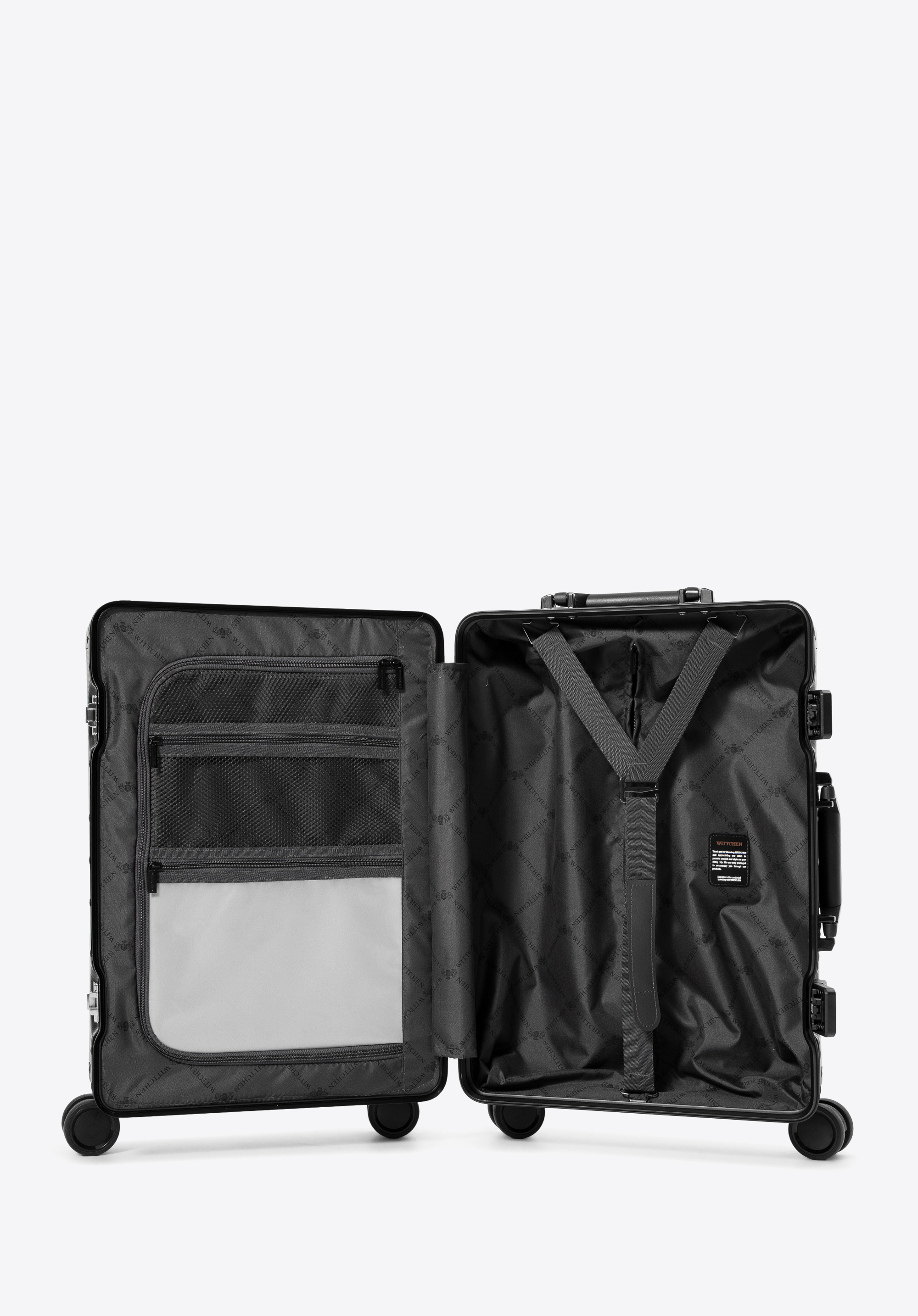 Descoperiți valiza mică exclusivistă WITTCHEN , realizată din aluminiu 100% . Întăriturile de colț vă protejează bunurile fără efort, în timp ce construcția robustă asigură o protecție excelentă a bagajelor. Patru roți duble și un mâner telescopic din aluminiu asigură manevrabilitate fără efort și o experiență de călătorie elegantă. Alegeți o valiză care îmbină eleganța cu funcționalitatea – perfectă pentru orice călătorie.