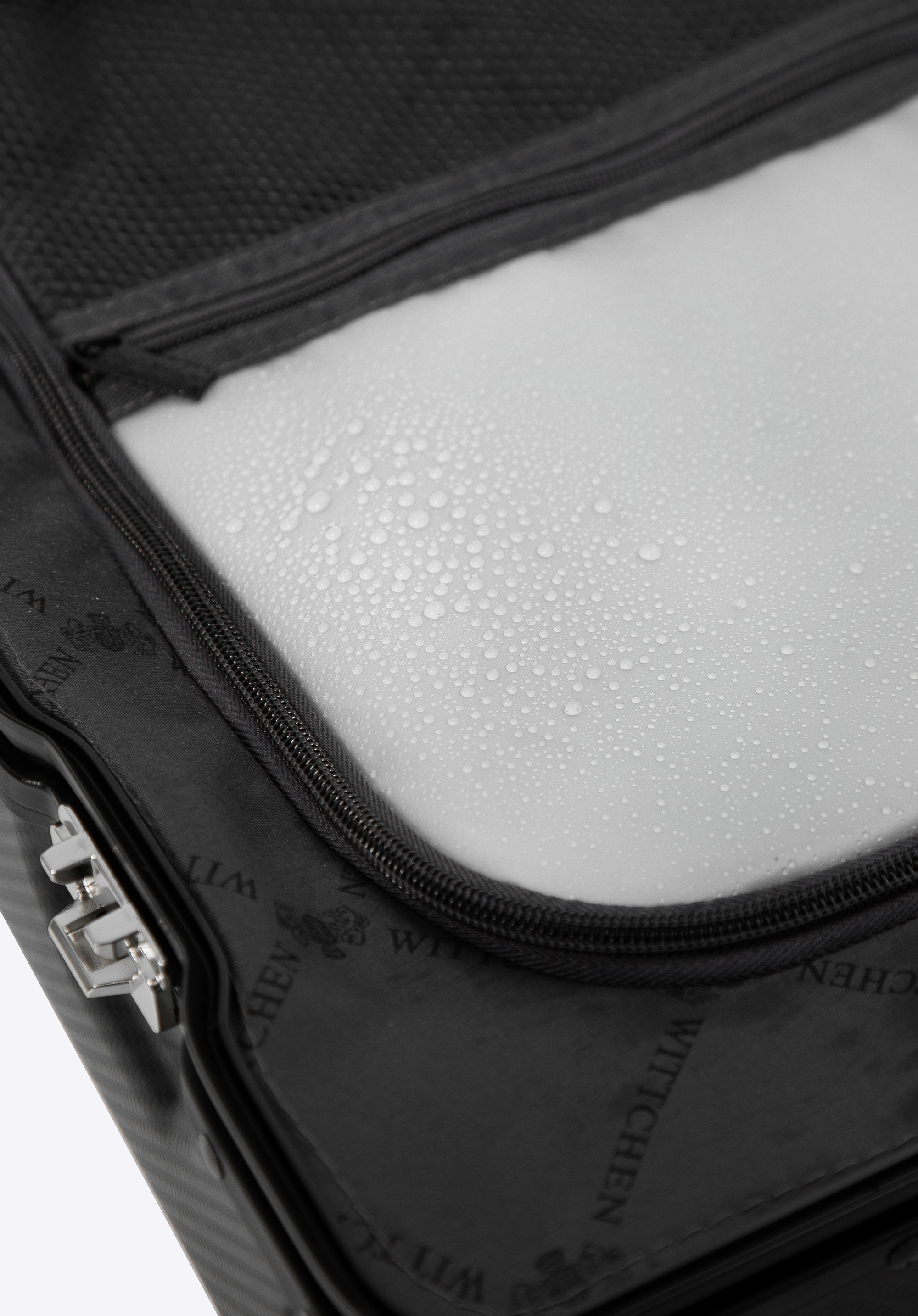 - Stabilitate: Patru picioare laterale permit valizei să stea în siguranță pe o parte.