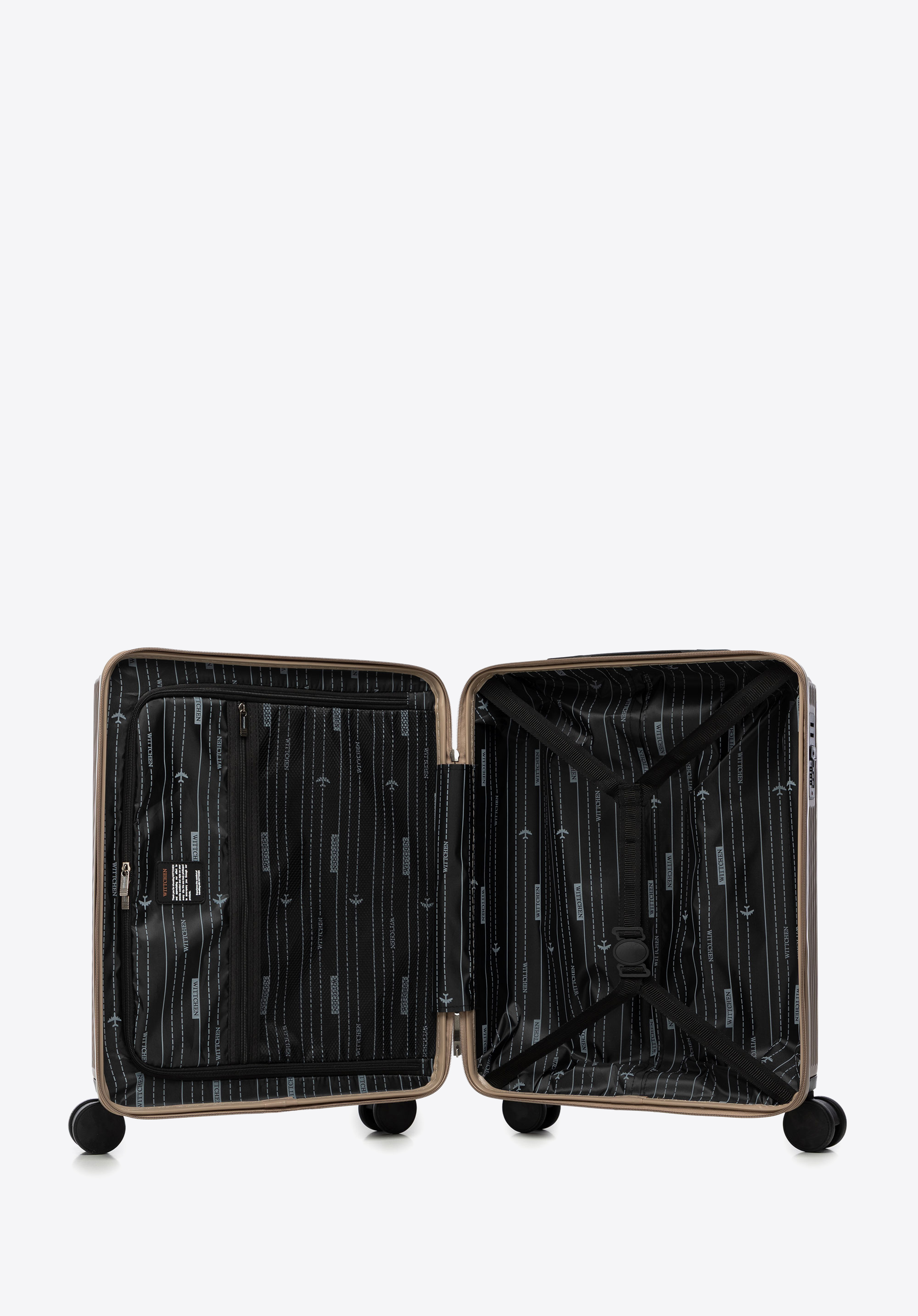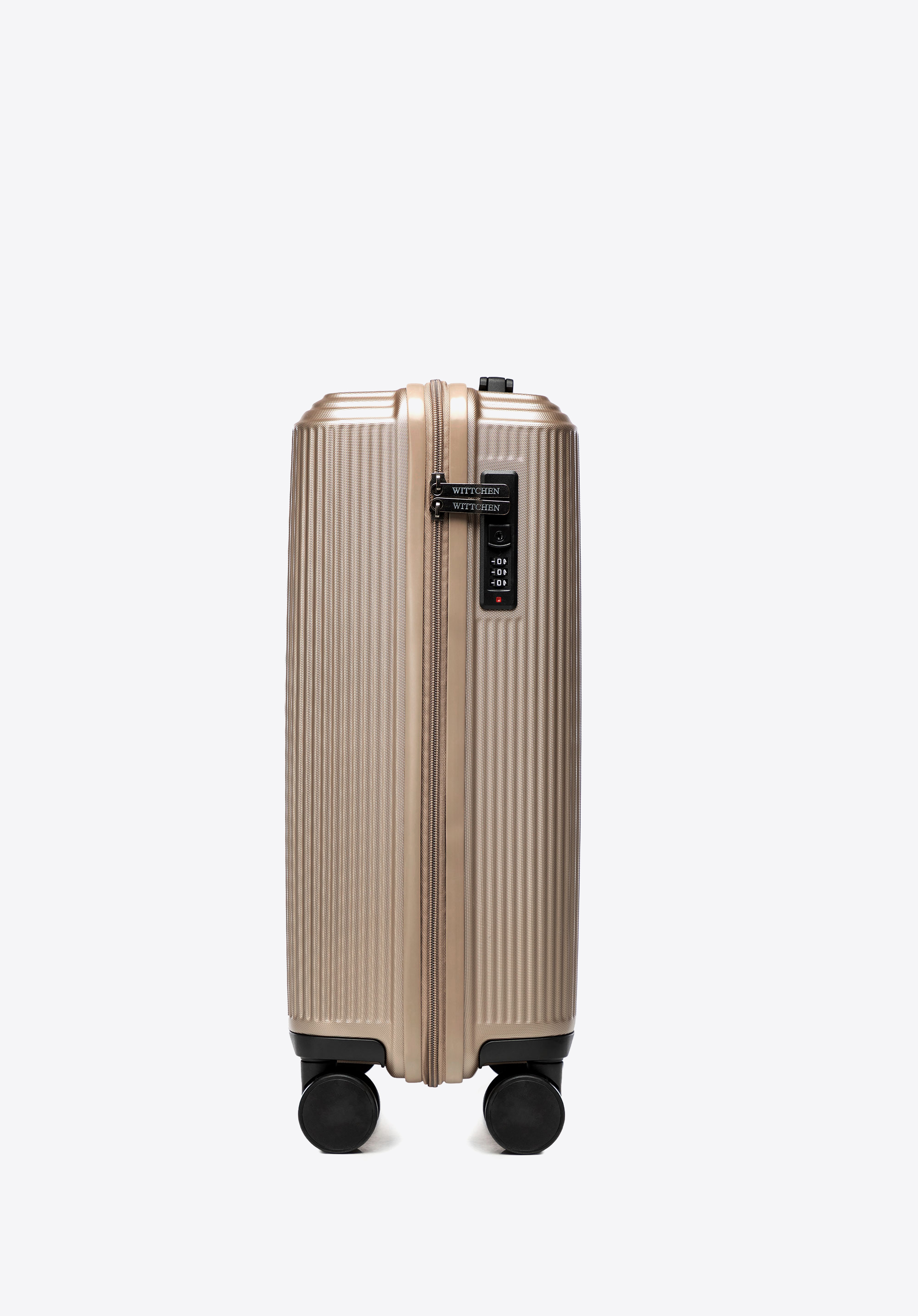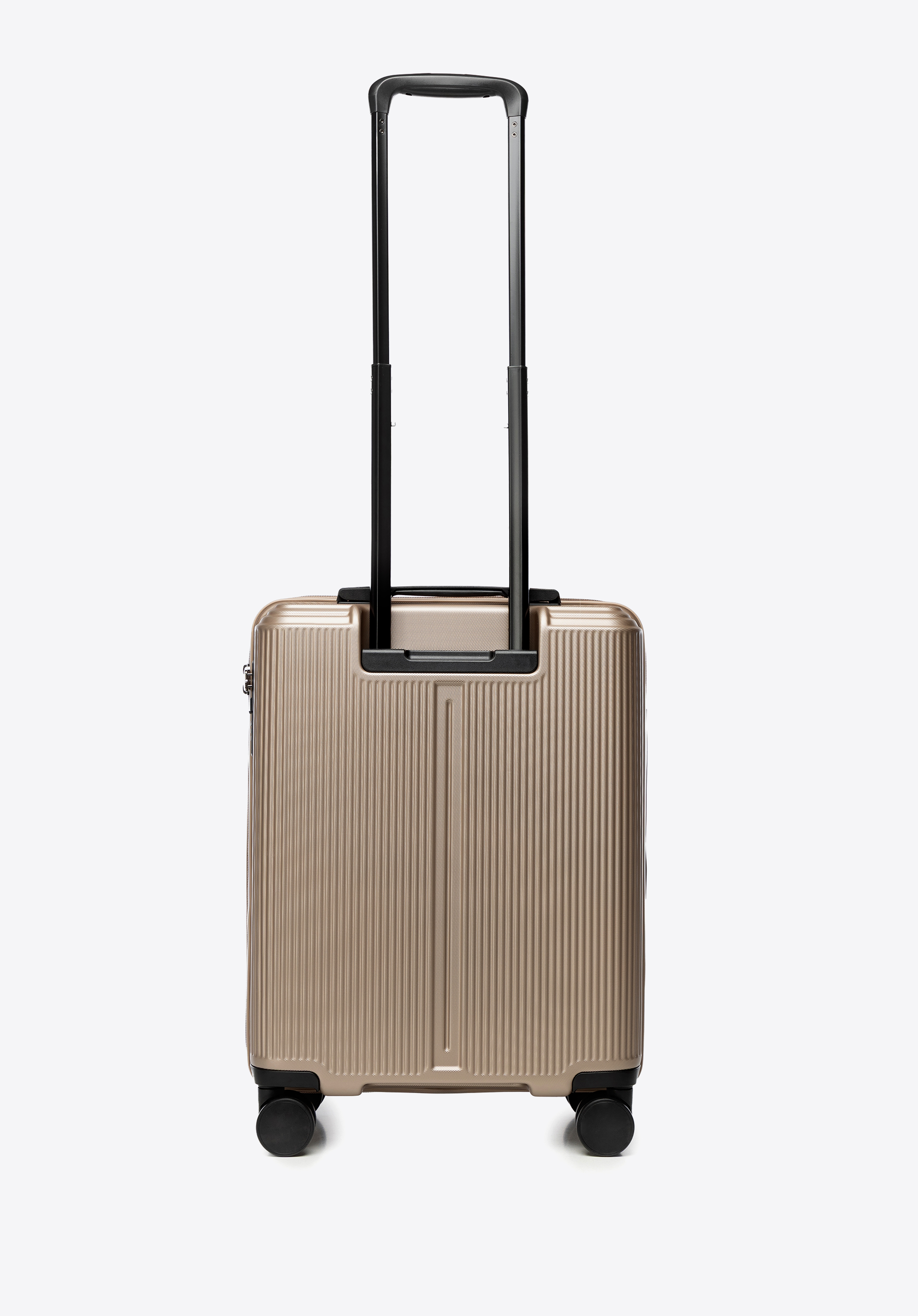 Valiza noastră de cabină din colecția Stripes Line combină designul contemporan cu funcționalitatea de zi cu zi. Suprafața este îmbogățită cu caneluri verticale elegante, în timp ce carcasa din ABS oferă o durabilitate excelentă pentru călătoriile tale. Patru roți duble cu rotație la 360° și un mâner telescopic cu blocare și prindere confortabilă asigură o manevrare lină oriunde ai merge.