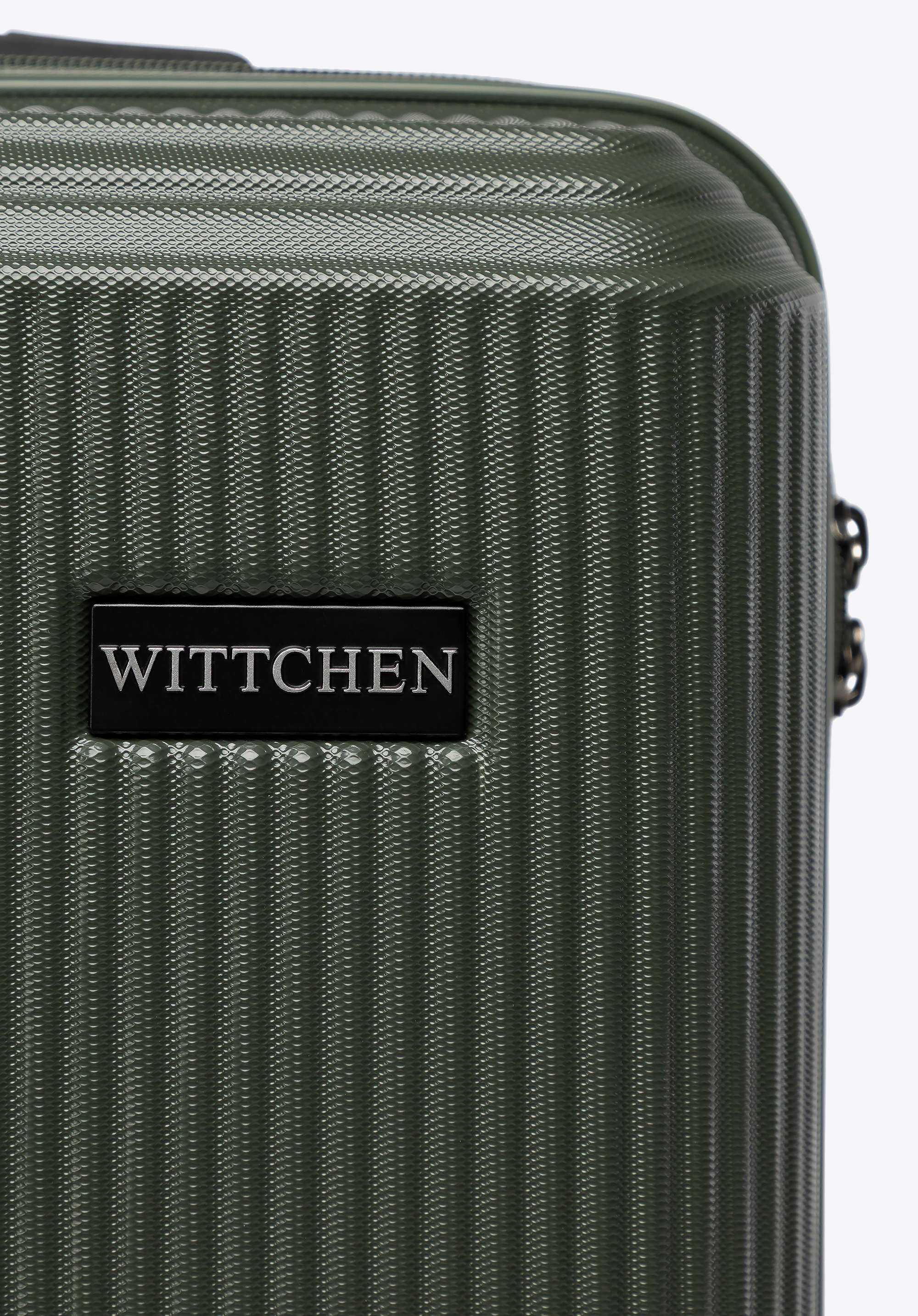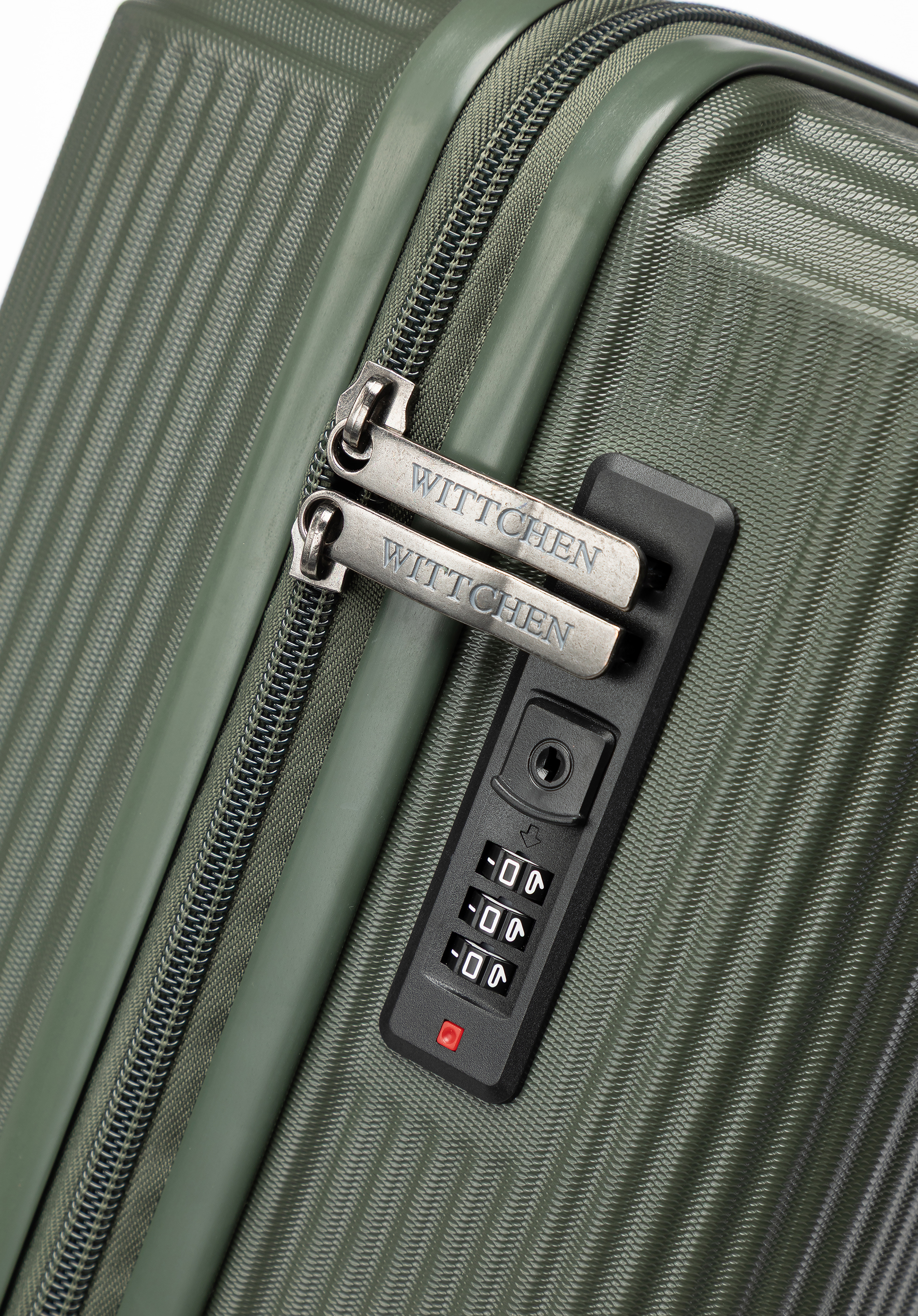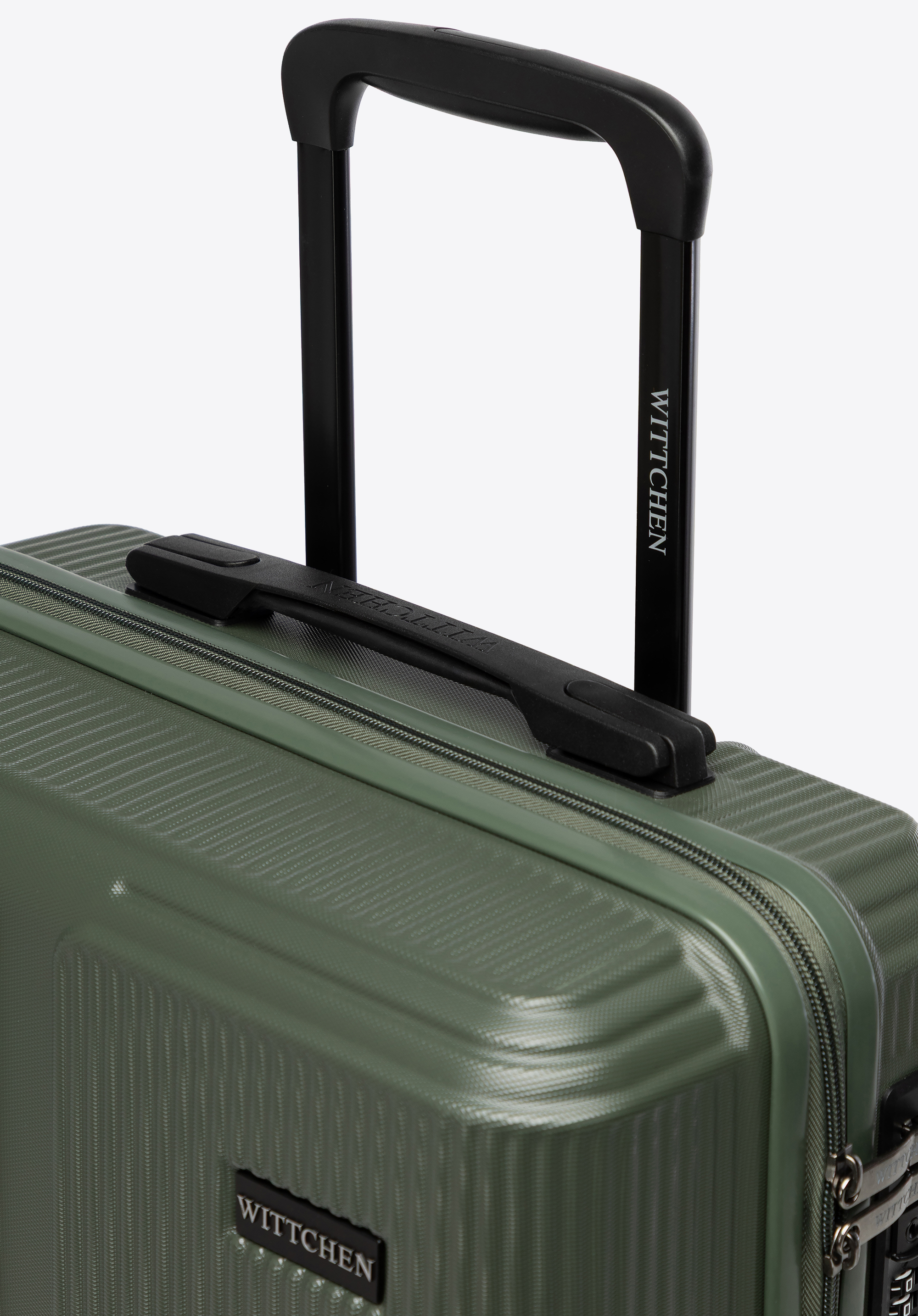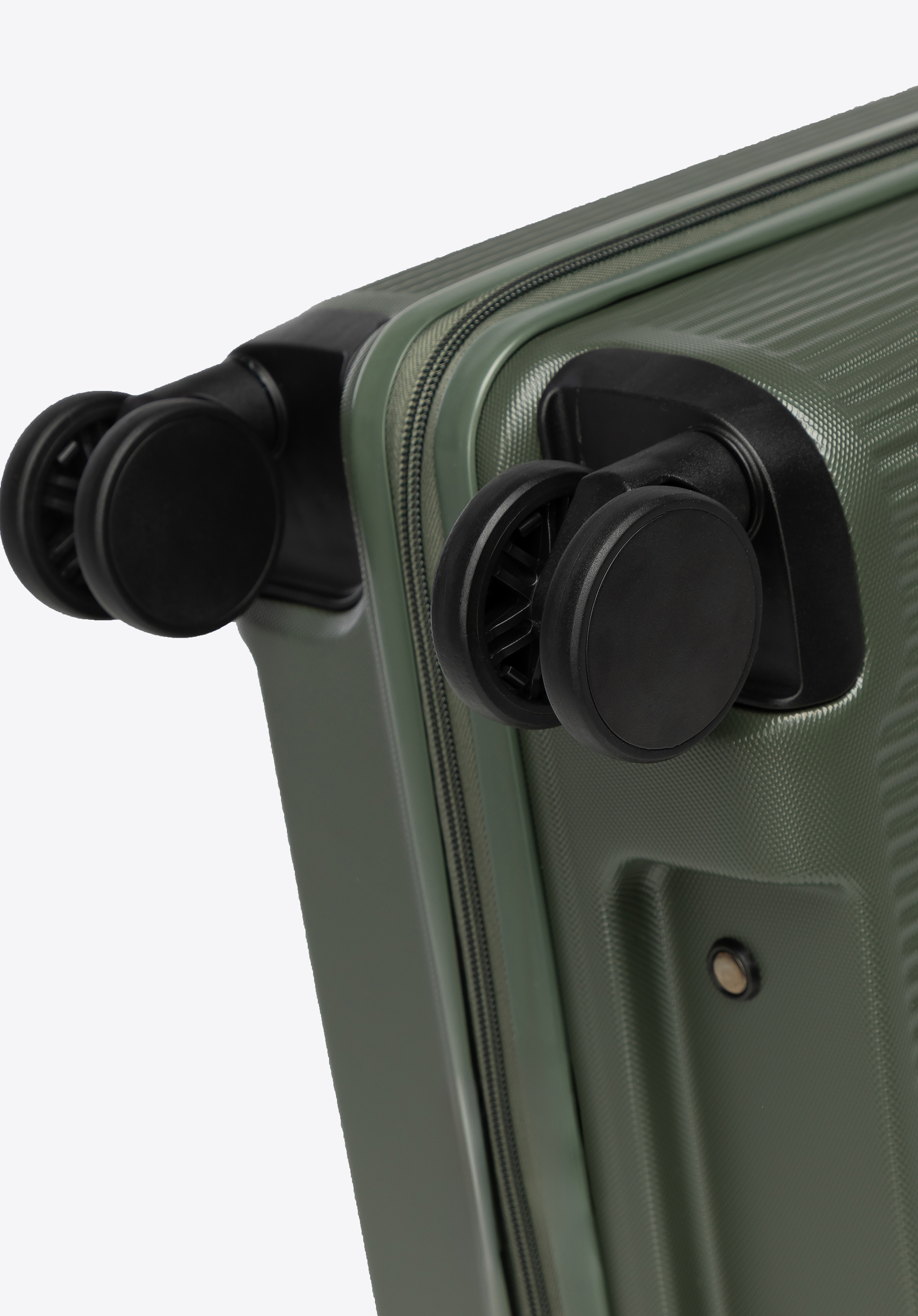 - Design : Imprimarea verticală contemporană în relief pe carcasă și detaliile negre conferă valizei un aspect elegant și atemporal.