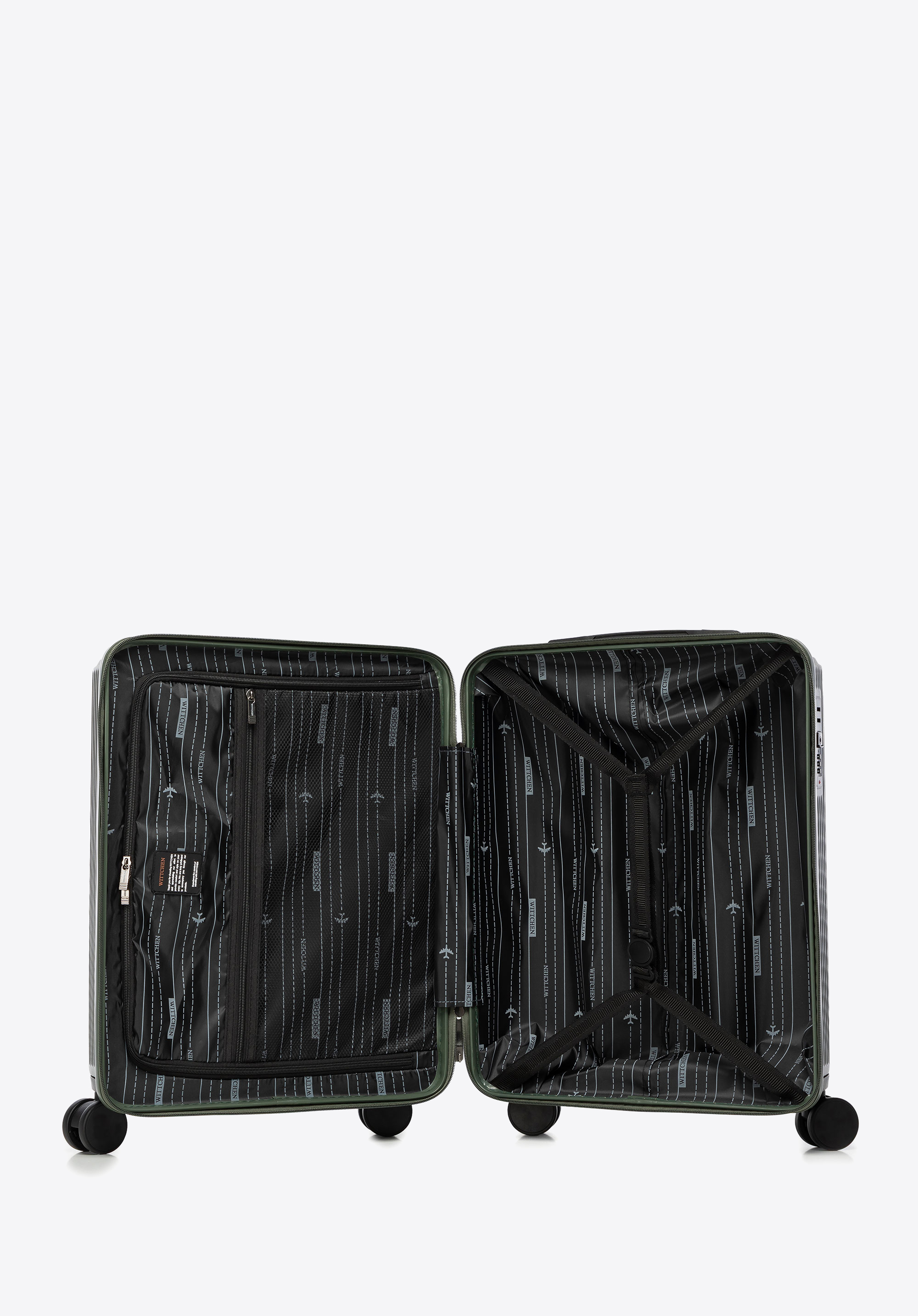 Valiza noastră de cabină din colecția Stripes Line combină designul contemporan cu funcționalitatea de zi cu zi. Suprafața este îmbogățită cu caneluri verticale elegante, în timp ce carcasa din ABS oferă o durabilitate excelentă pentru călătoriile tale. Patru roți duble cu rotație la 360° și un mâner telescopic cu blocare și prindere confortabilă asigură o manevrare lină oriunde ai merge.