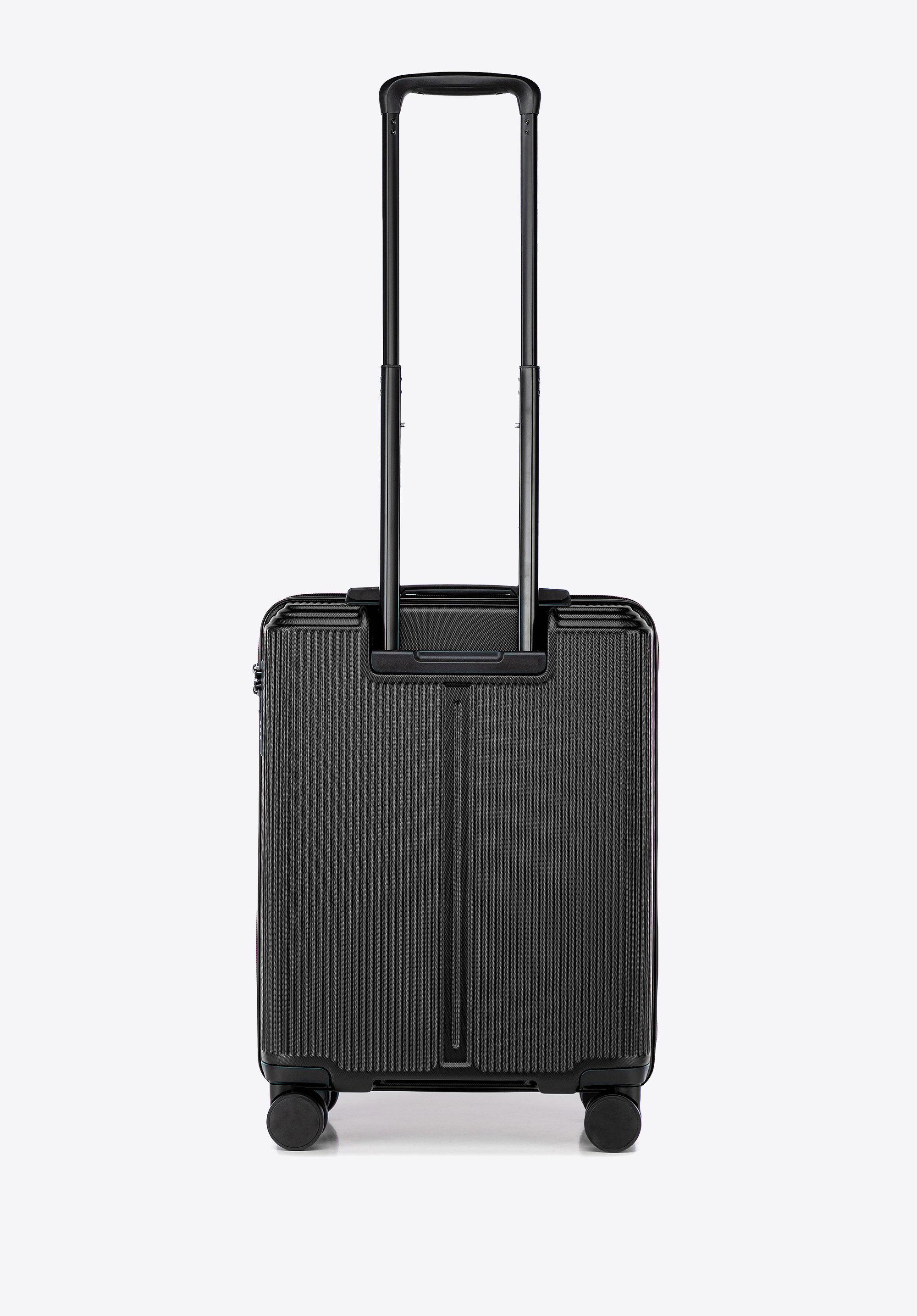 Valiza noastră de cabină din colecția Stripes Line combină designul contemporan cu funcționalitatea de zi cu zi. Suprafața este îmbogățită cu caneluri verticale elegante, în timp ce carcasa din ABS oferă o durabilitate excelentă pentru călătoriile tale. Patru roți duble cu rotație la 360° și un mâner telescopic cu blocare și prindere confortabilă asigură o manevrare lină oriunde ai merge.