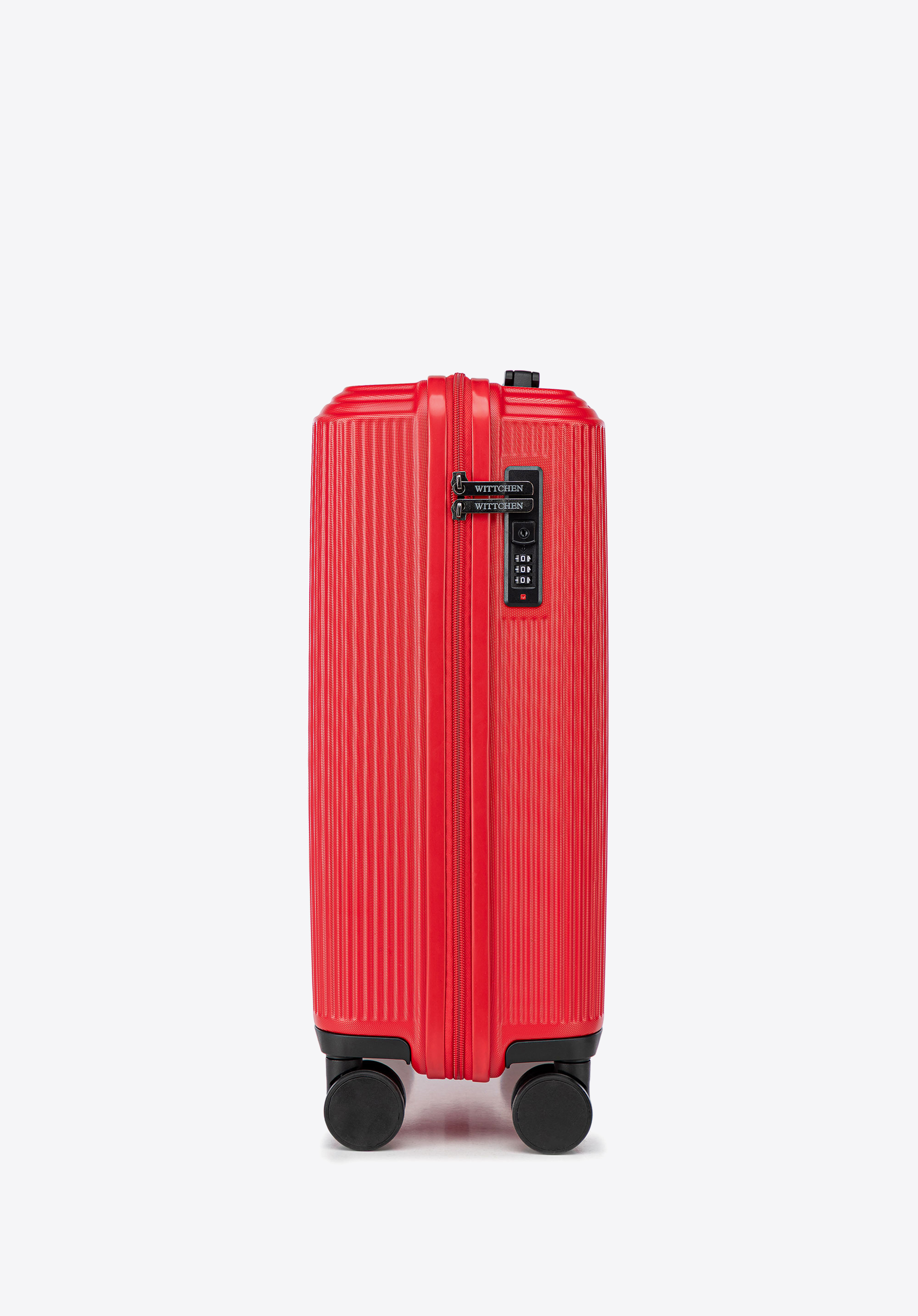 Valiza noastră de cabină din colecția Stripes Line combină designul contemporan cu funcționalitatea de zi cu zi. Suprafața este îmbogățită cu caneluri verticale elegante, în timp ce carcasa din ABS oferă o durabilitate excelentă pentru călătoriile tale. Patru roți duble cu rotație la 360° și un mâner telescopic cu blocare și prindere confortabilă asigură o manevrare lină oriunde ai merge.