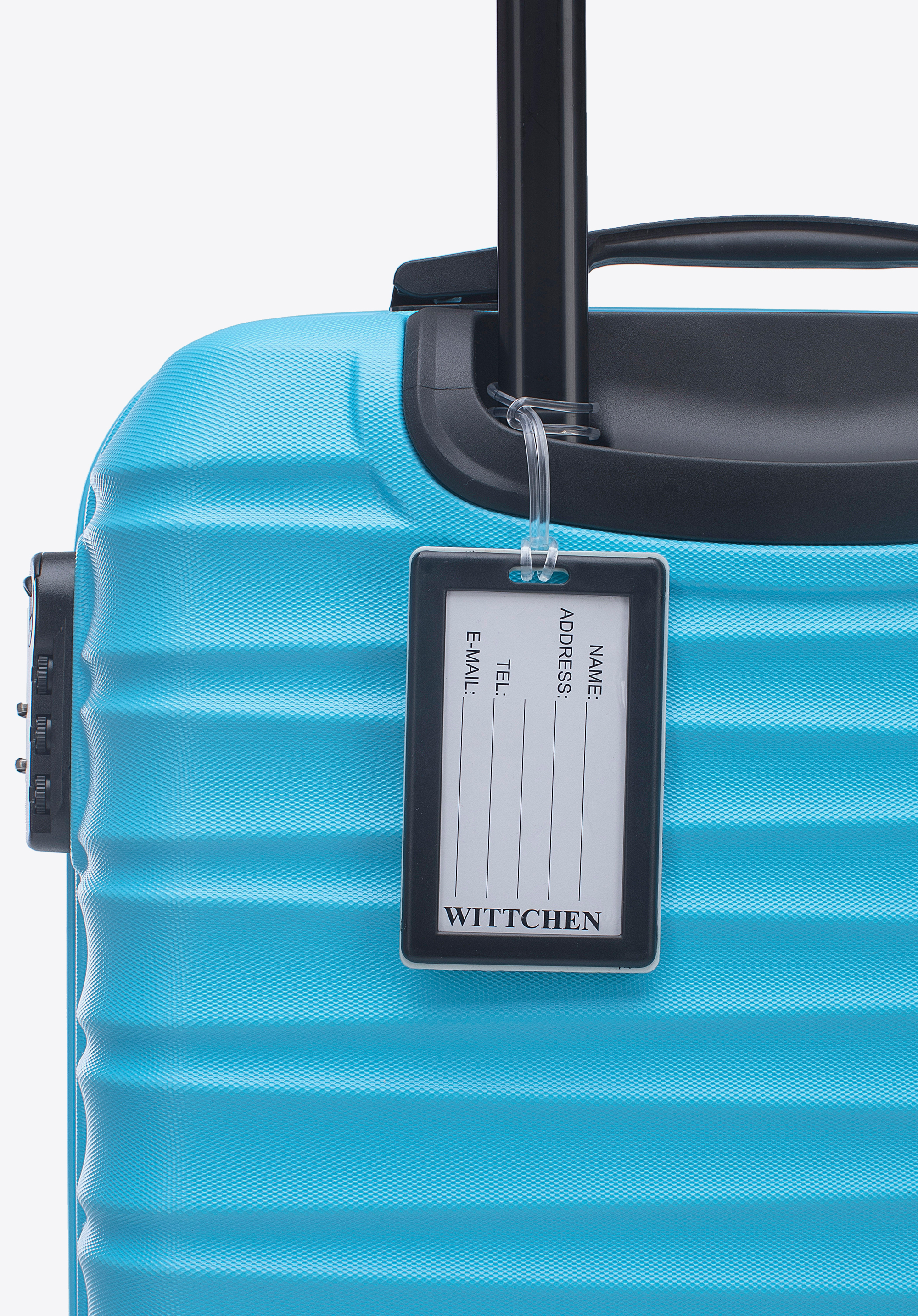 - Funcționalitate etichetă: Un buzunar intern pentru informațiile de contact facilitează identificarea bagajului, în timp ce cureaua asigură fixarea sigură a etichetei pe valiză.