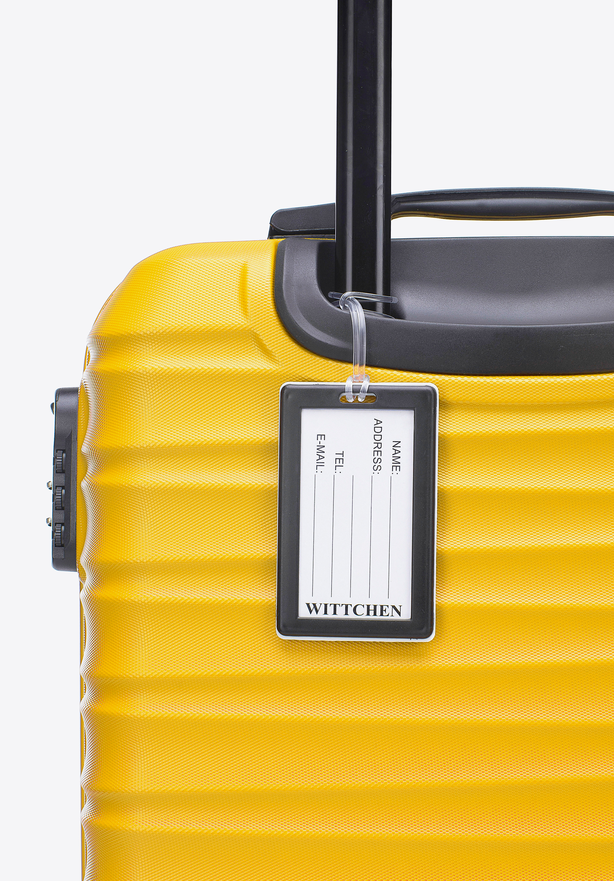 - Funcționalitate etichetă: Un buzunar intern pentru informațiile de contact facilitează identificarea bagajului, în timp ce cureaua asigură fixarea sigură a etichetei pe valiză.