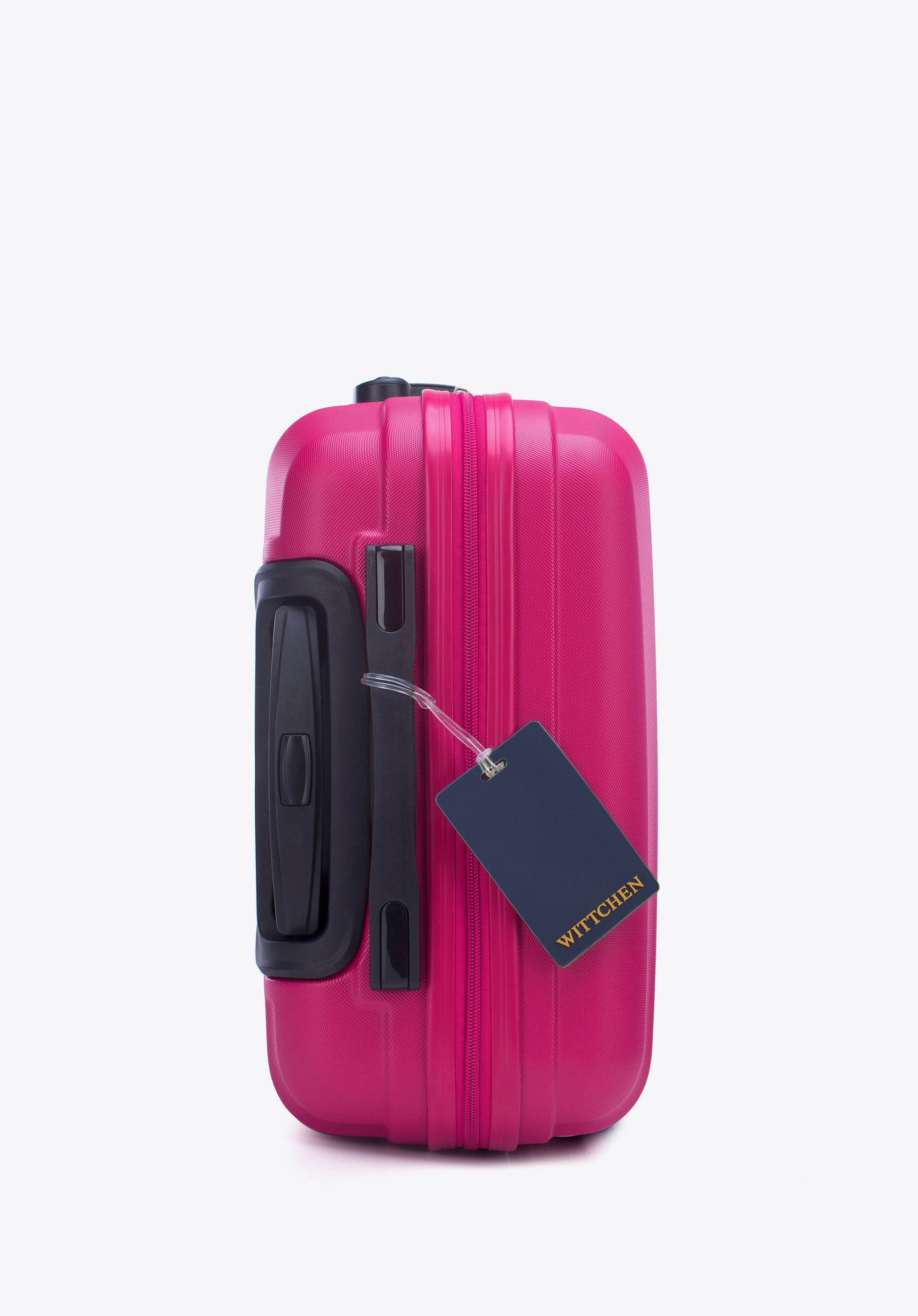 - Material: Valiza este fabricată din ABS, iar eticheta din PVC, asigurând durabilitate îndelungată și rezistență la deteriorare, protejând eficient bagajul.