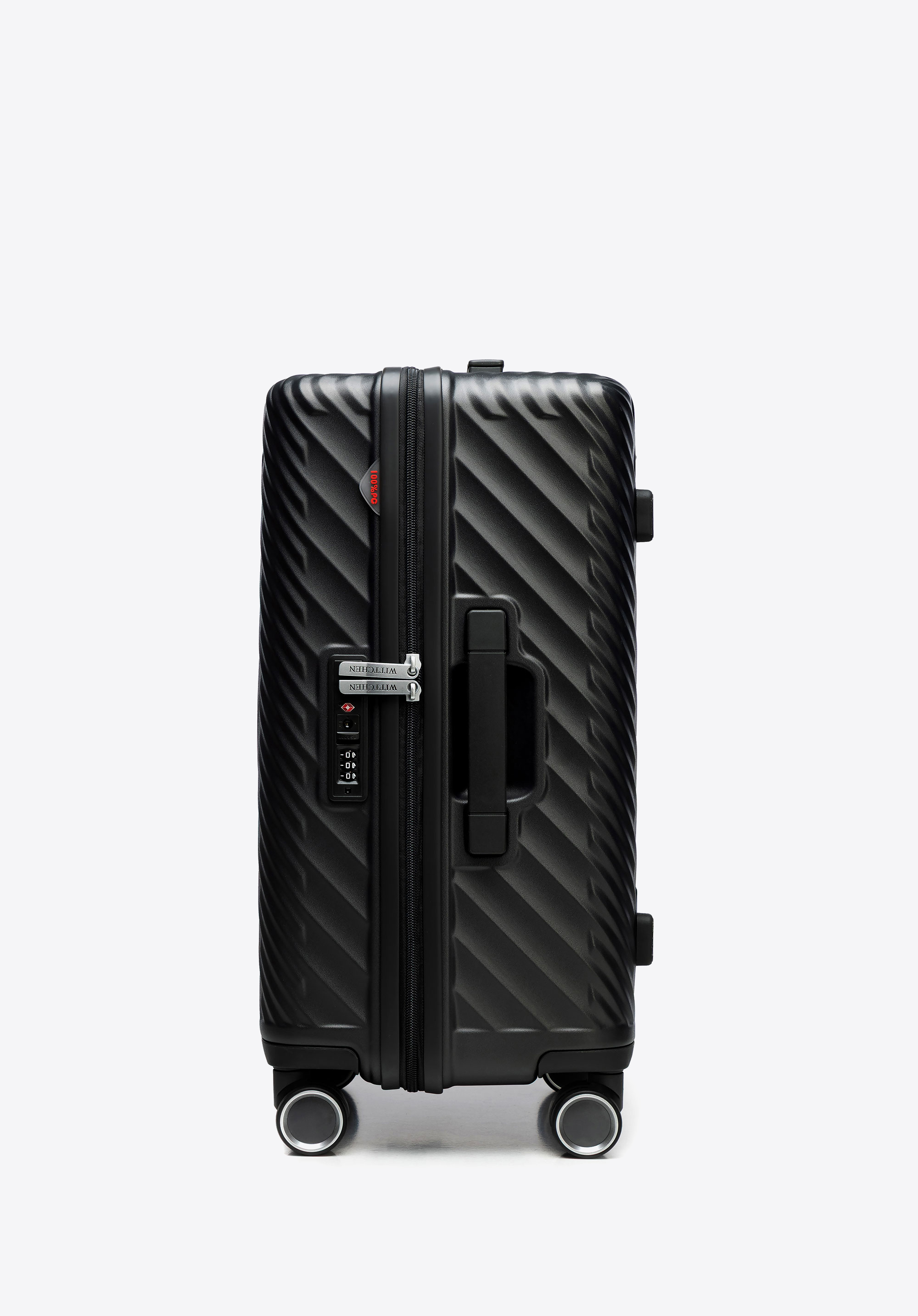 - Ridicare ușoară: Trei mânere practice – în partea superioară, laterală și frontală – facilitează ridicarea valizei în orice situație.
