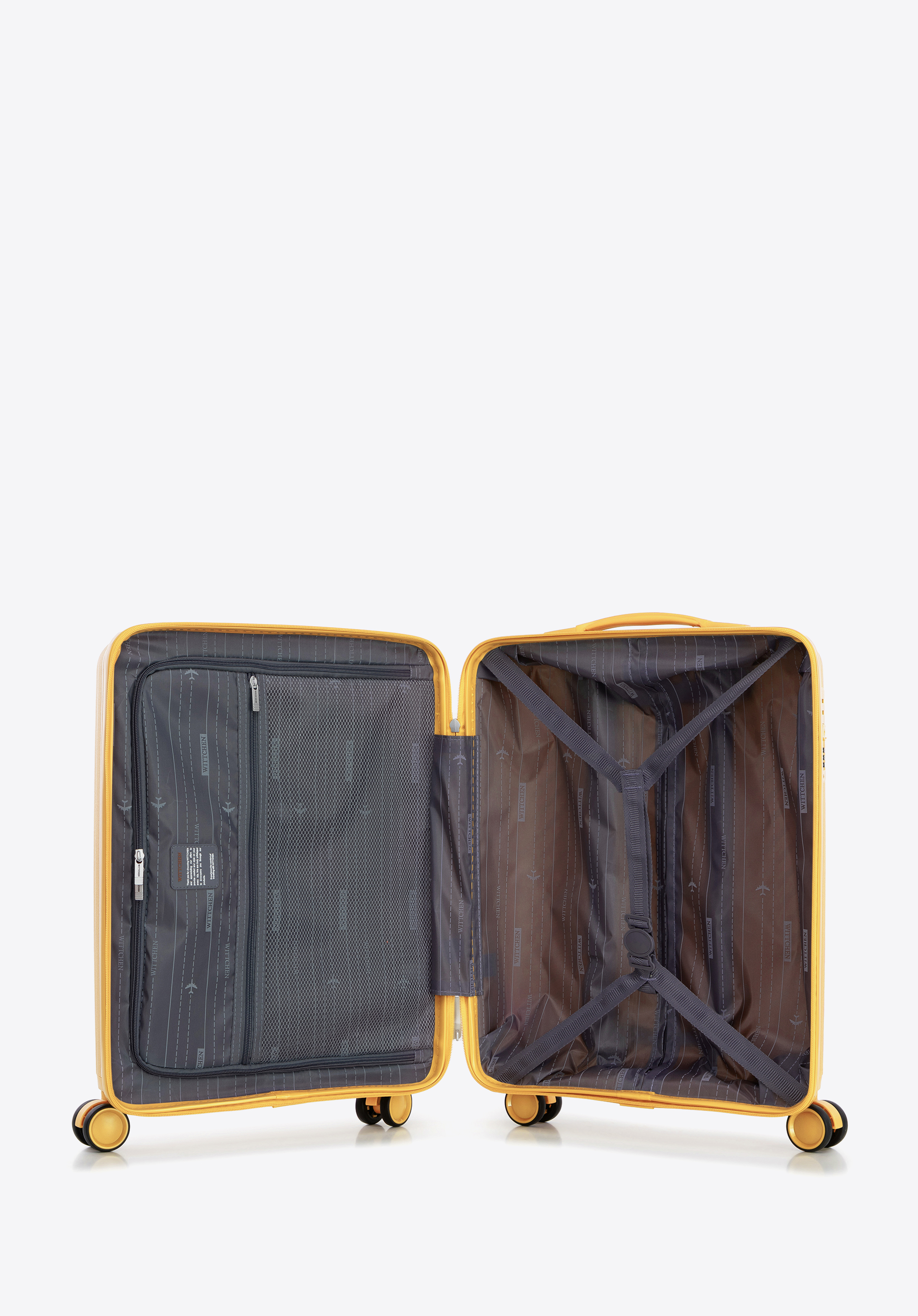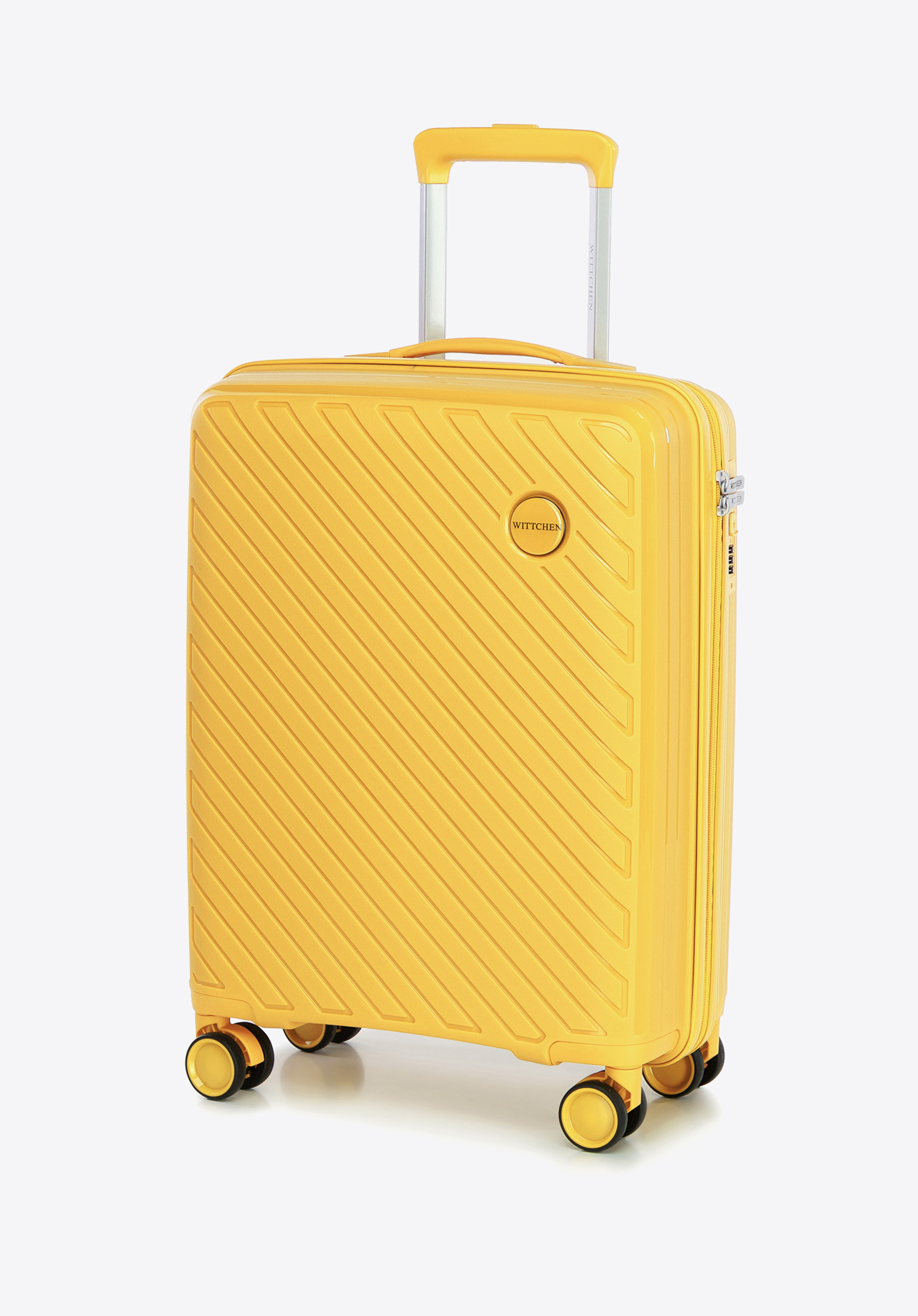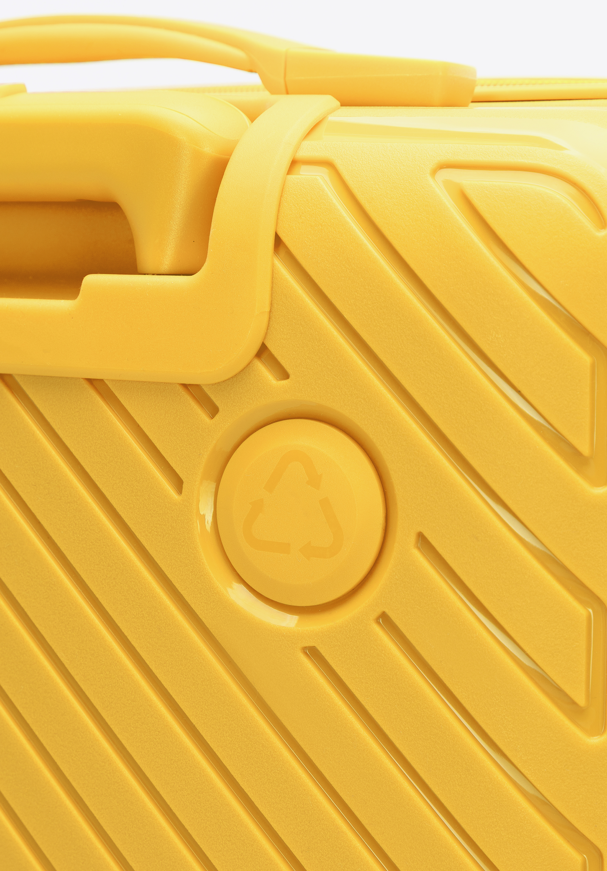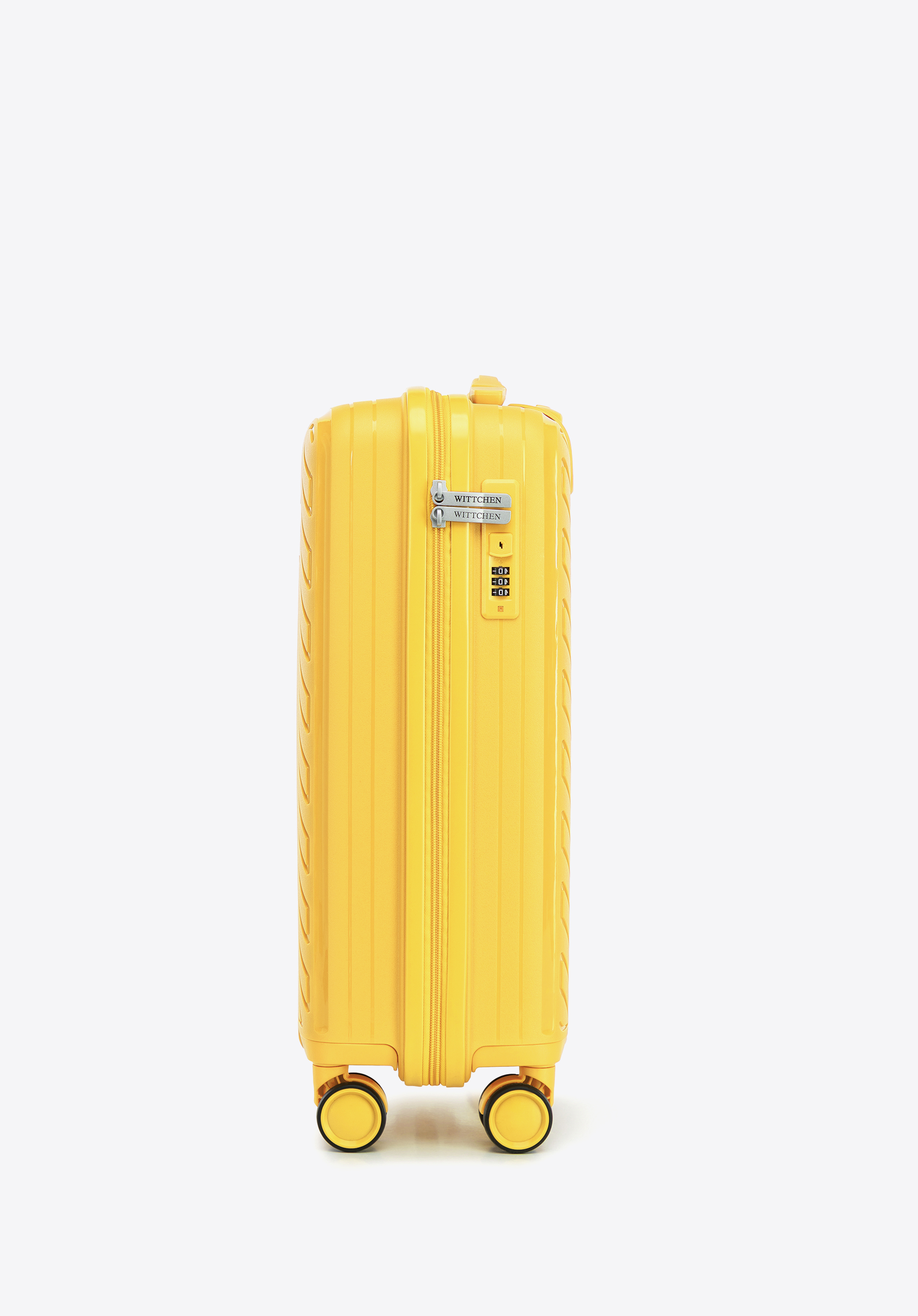 Valiză mică din polipropilenă cu dungi în relief galben