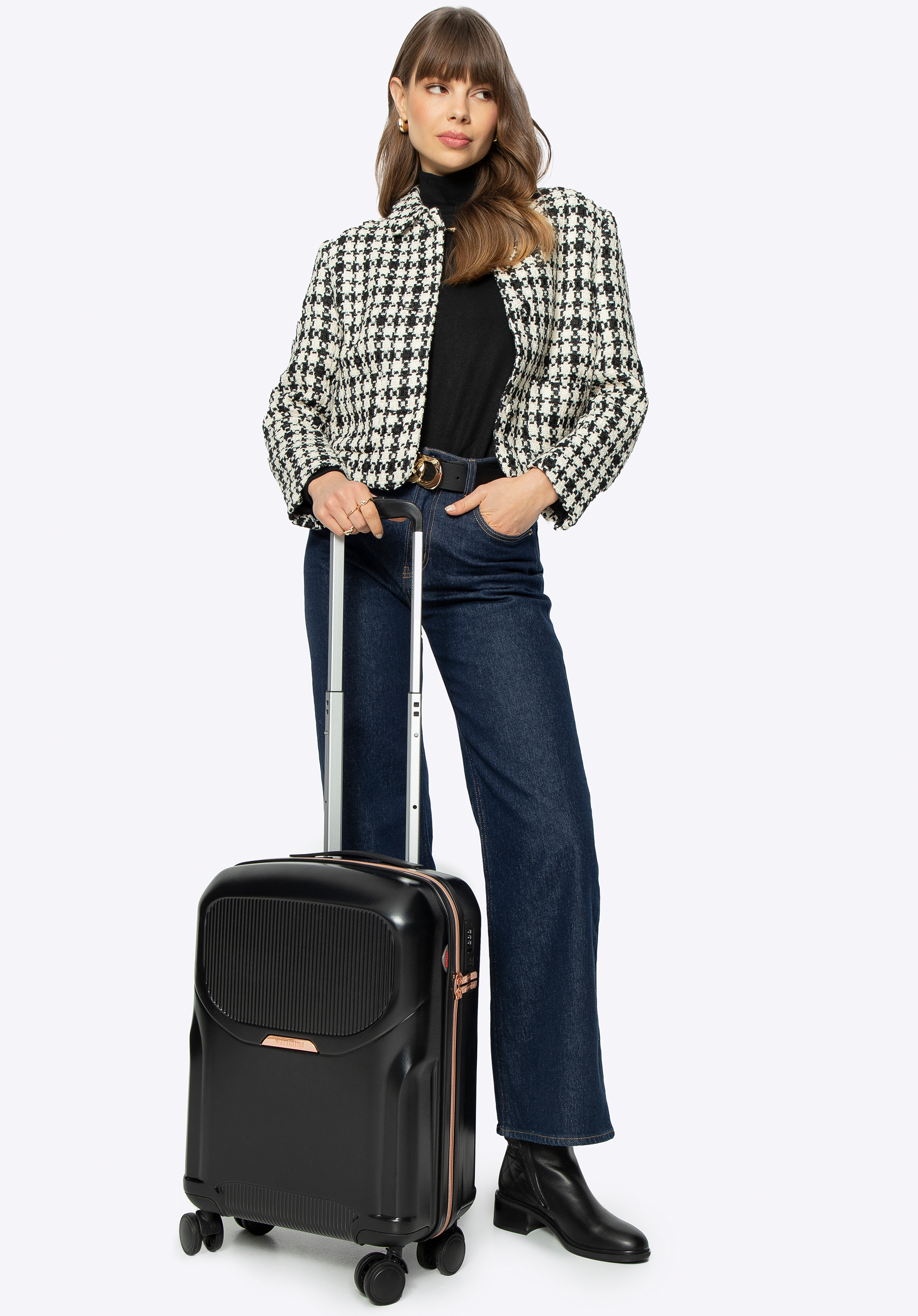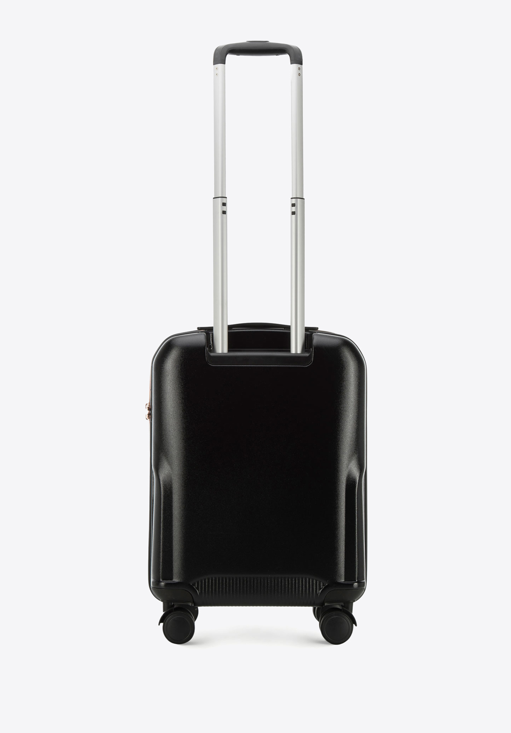 Această valiză de cabină din policarbonat cu un fermoar auriu va funcționa perfect ca bagaj de mână, adăugând în același timp o notă de stil.