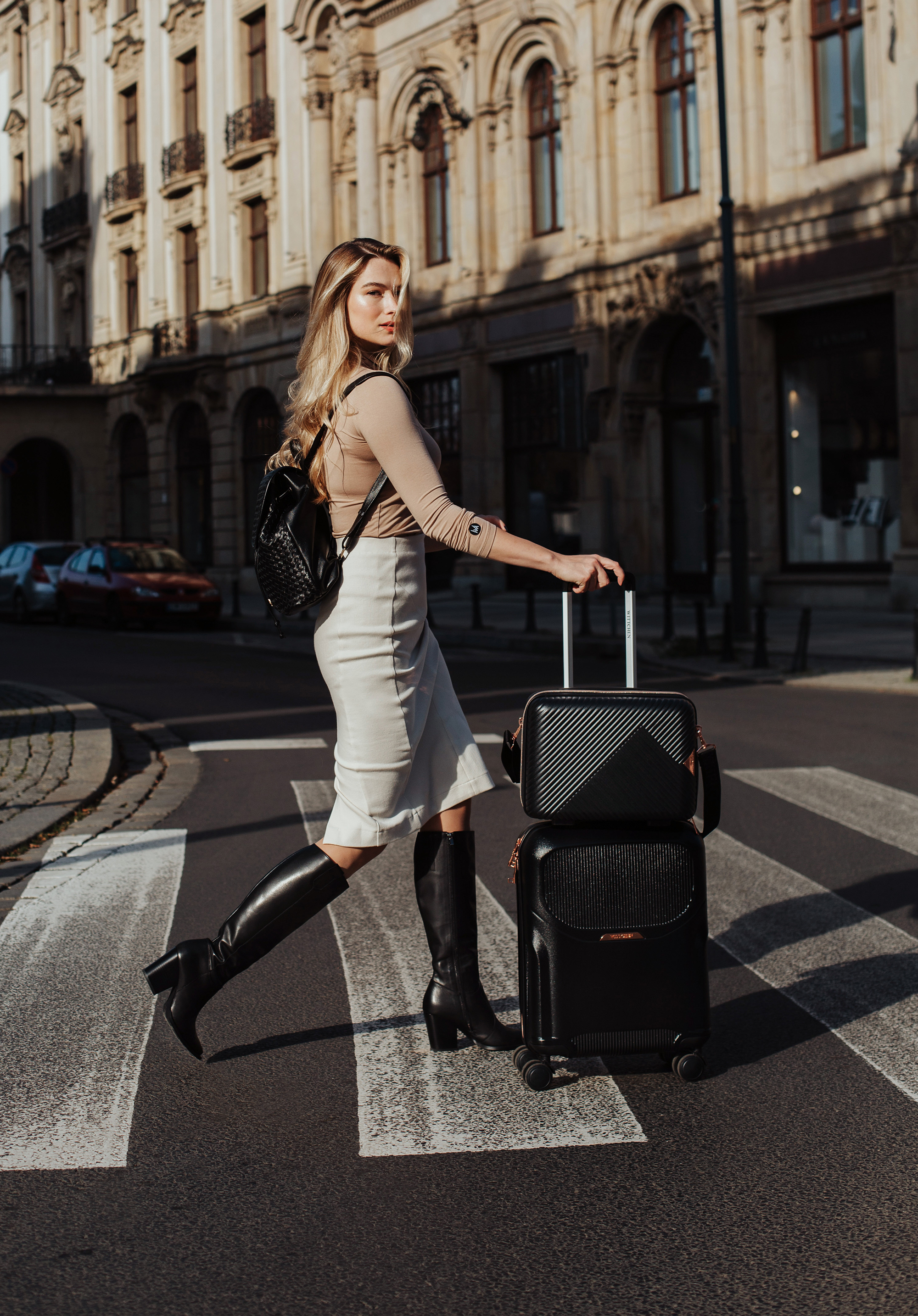 Sfatul nostru: pentru o călătorie mai lungă, alegeți valize mai mari din set și păstrați aspectul unic.