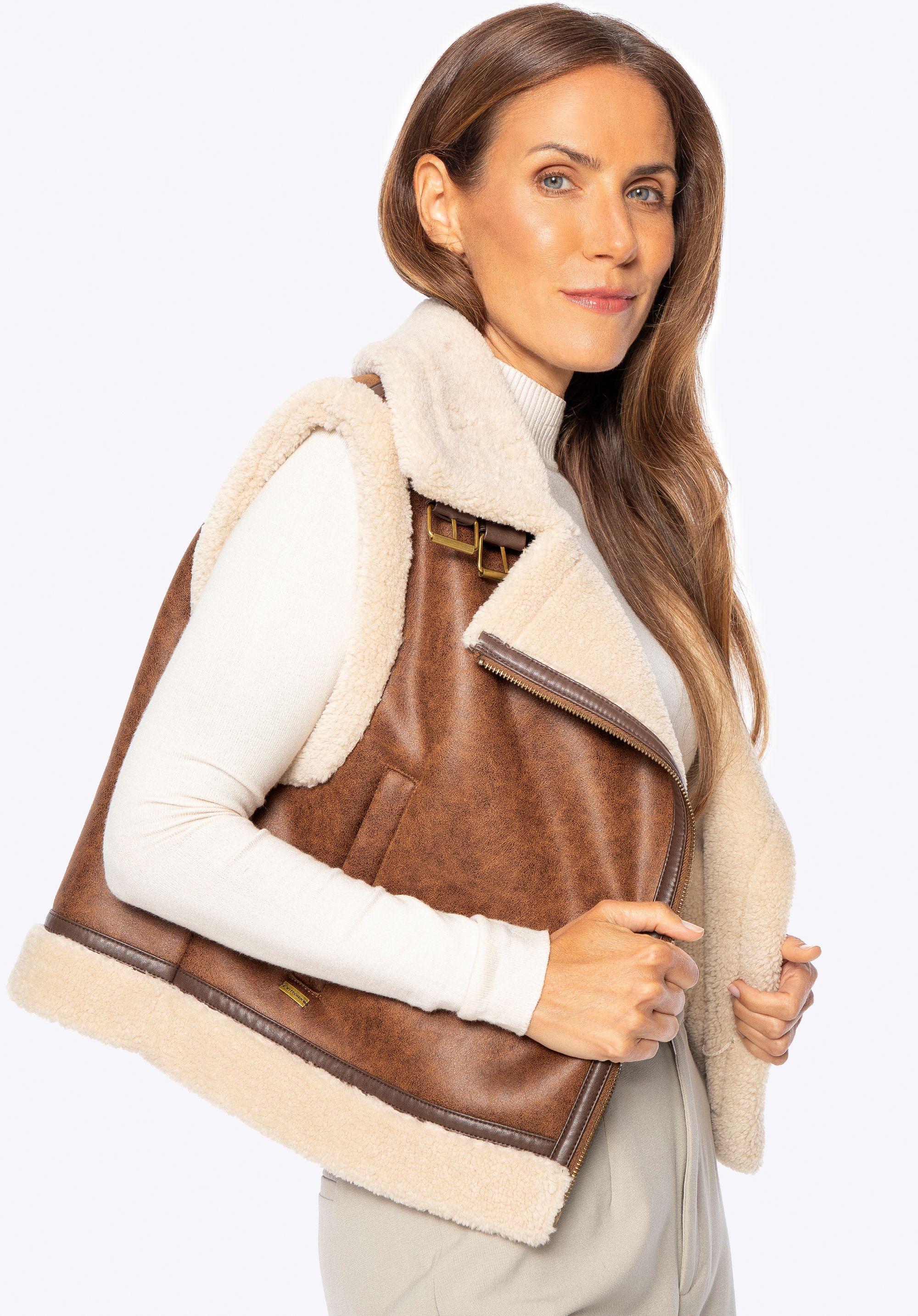 Stil și căldură cu o notă modernă: vestă din imitație de shearling cu caracter